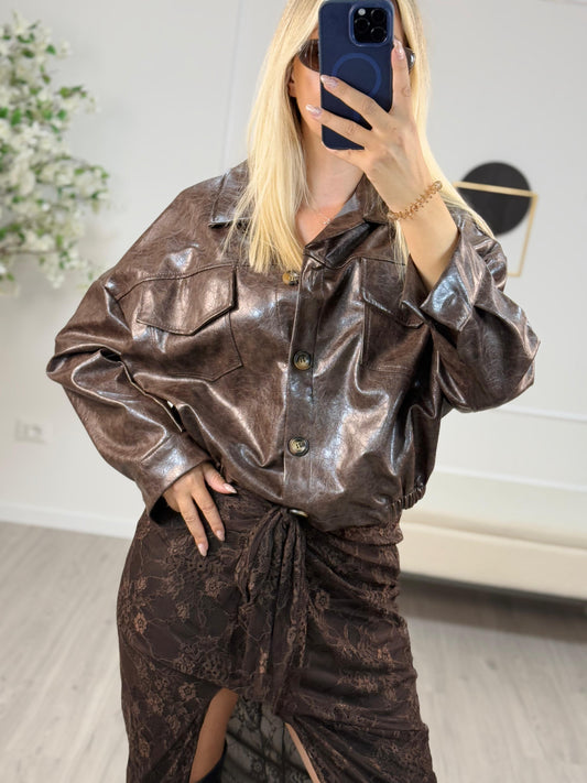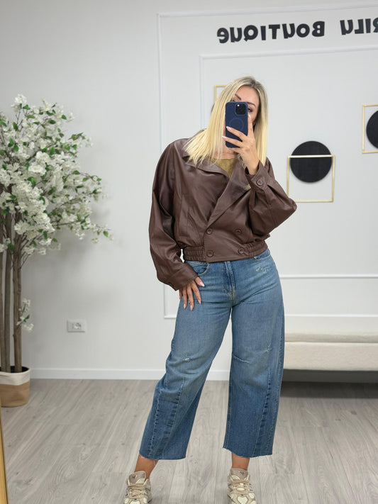 Bomber Corto Effetto Pelle Vintage