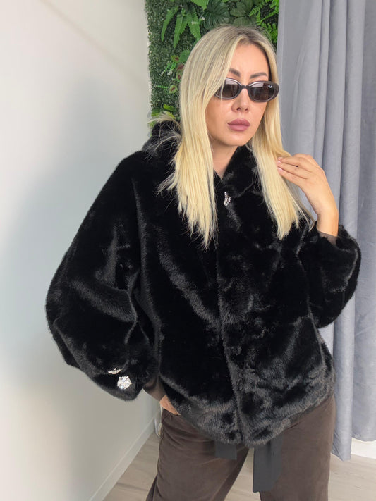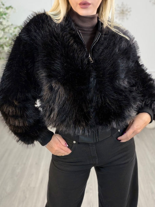 Giacca in Ecopelle con Inserto Ecopelliccia -Tensione In