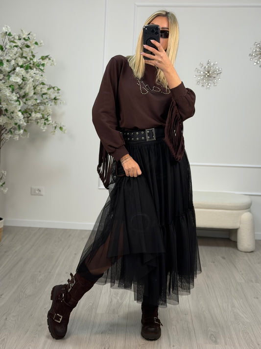 In offertaGonna doppia in satin e pizzo nera - HaveOne