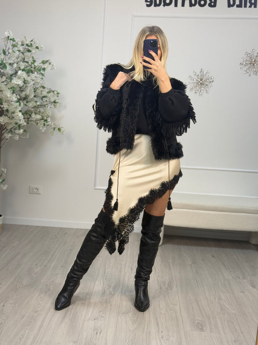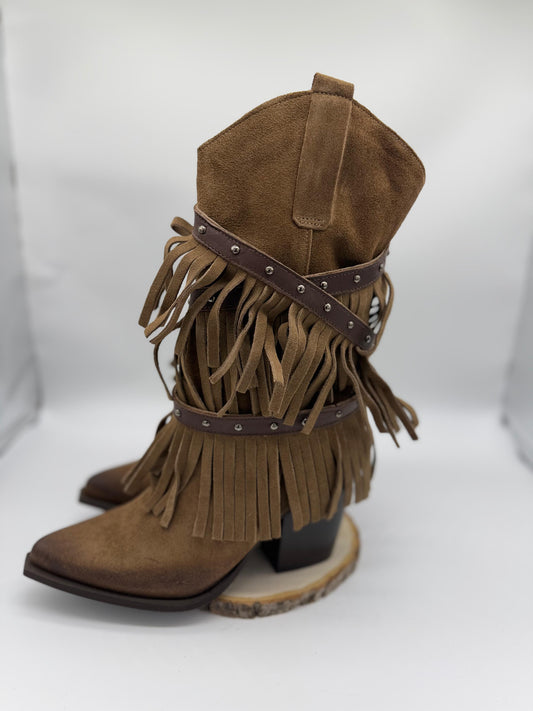 DIVINE FOLLIE - Stivale Frange Texano Camoscio Taupe