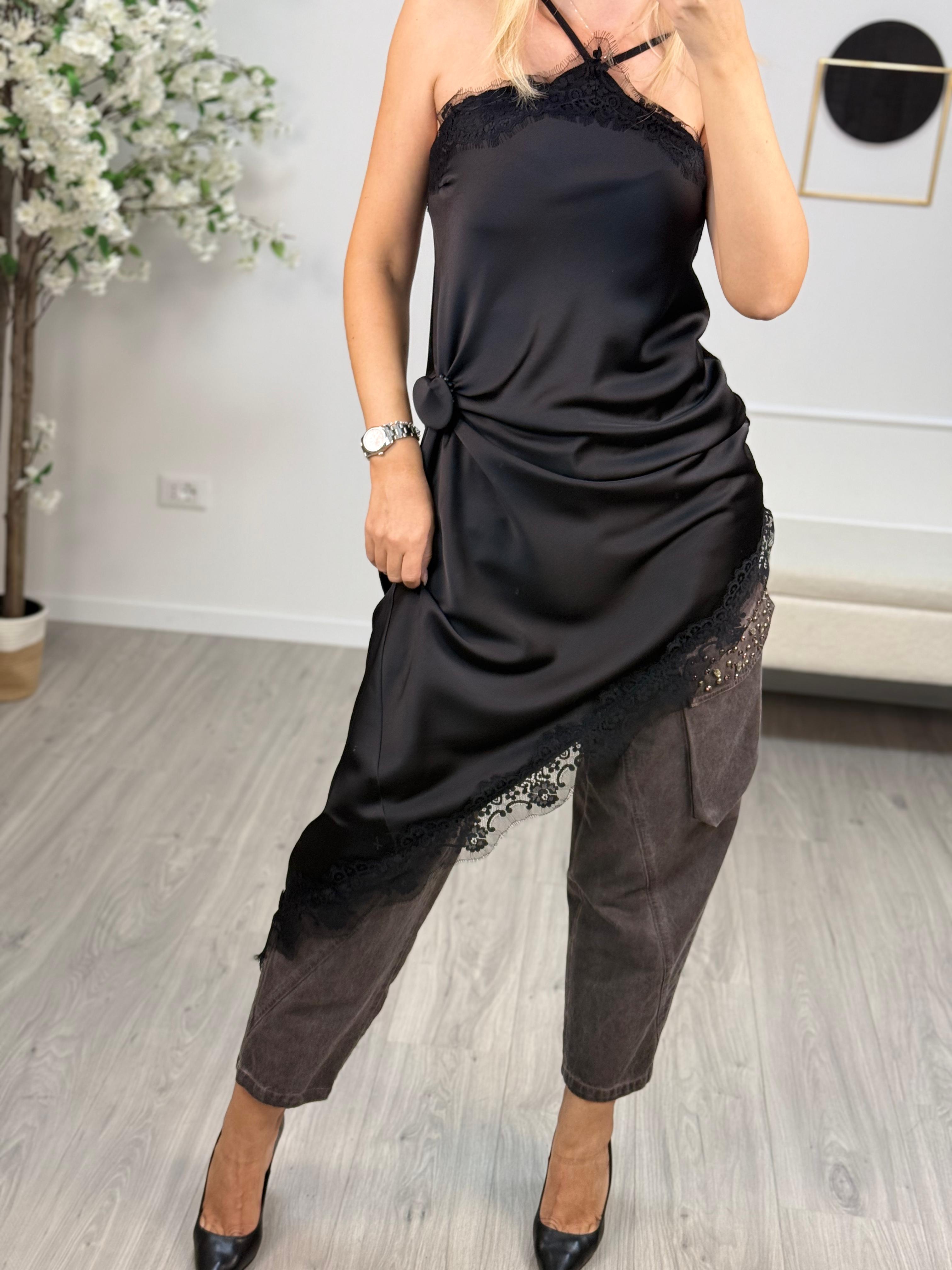 - Abito in pizzo nero minimalista ed elegante.