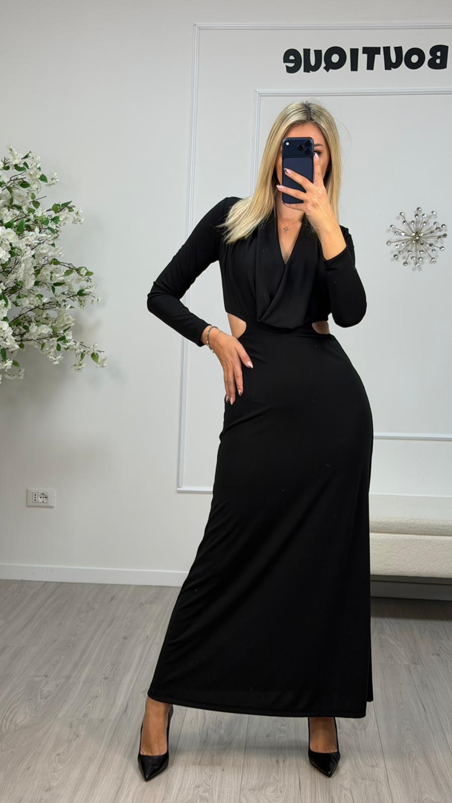 Descrizione: Abito Lungo Cut-Out Fianchi Vicolo