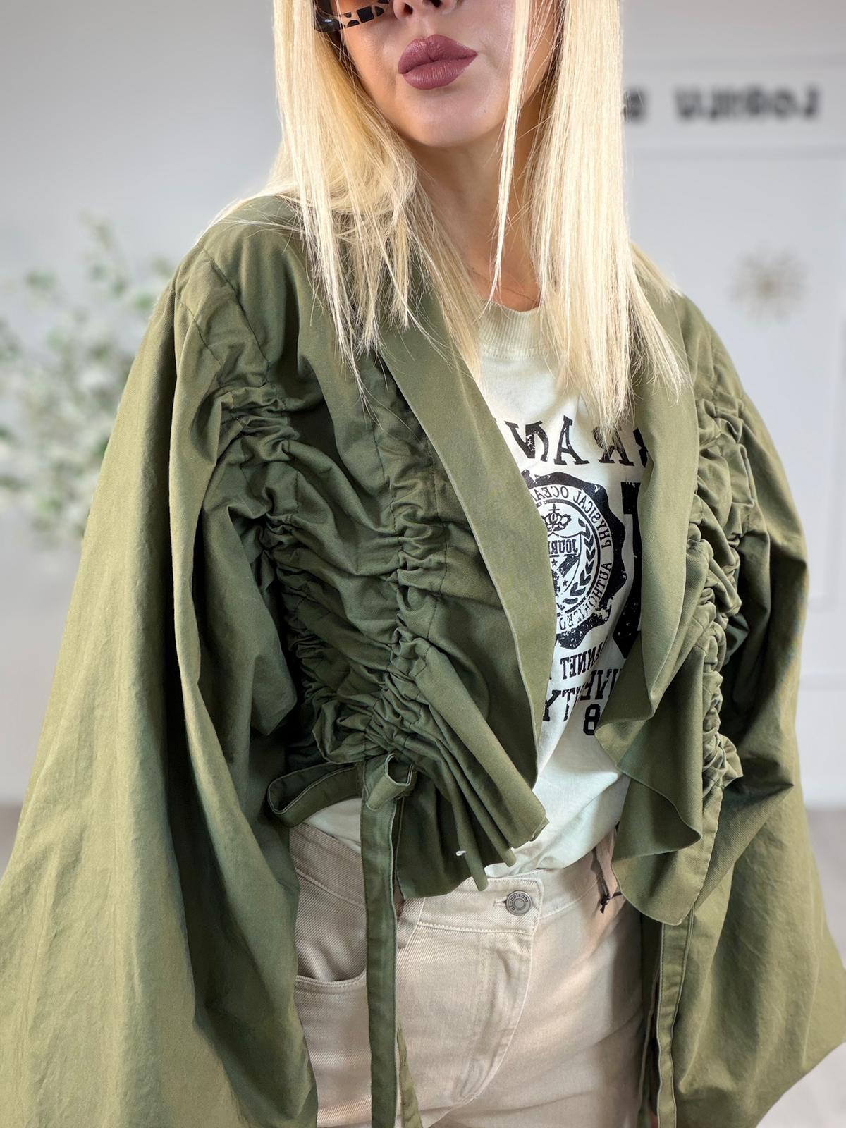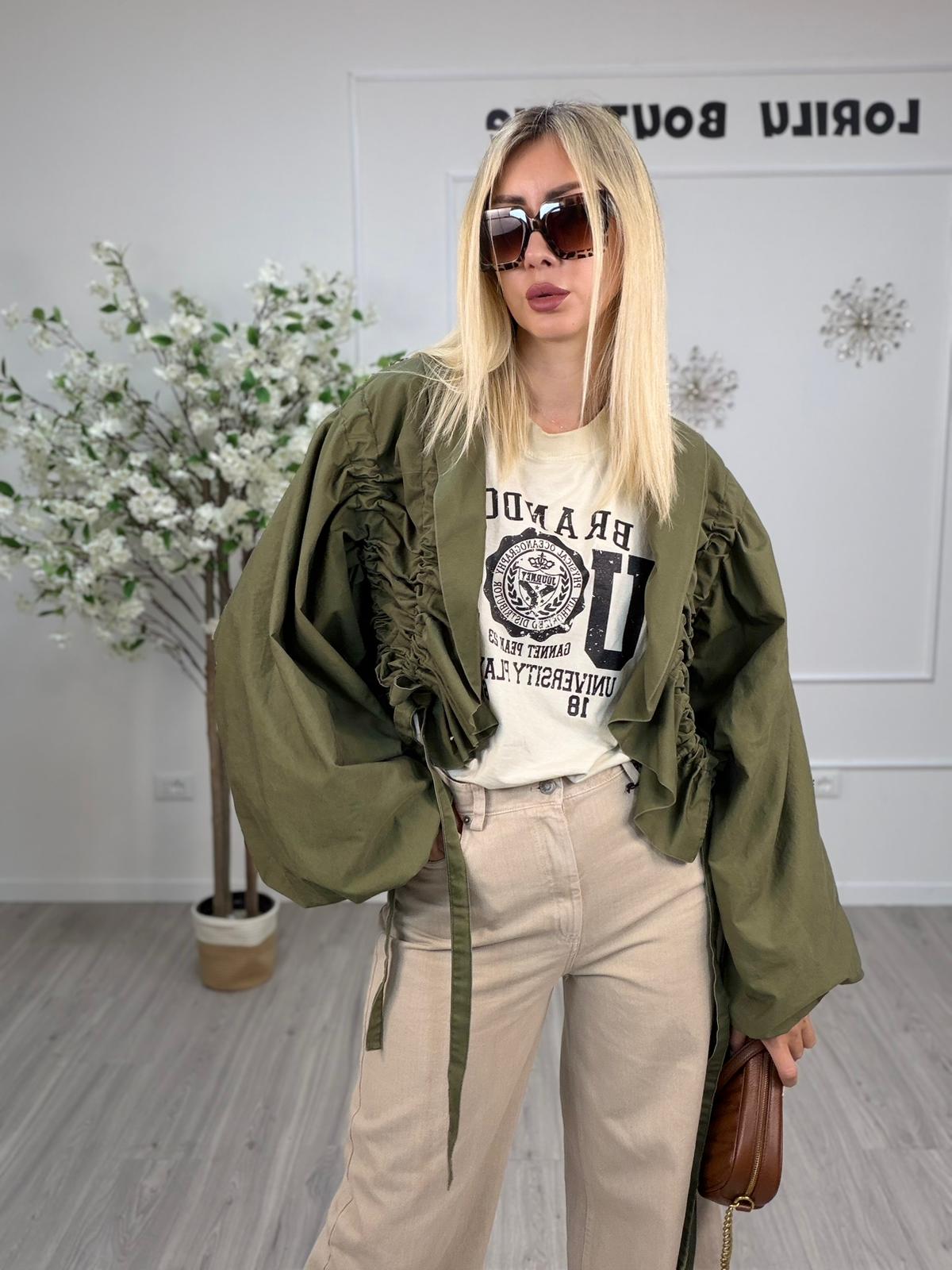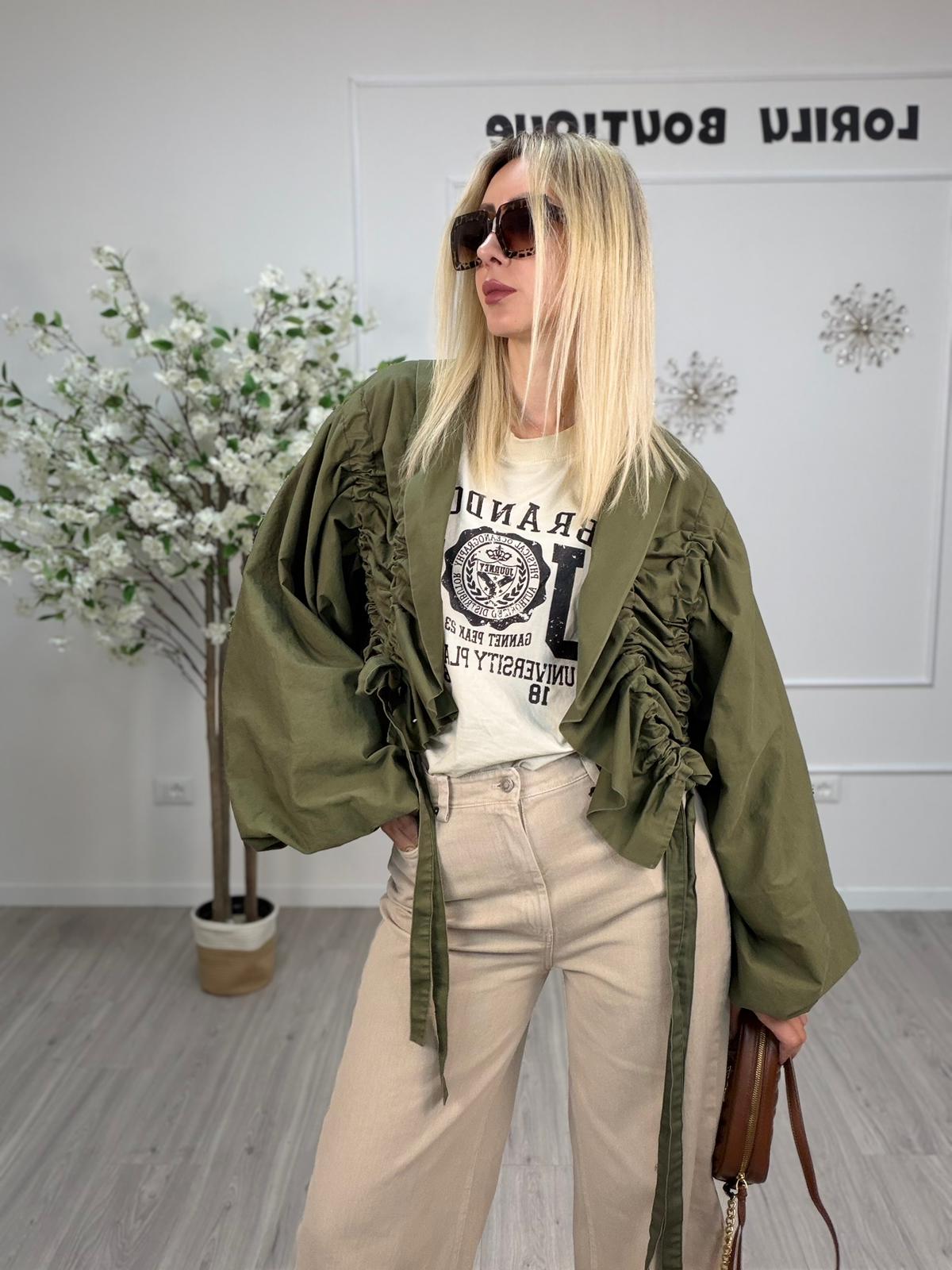 • Dettagli: Arricciature frontali con lacci regolabili.