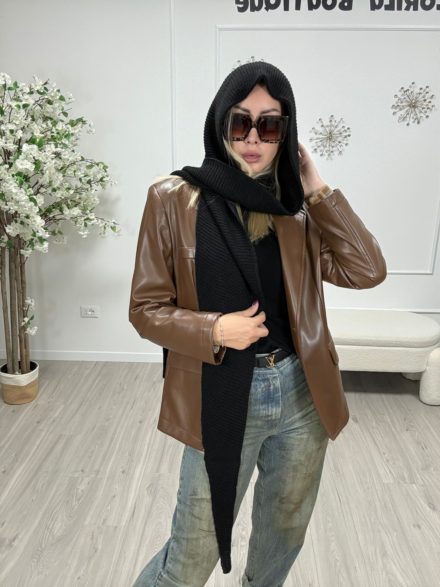 Descrizione: Cappuccio Philia Loft stile sciarpa .Colore Nero\Beige\Grigio Scuro. Tg Unica Composizione: 75%pc 10%wo 10%vi 5%wp