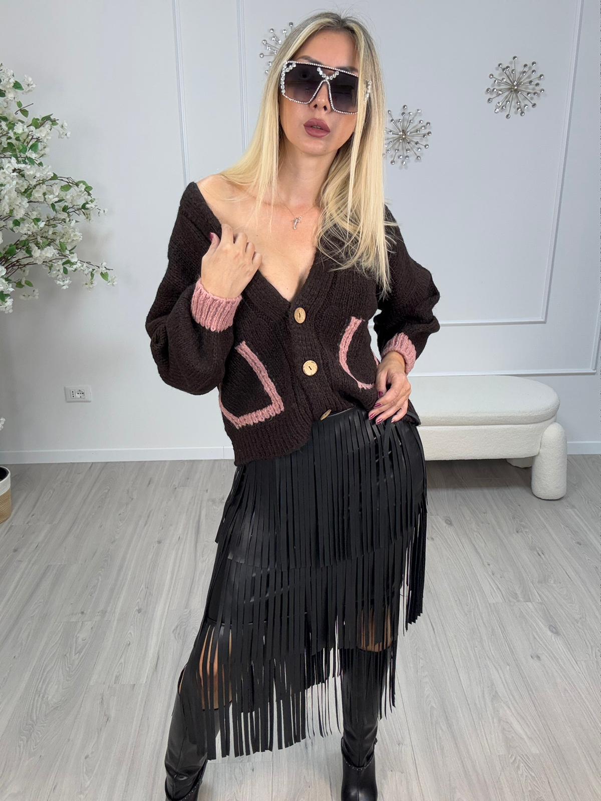 - Descrizione: Cardigan Bicolore Haveone con chiusura a bottone.