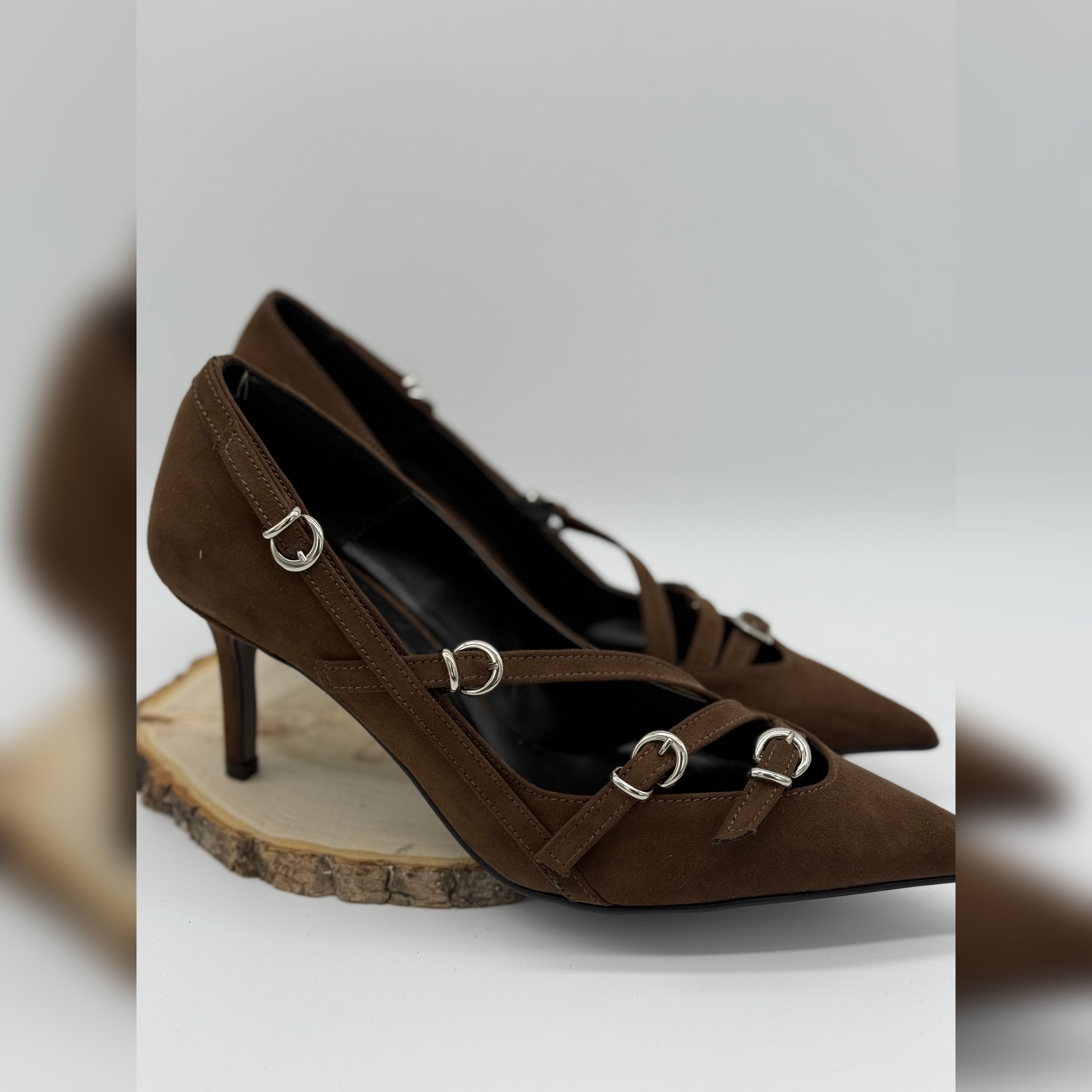 Décolleté Scamosciata Caffe Con Fibbie