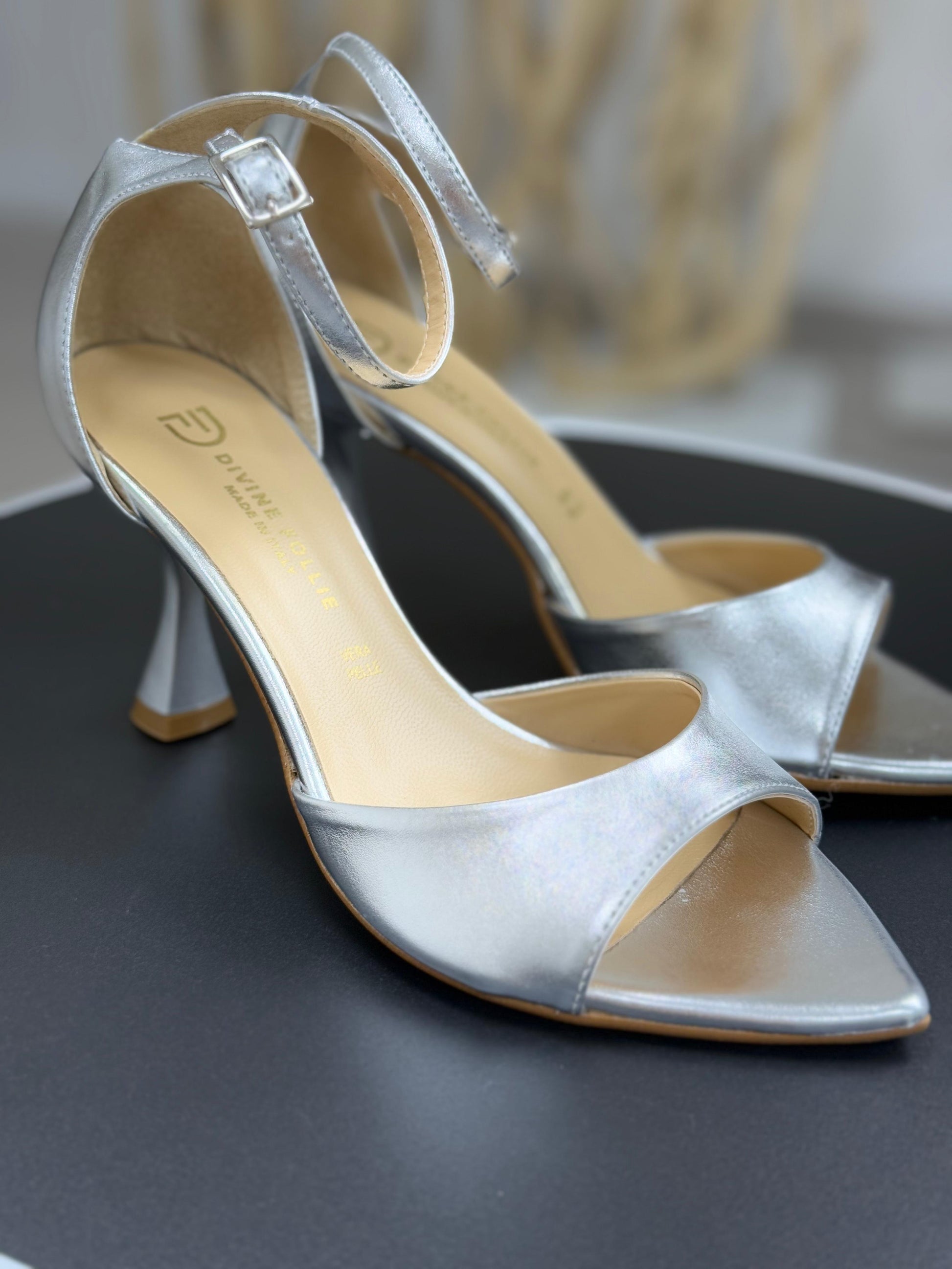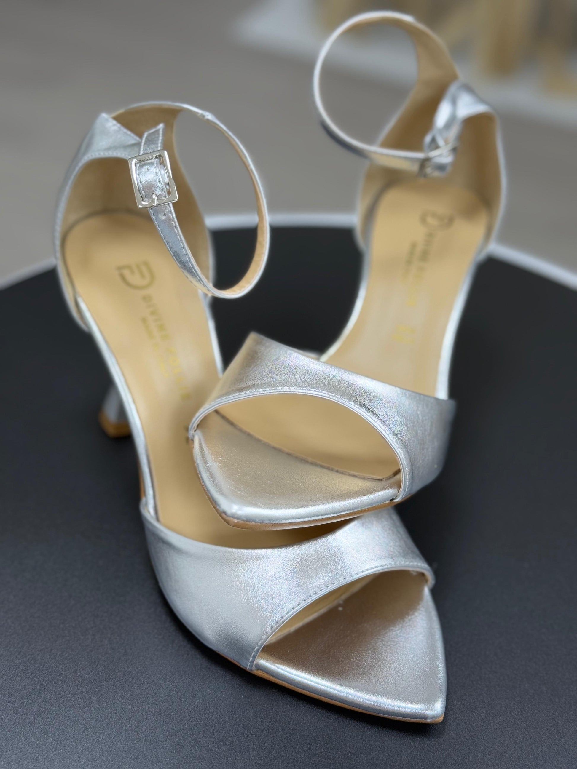 Descrizione: Divine Follie Sandali Argento Con Punta Sfilata e Tacco 8,5cm.