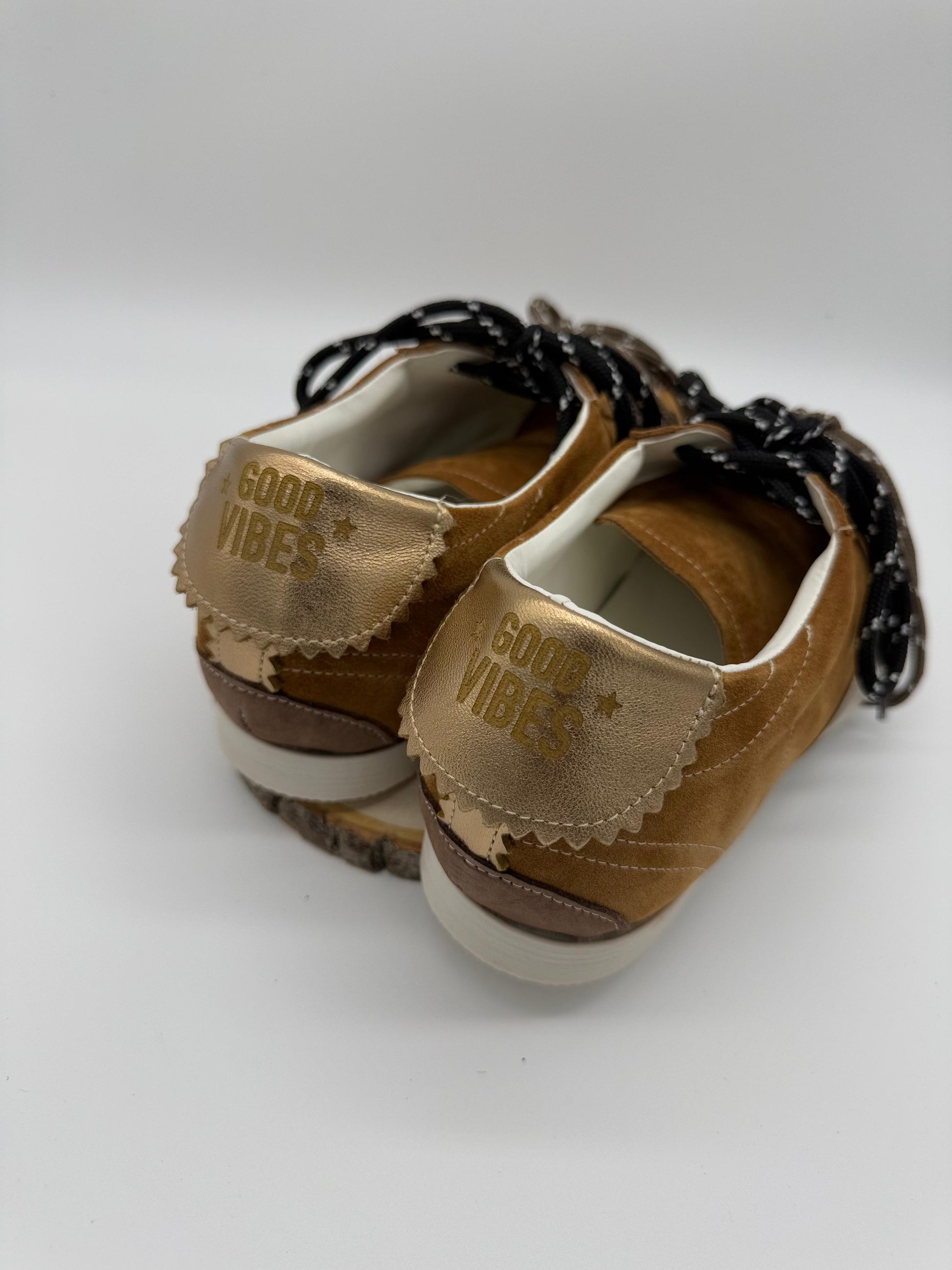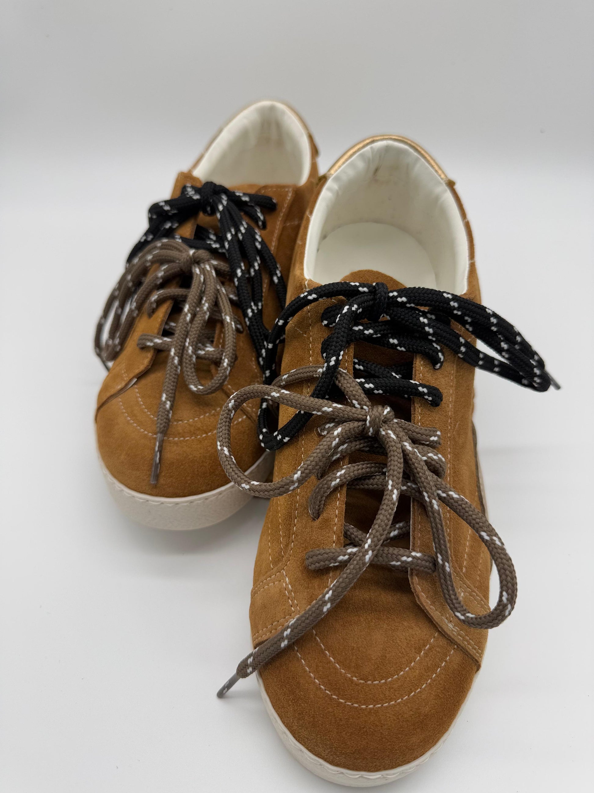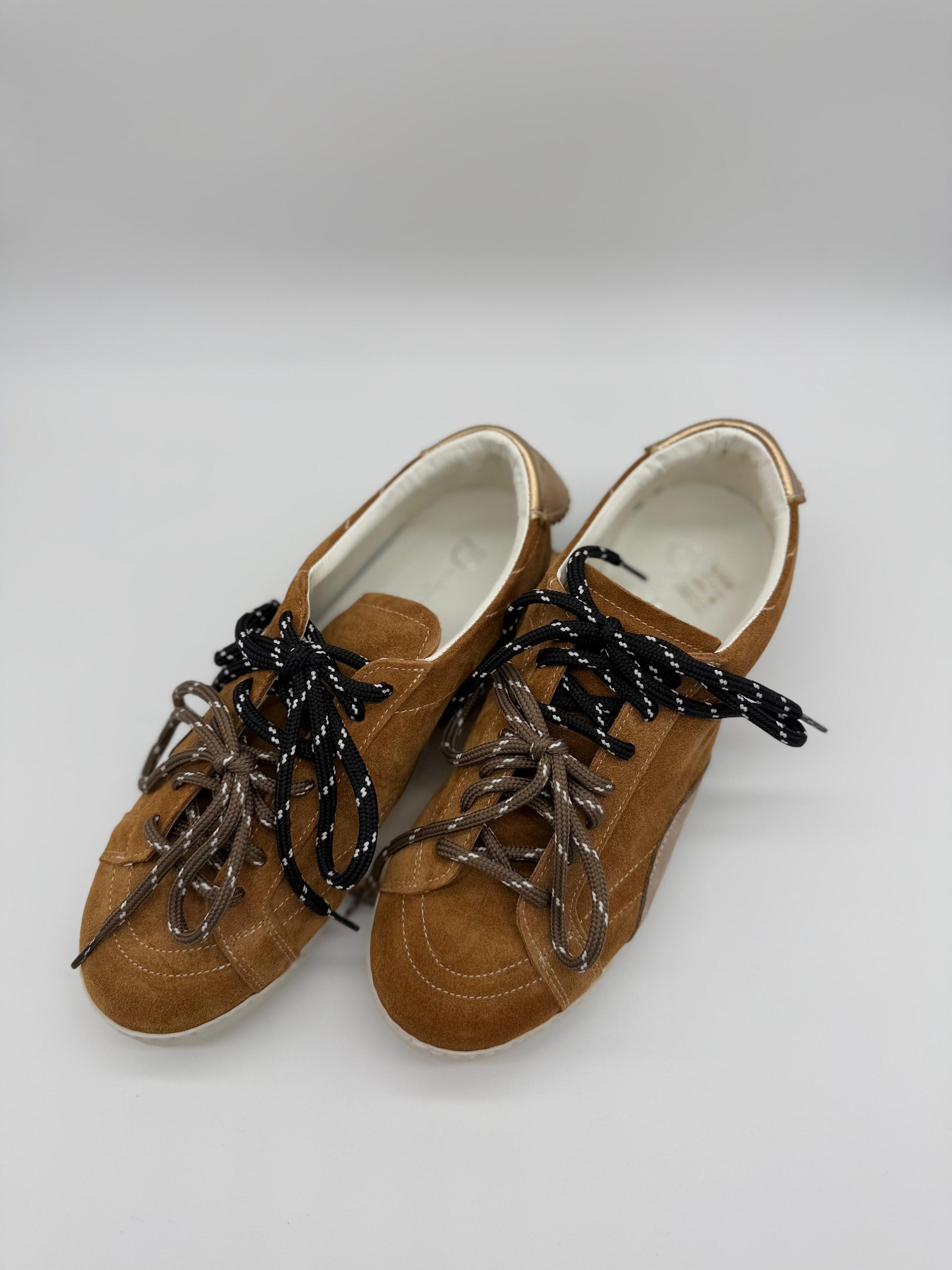 • Le sneaker DIVINE FOLLIE in camoscio Cuoio combinano stile e comfort, perfette per chi ama un look casual chic. La tomaia in morbido camoscio conferisce un tocco raffinato, mentre la suola in gomma assicura leggerezza e praticità per un utilizzo quotidiano. Grazie al loro design versatile, si abbinano facilmente a diversi outfit, dall'abbigliamento casual ai look più sofisticati.