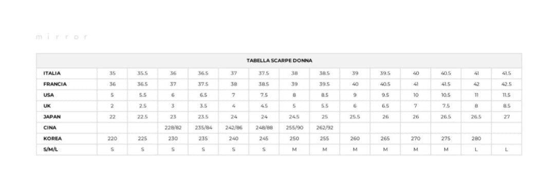 - Chiusura: con lacci per una perfetta aderenza al piede