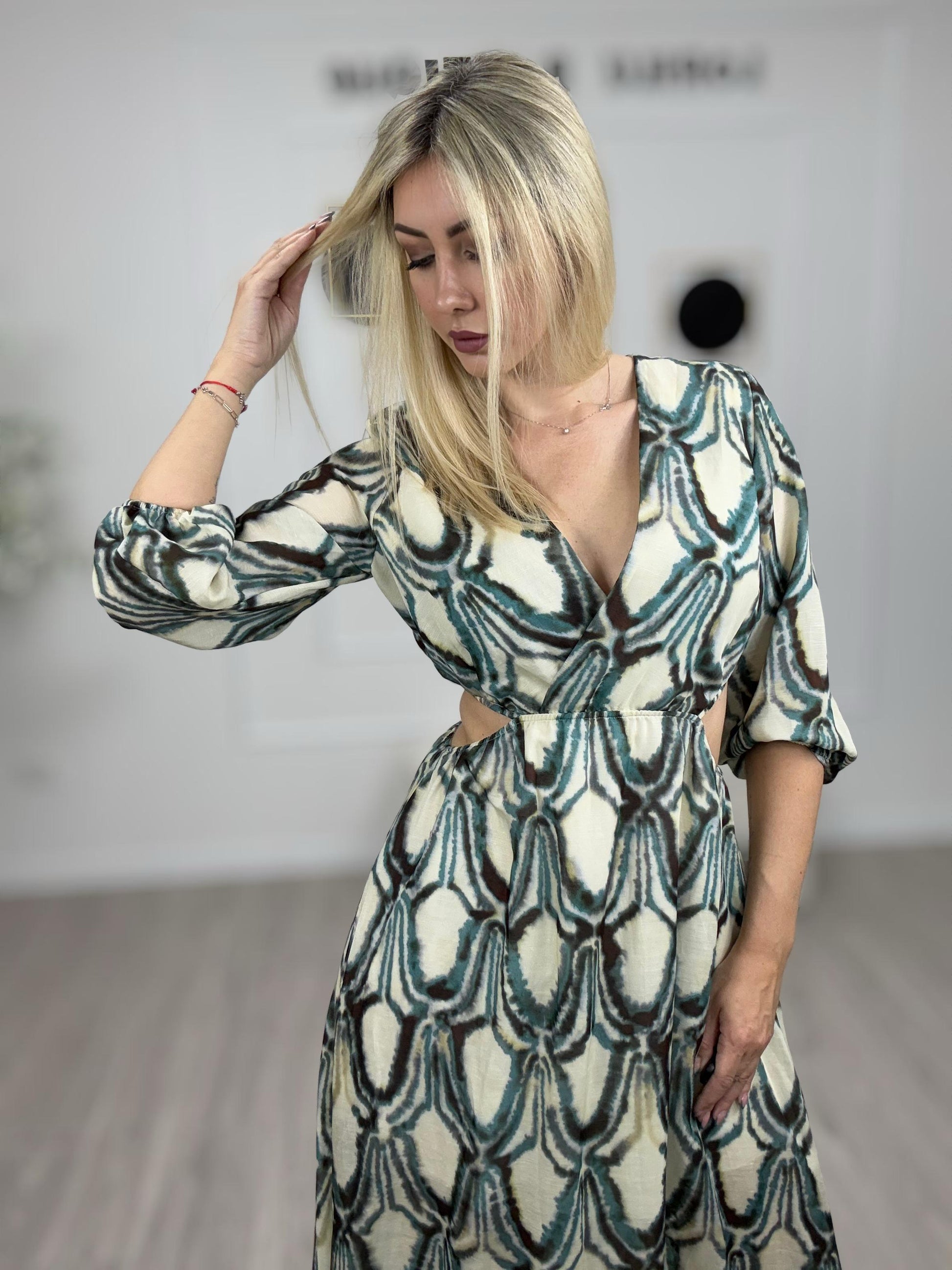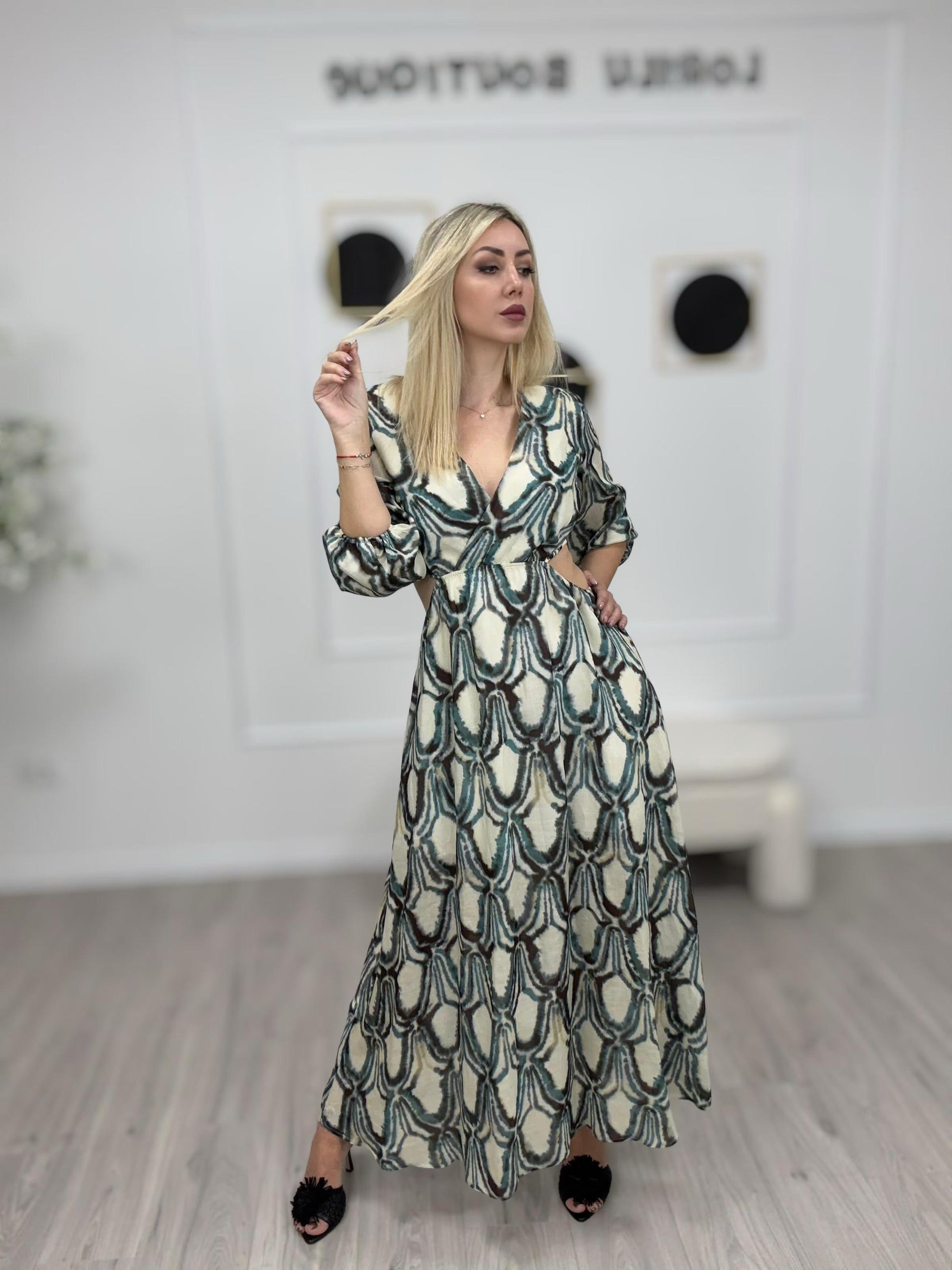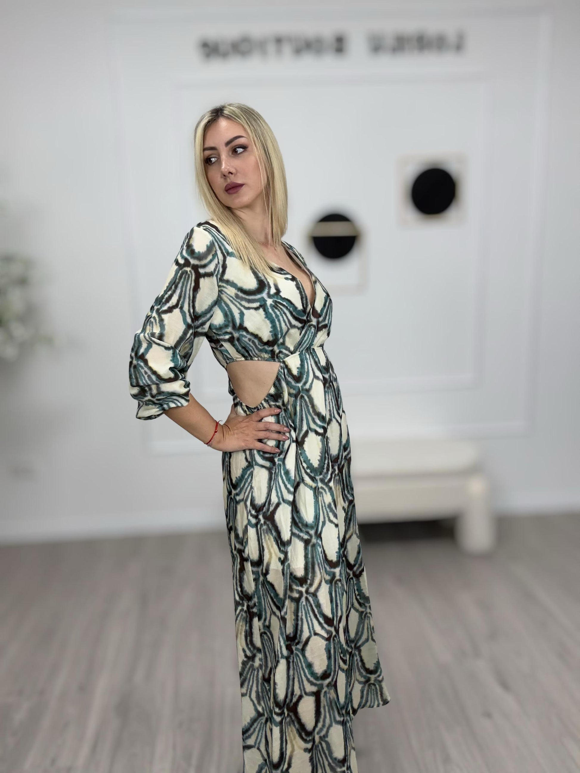 Descrizione: Dixie Abito di colore Aquamarina con spacco sulla vita. Composizione: 65%viscosa,35%li