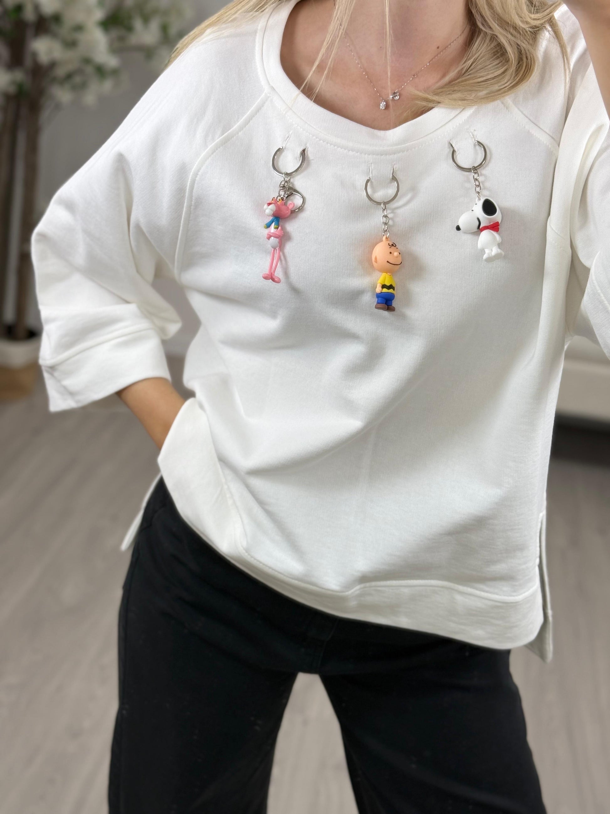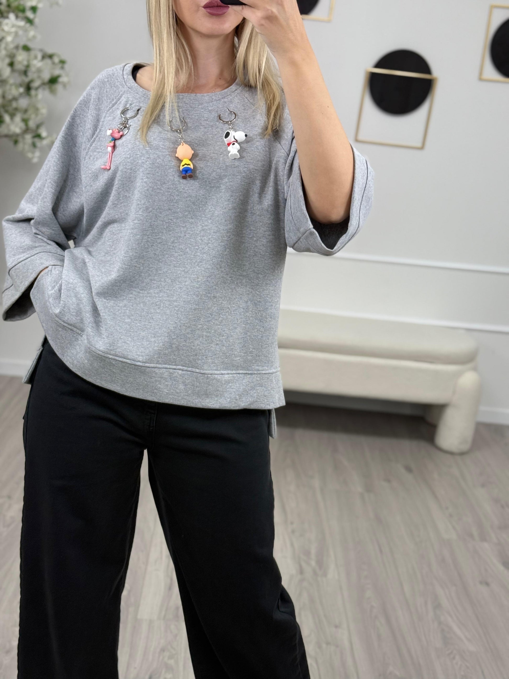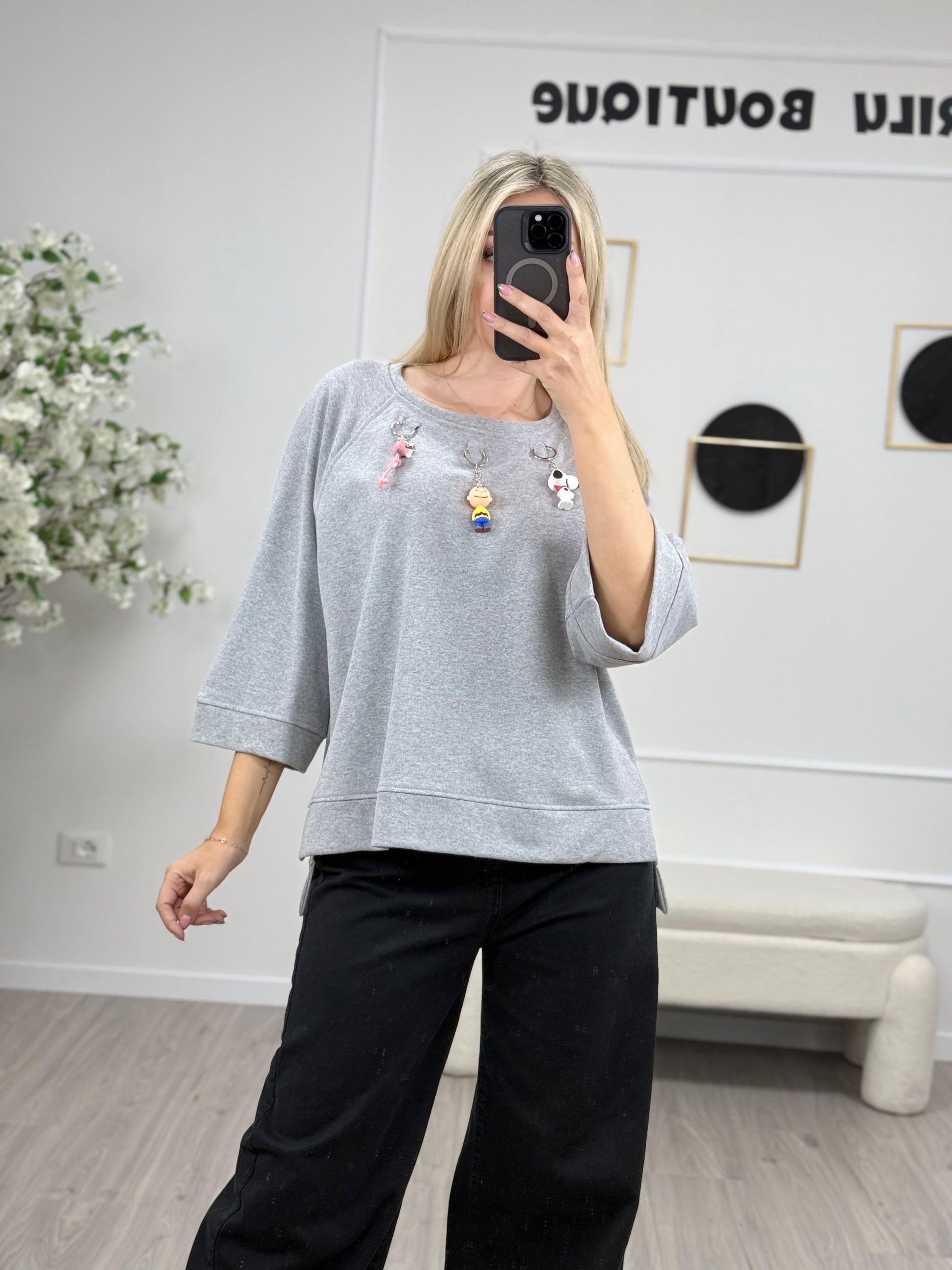 - Descrizione: Dixie Felpa con Charme rimovibili. Disponibile un colore bianco e grigio.