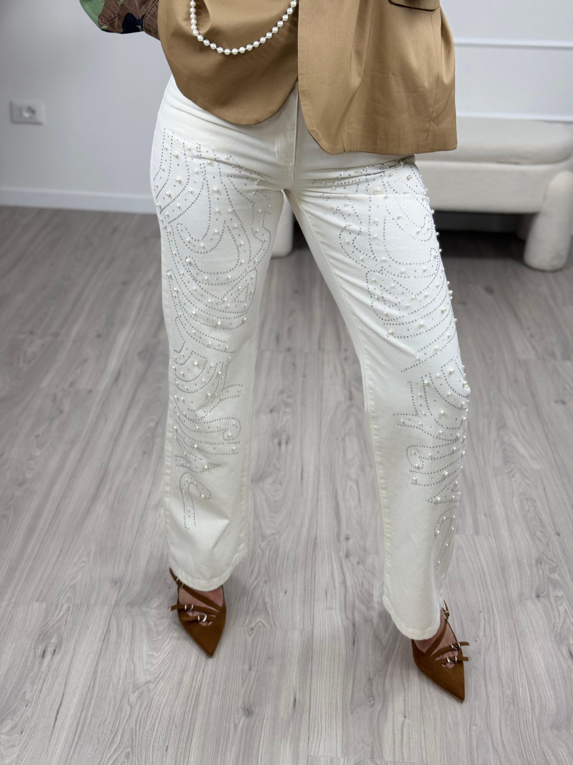 - Descrizione: Dixie Jeans Bianco con Strass e perle.