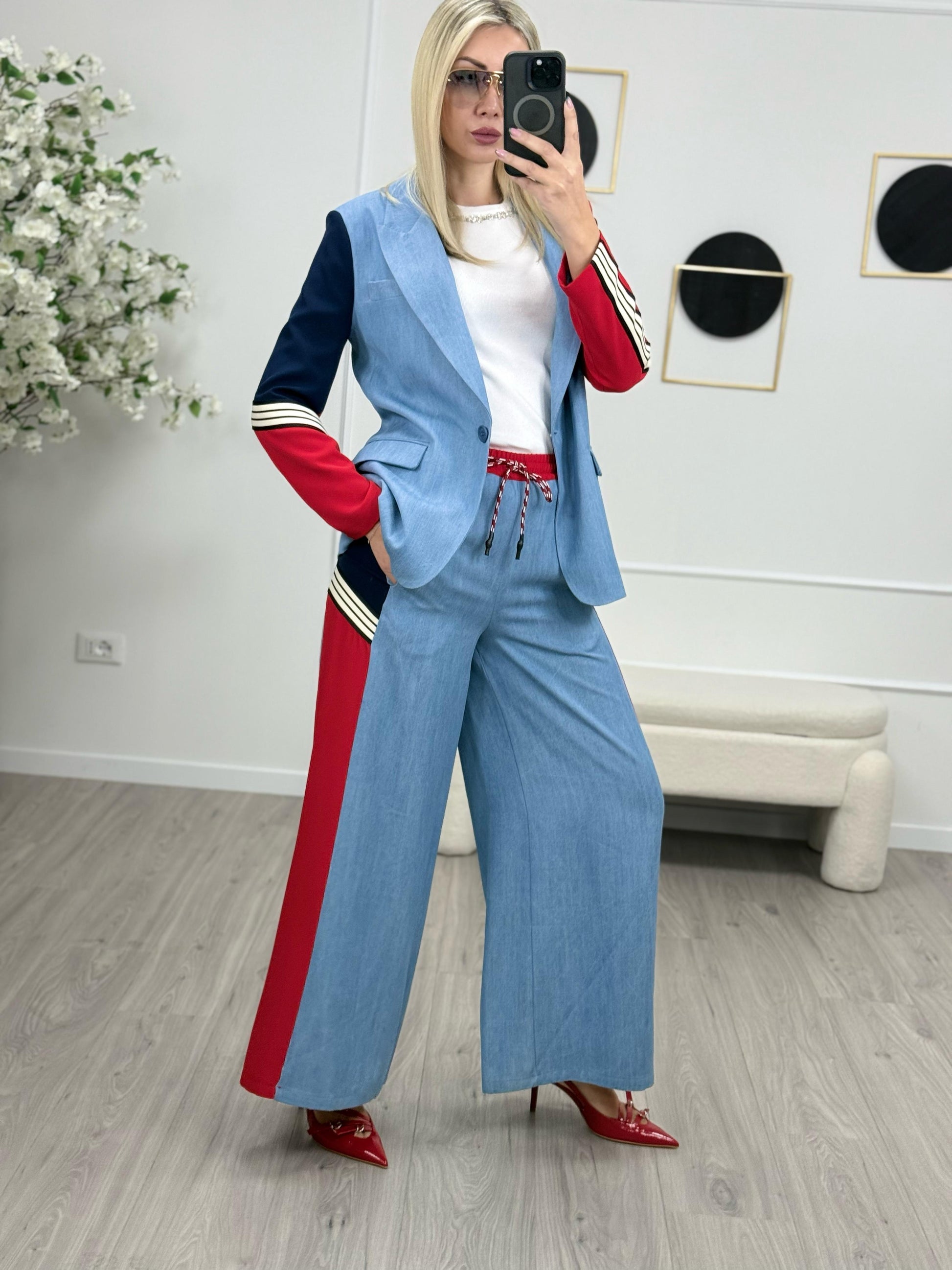 - Descrizione: Dixie Pantaloni Ampi a Blocchi di Colore Lasciati avvolgere dall'eleganza senza tempo di questi pantaloni ampi. La combinazione di blocchi di colore aggiunge dinamismo, mentre la vita alta assicura una silhouette lusinghiera. Ogni passo è accompagnato da un tocco di originalità e comfort, rendendo questo capo perfetto per molteplici occasioni quotidiane.