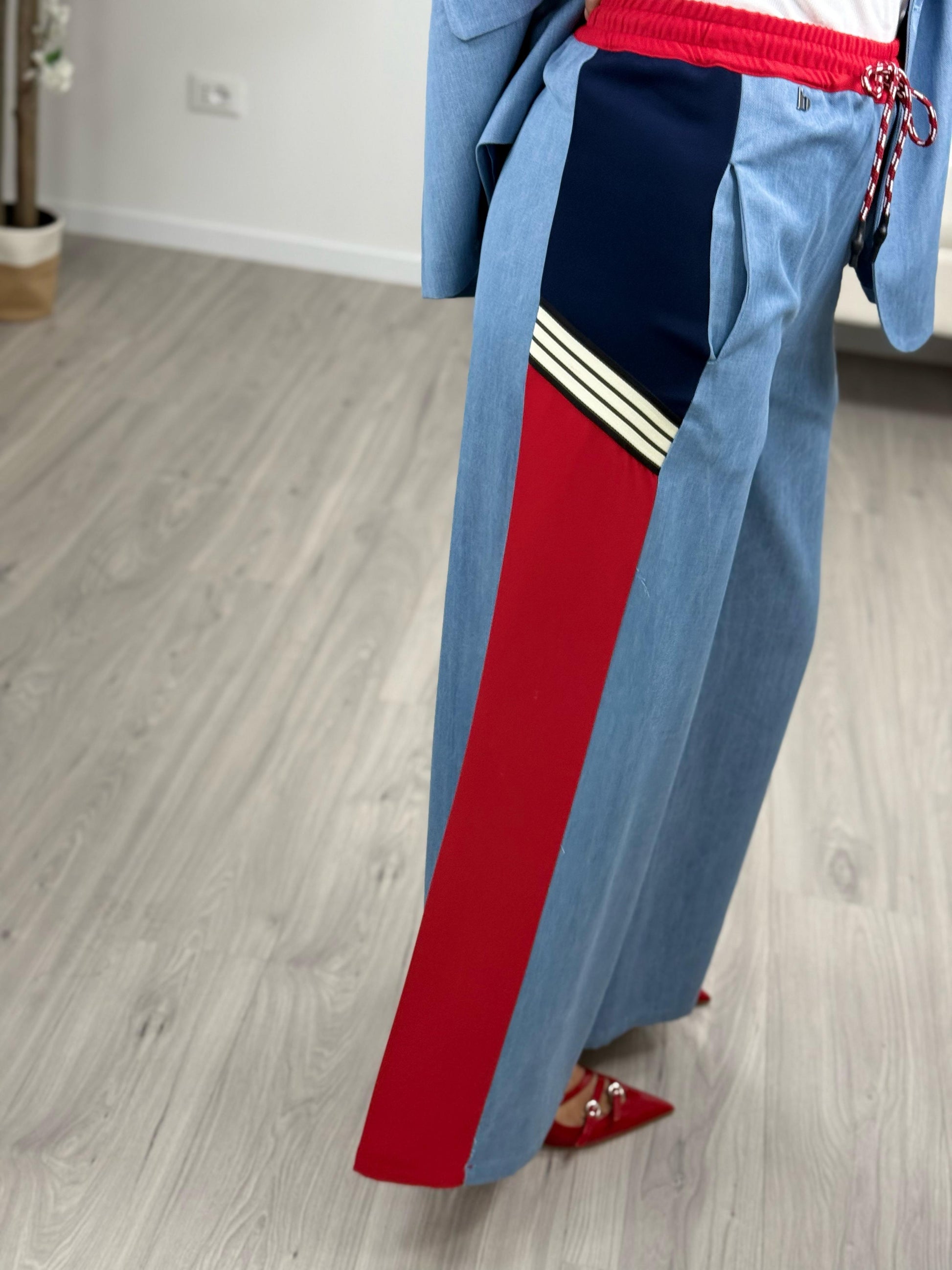 Dixie Pantaloni Ampi a Blocchi di Colore