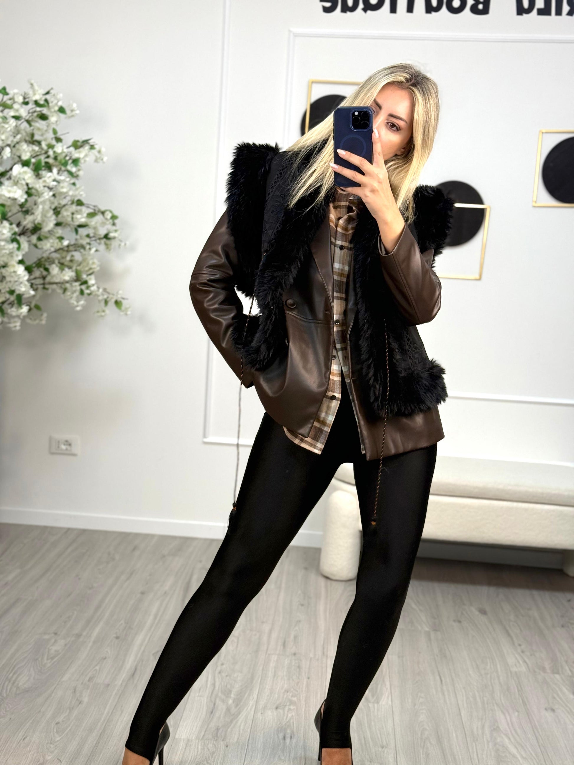 - Descrizione: Giacca Ecopelle Moro Haveone Taglio in vita e maniche.