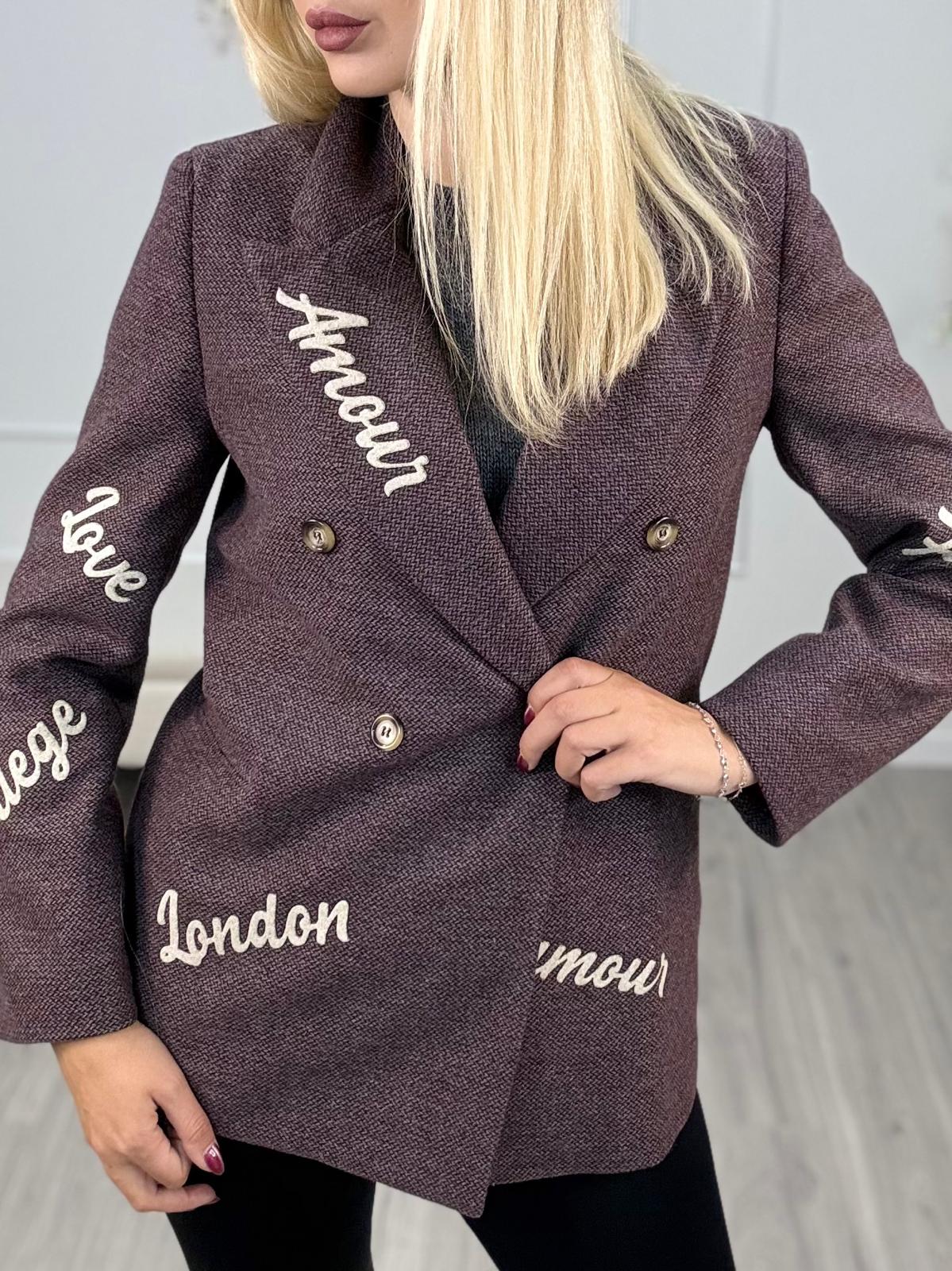 - Descrizione: Giacca Monopetto Susy Mix in colore bordo e grigio. Scritta di colore panna.