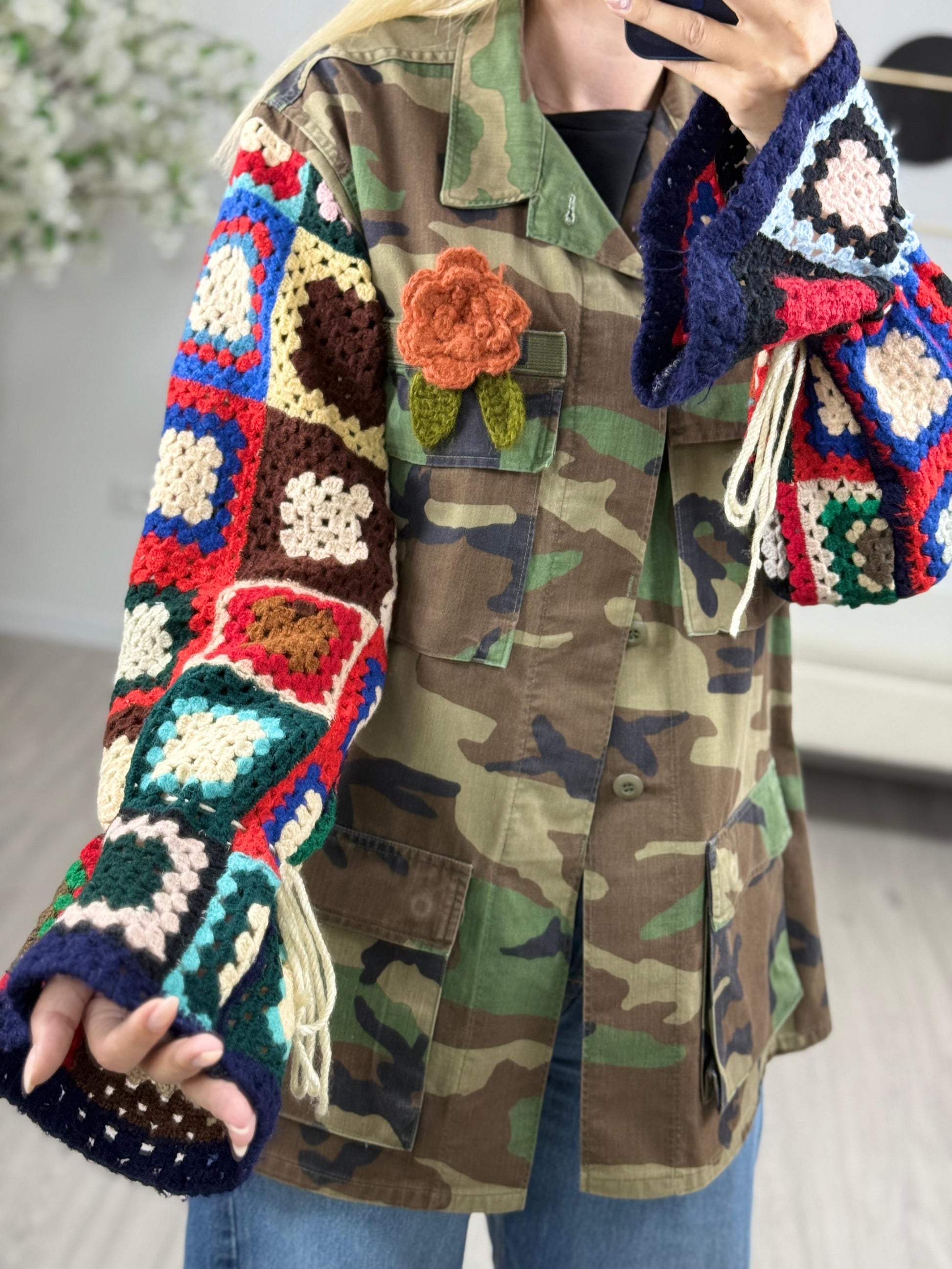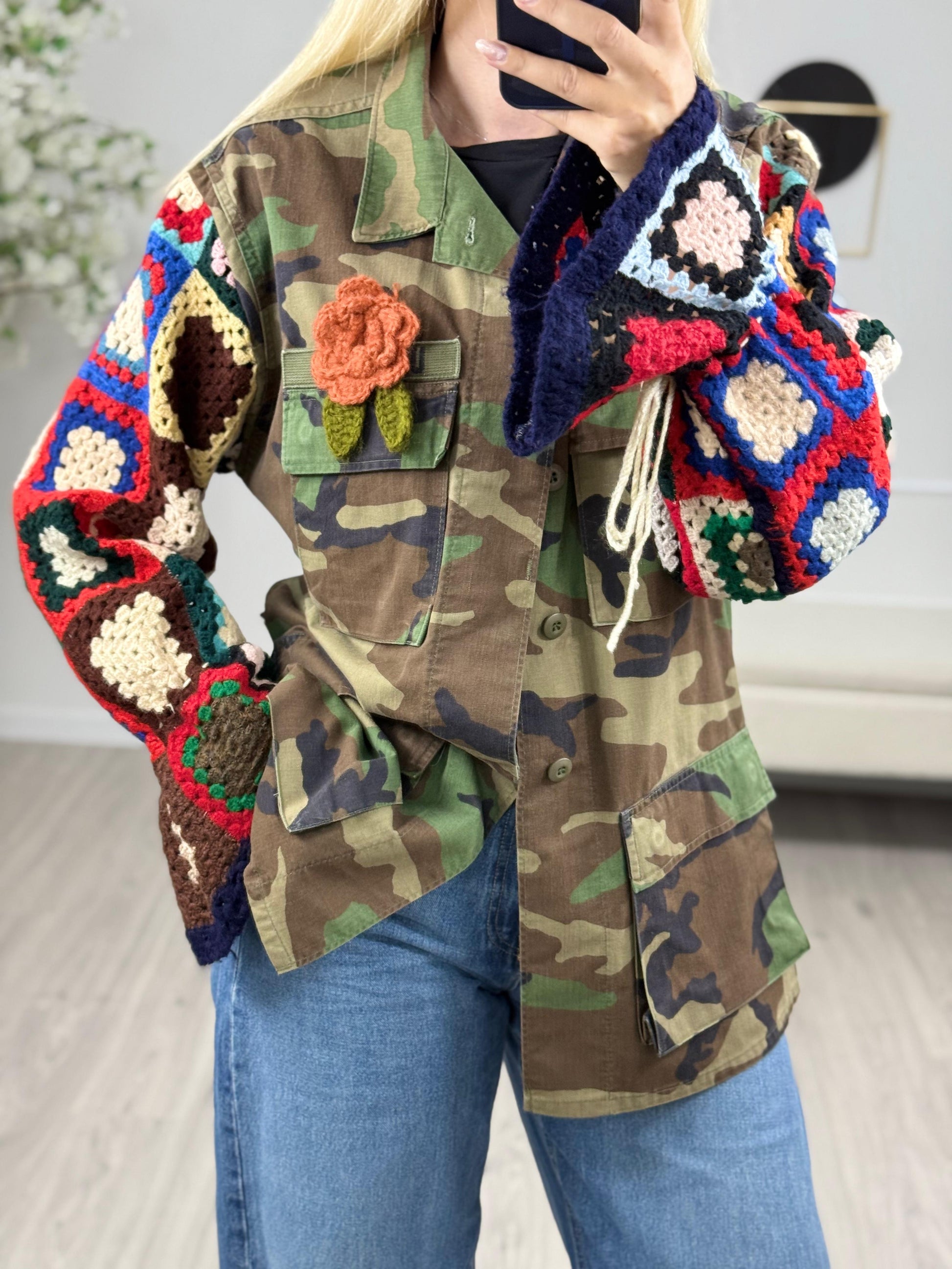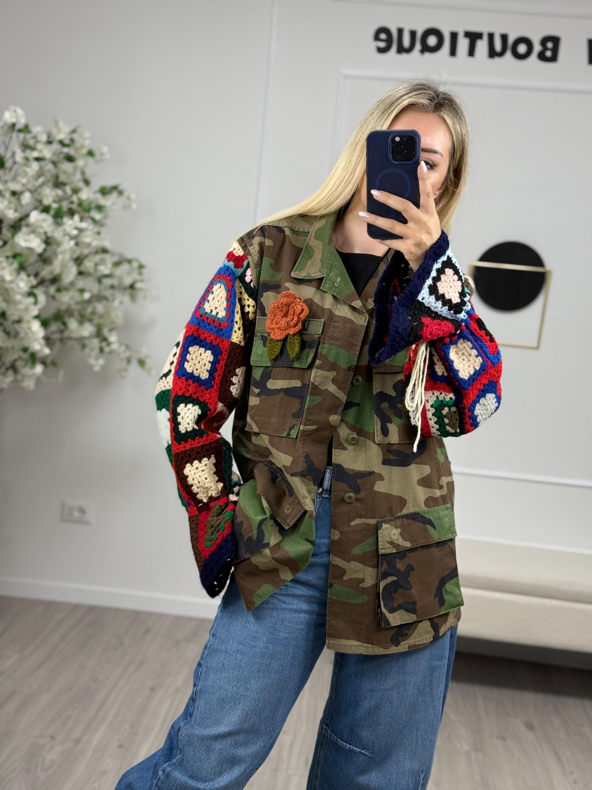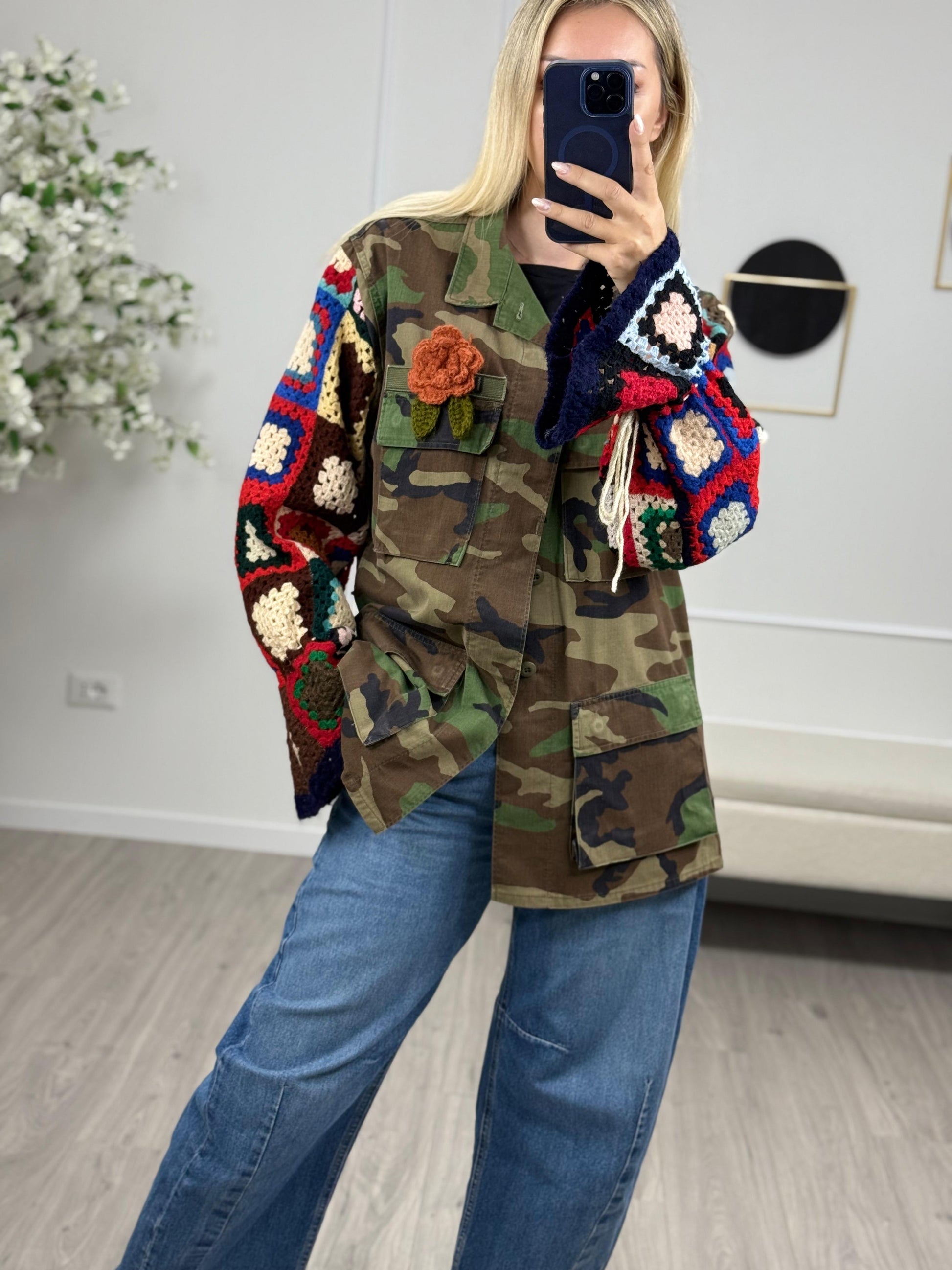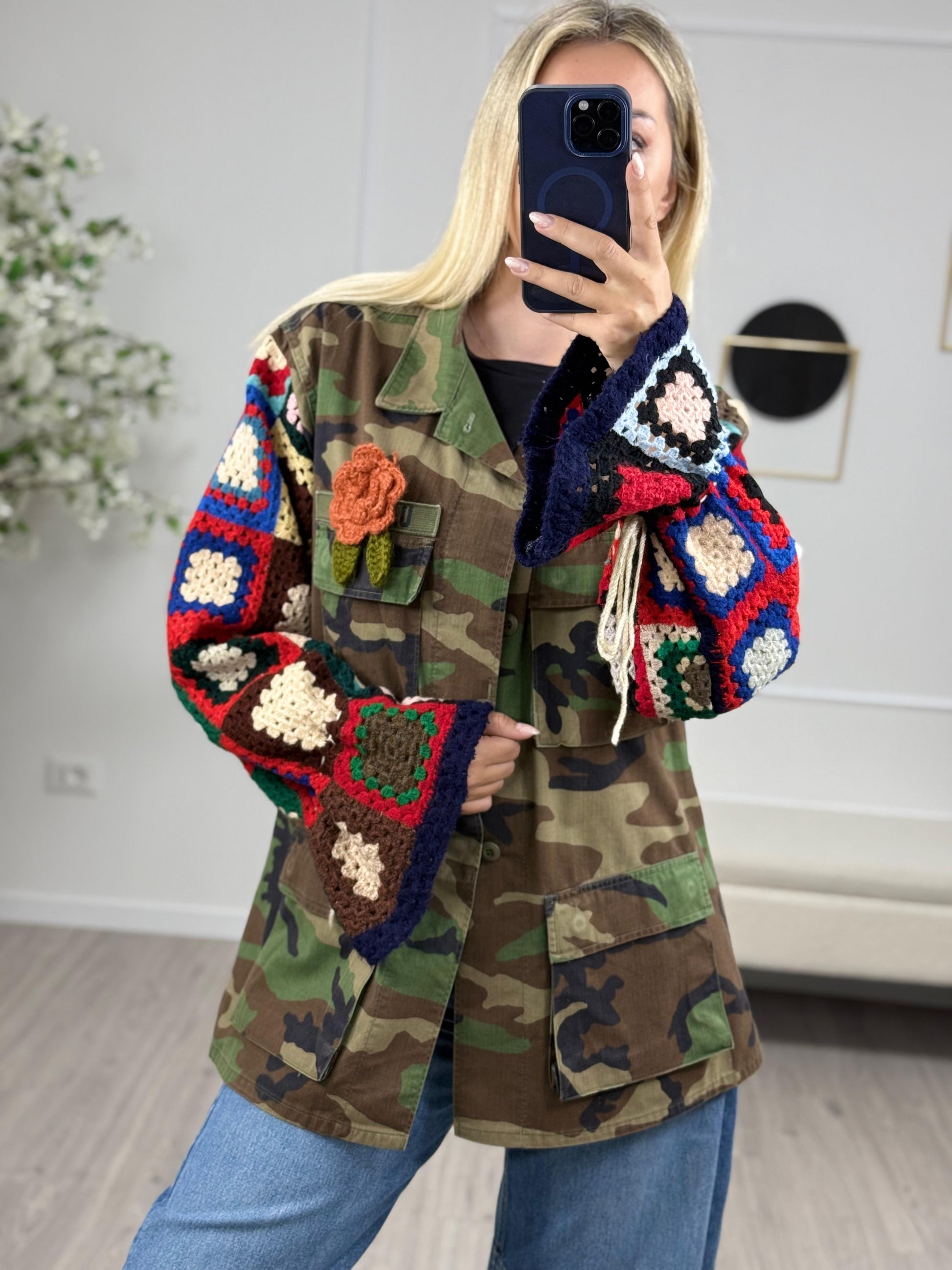 - Descrizione: Giacca Sahariana con maniche in Crochet. Taglia Unica Composizione:100%cottone