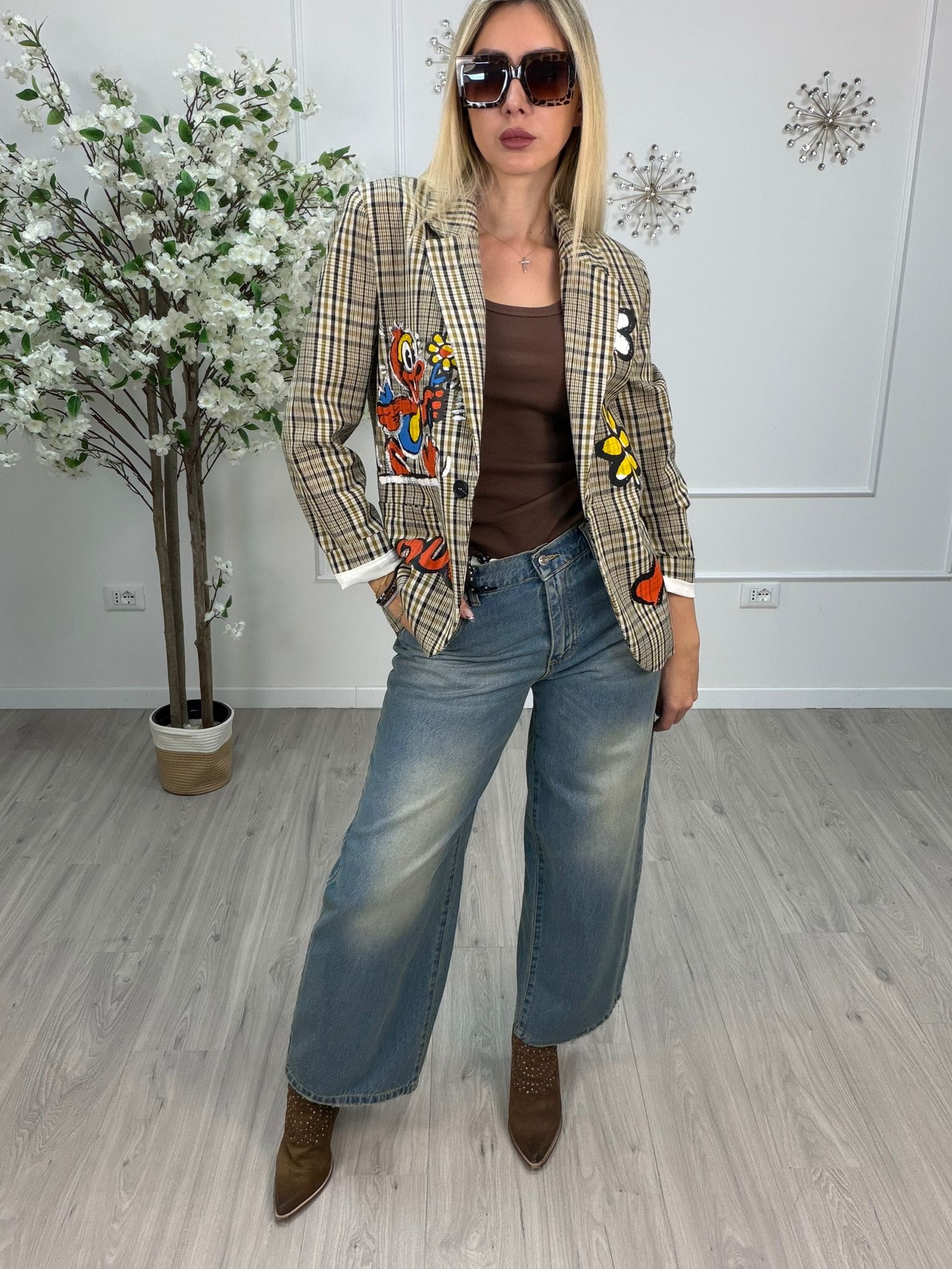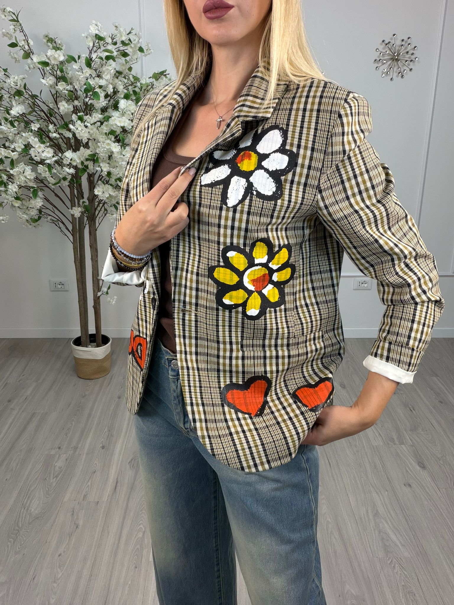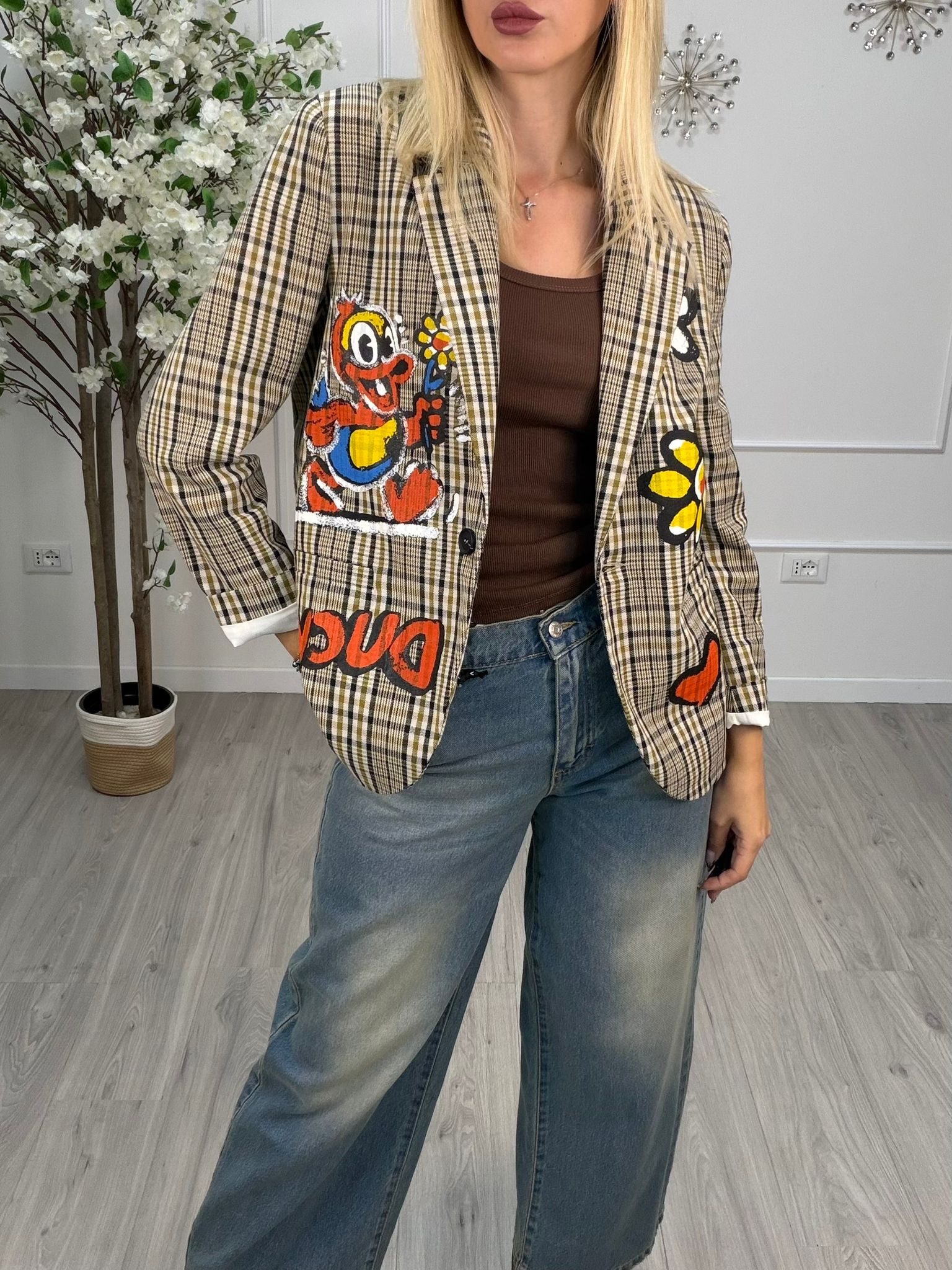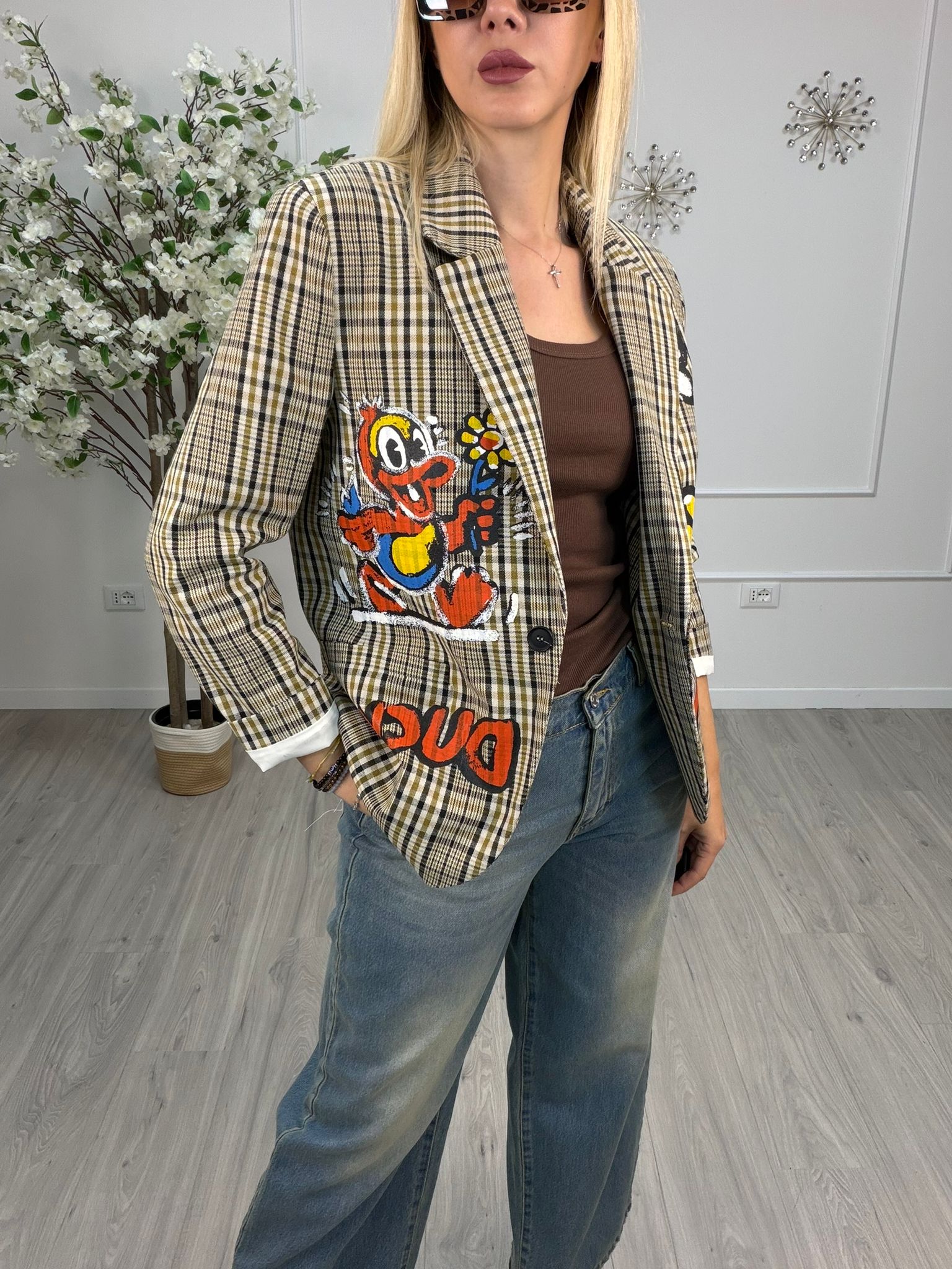 Blazer a quadri esclusivo con grafiche dipinte a mano. Un capo iconico che unisce stile sartoriale e arte artigianale.