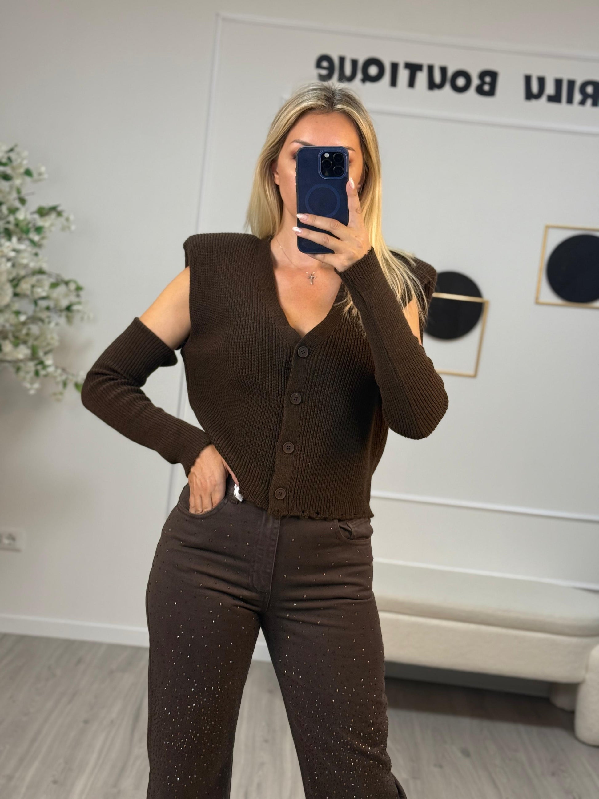 - Descrizione: Gilet Manicotti con spalline in misto lana, e scollo a V, spalline imbottite .