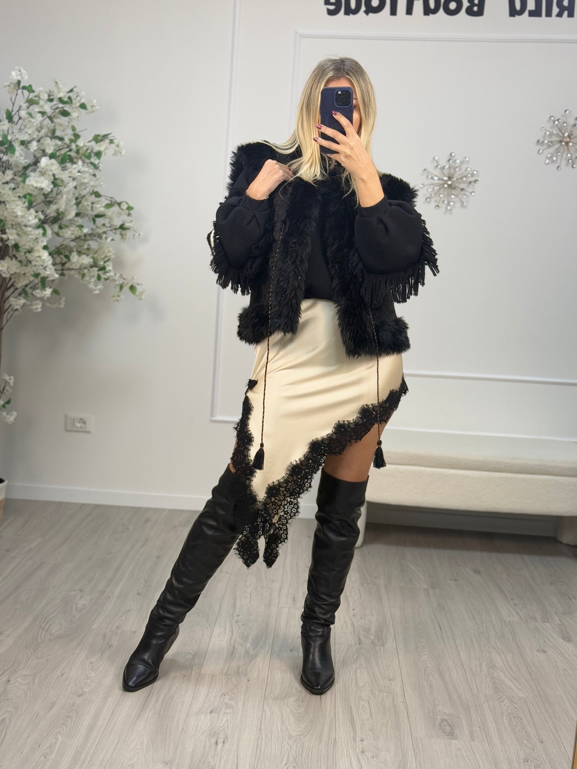 - Descrizione: Gonna Asimmetrica Pizzo Haveone in Colori Burro e Nero /pizzo nero.