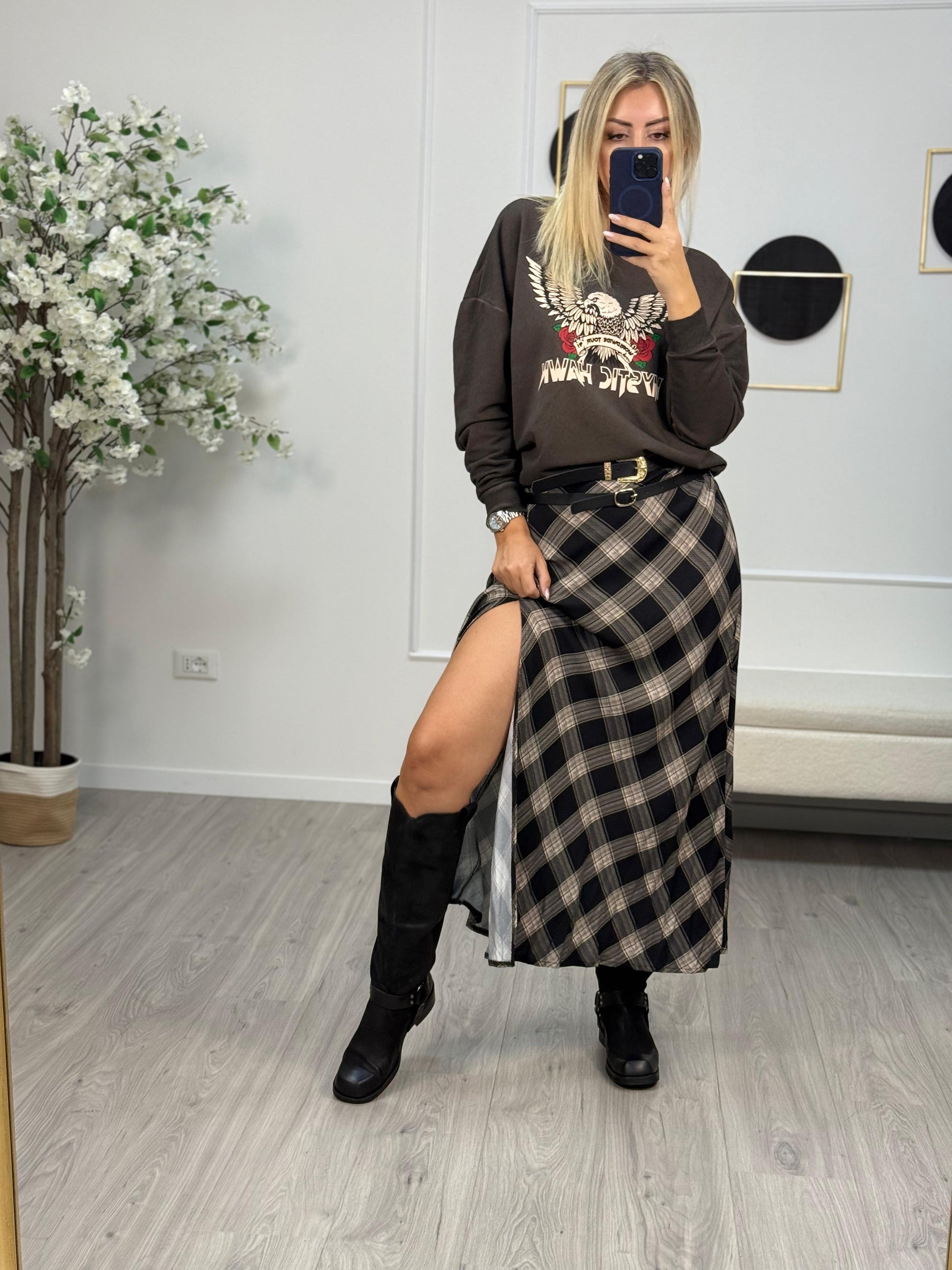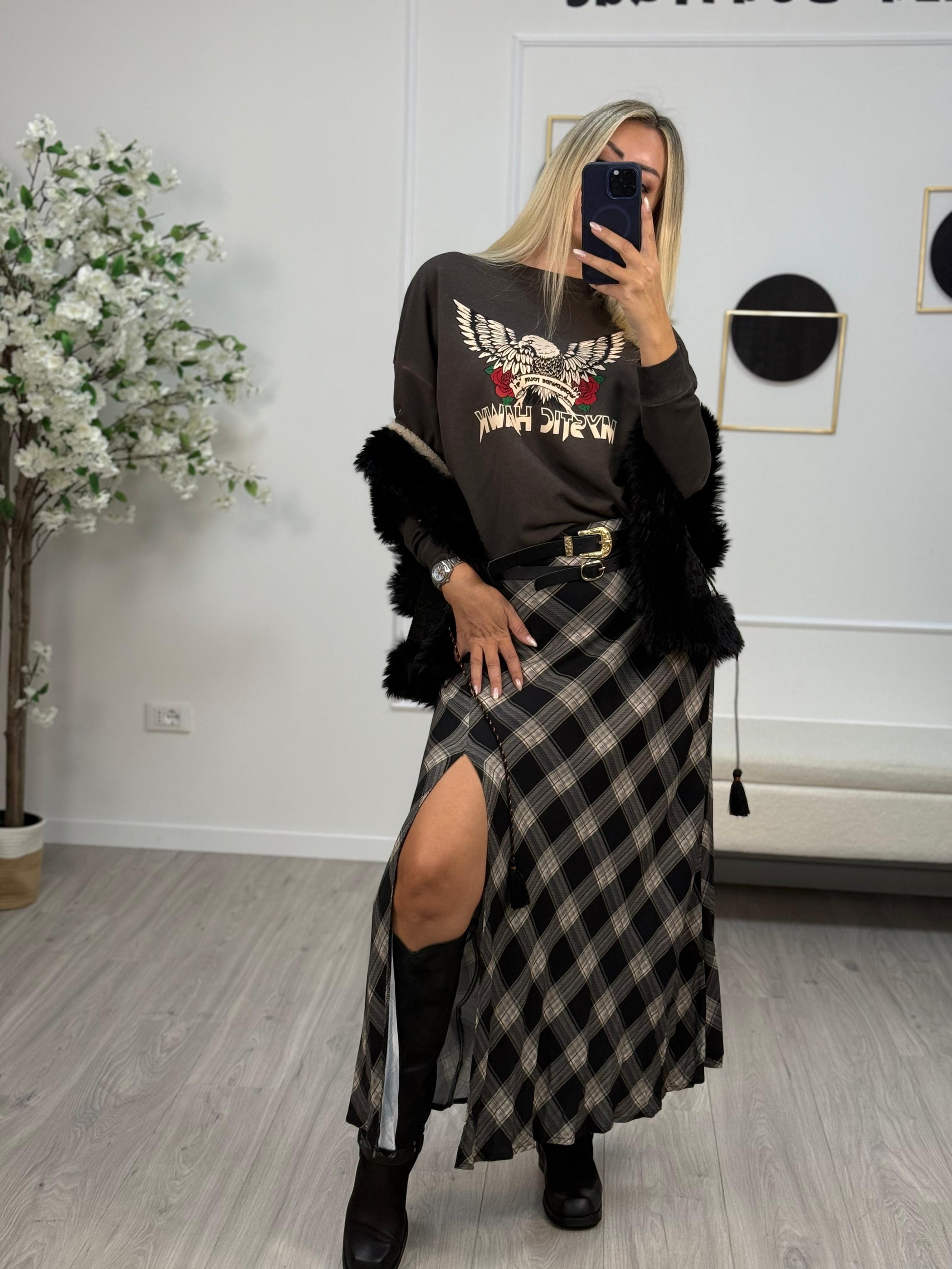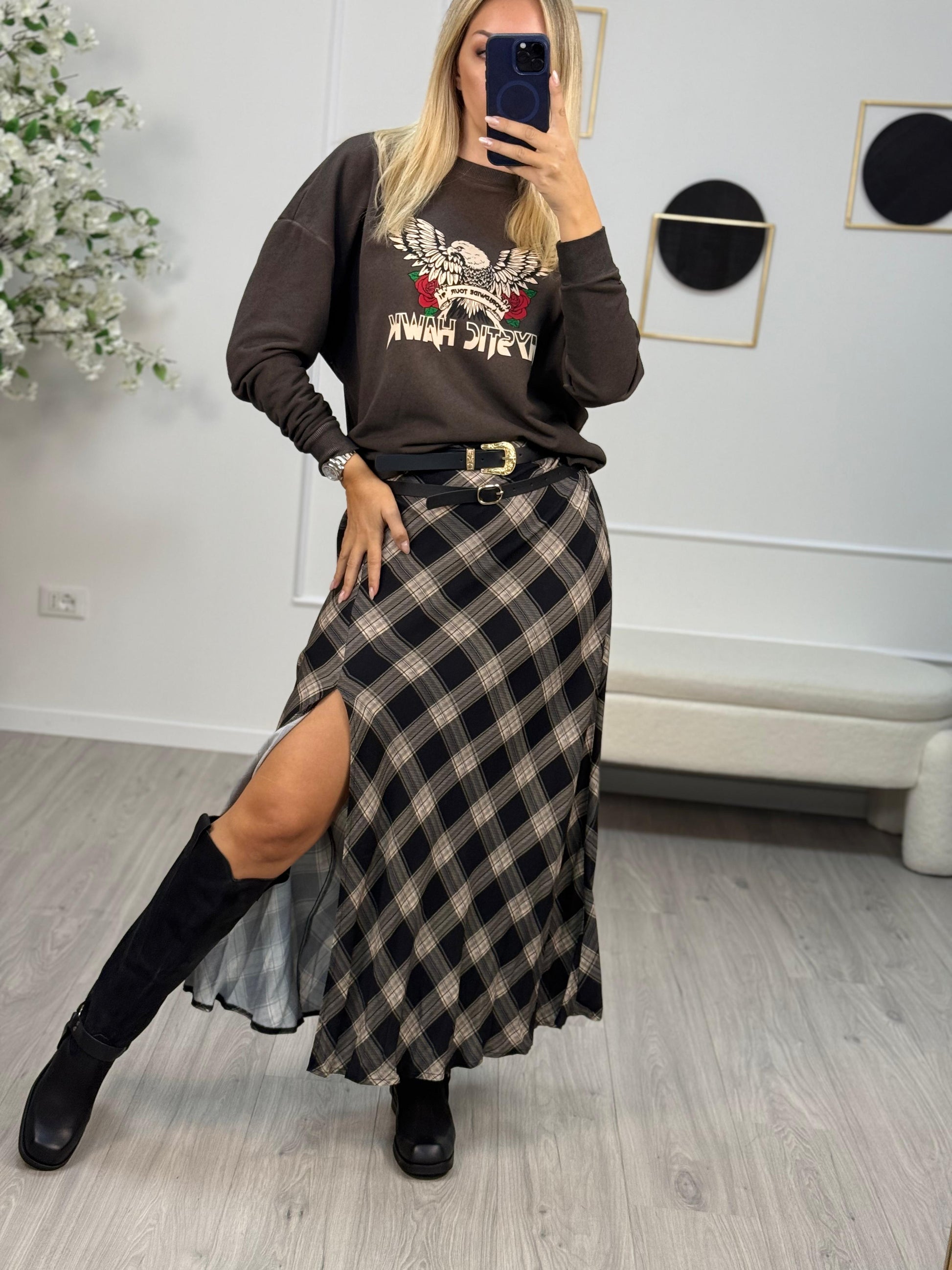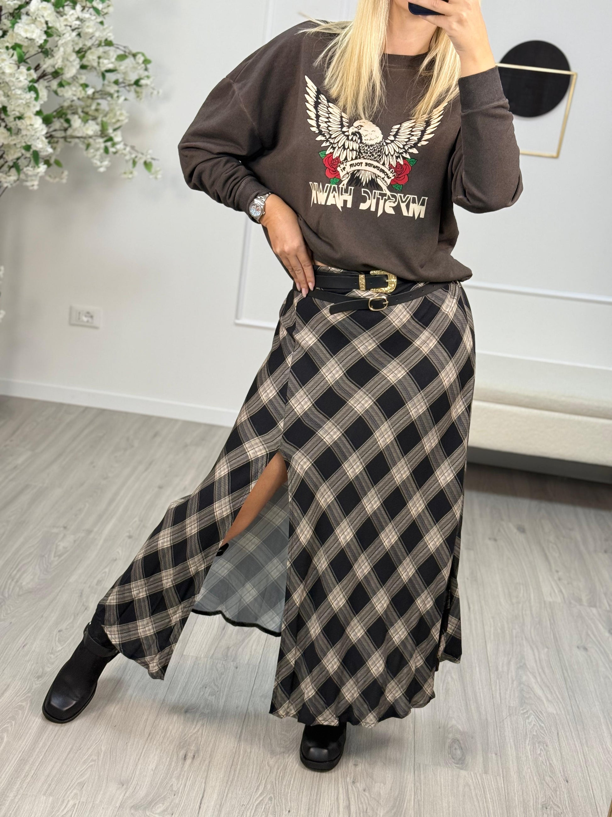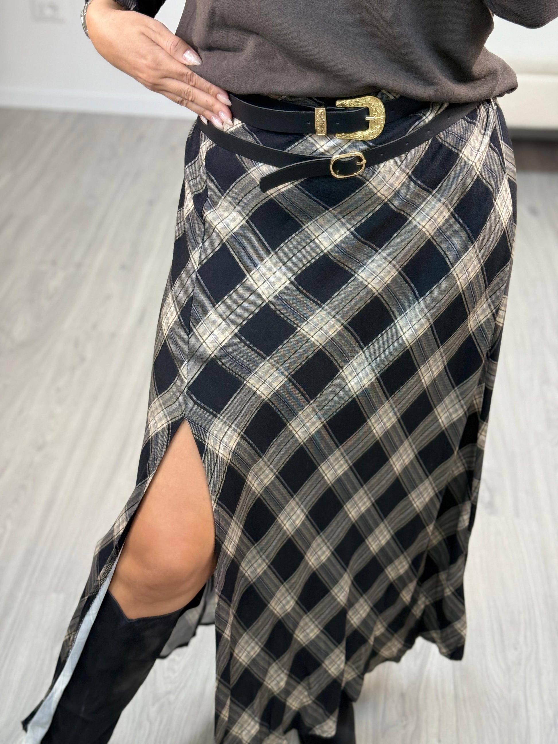 Descrizione: Gonna Con Cinturine Haveone Gonna con spacco centrale a fantasia check sui toni del nero e grigio.