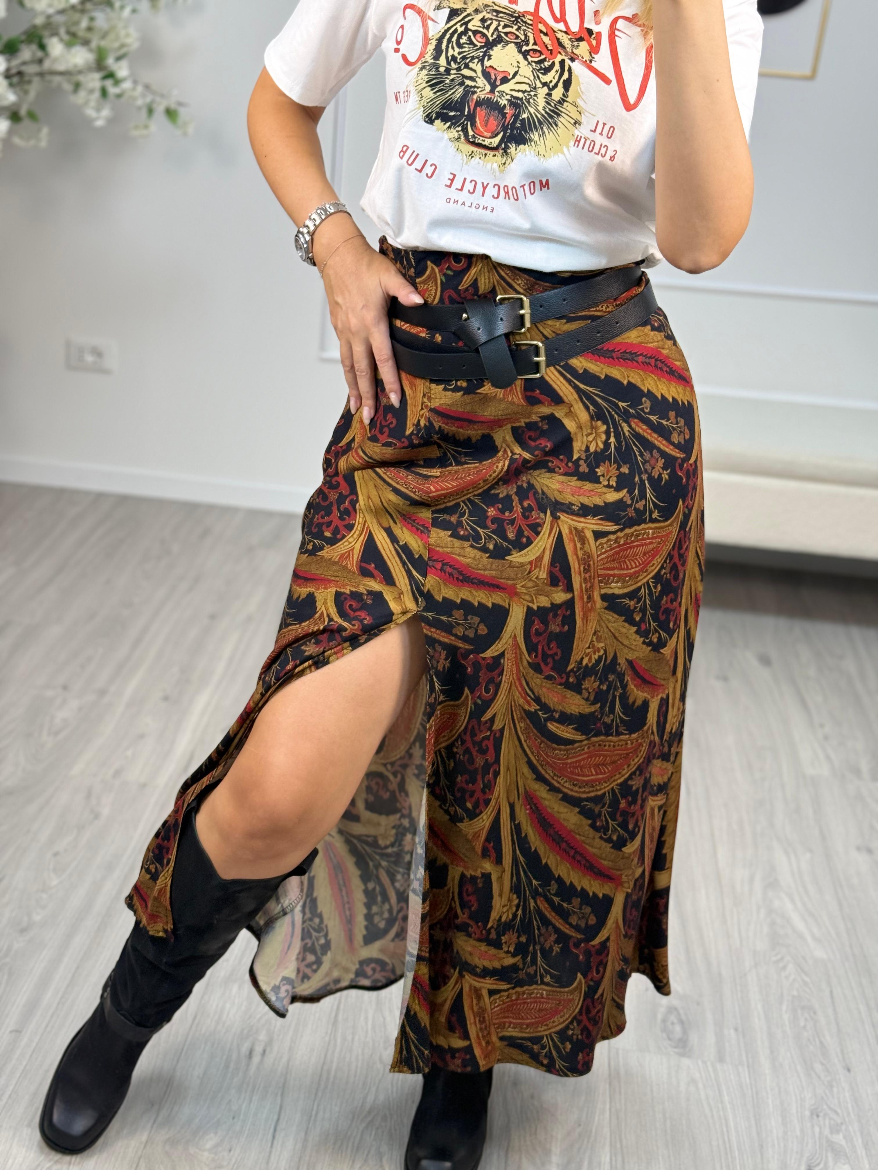 - Modello longuette svasato sul fondo con zip sul fianco. doppia cintura compresa.