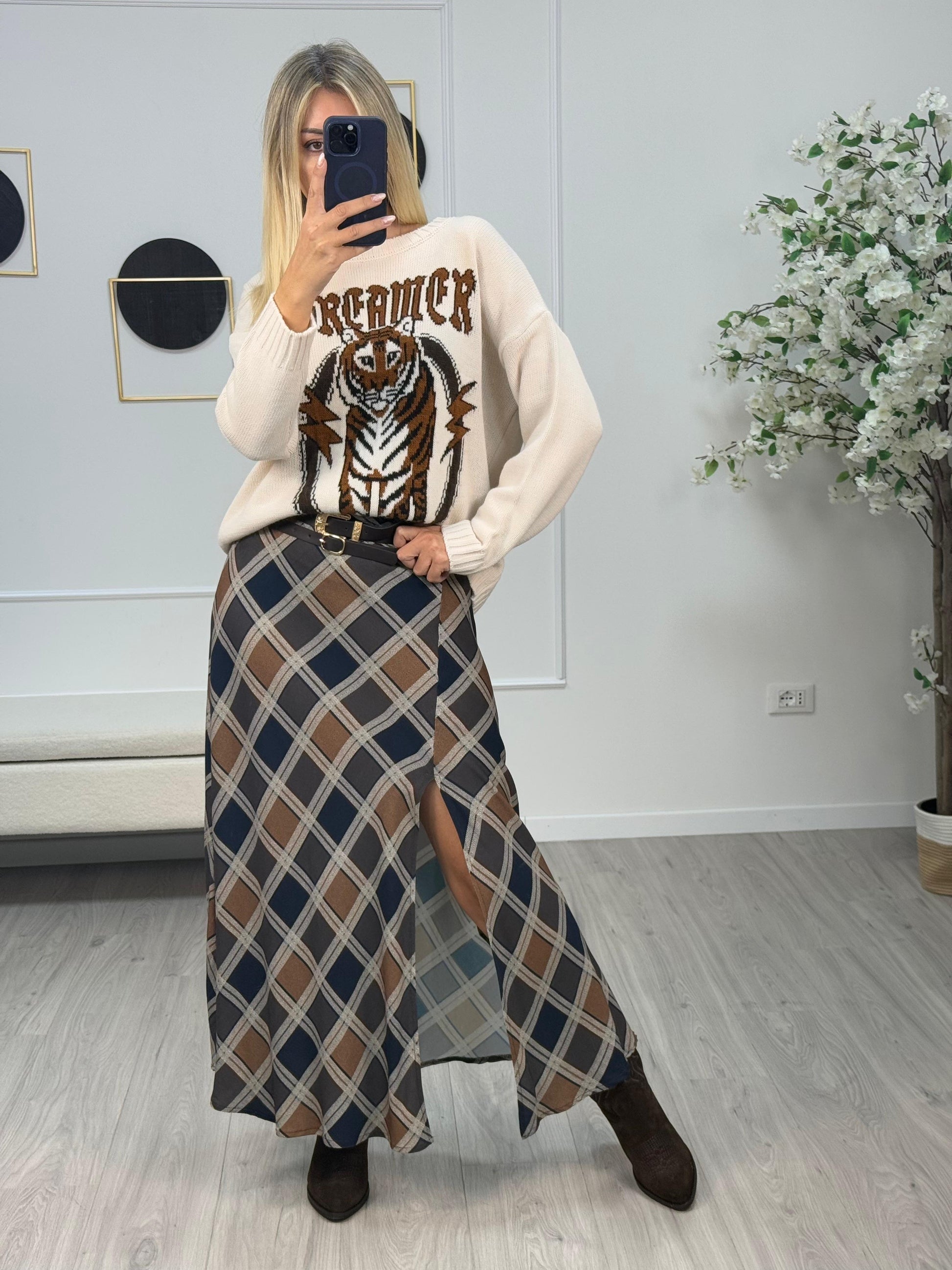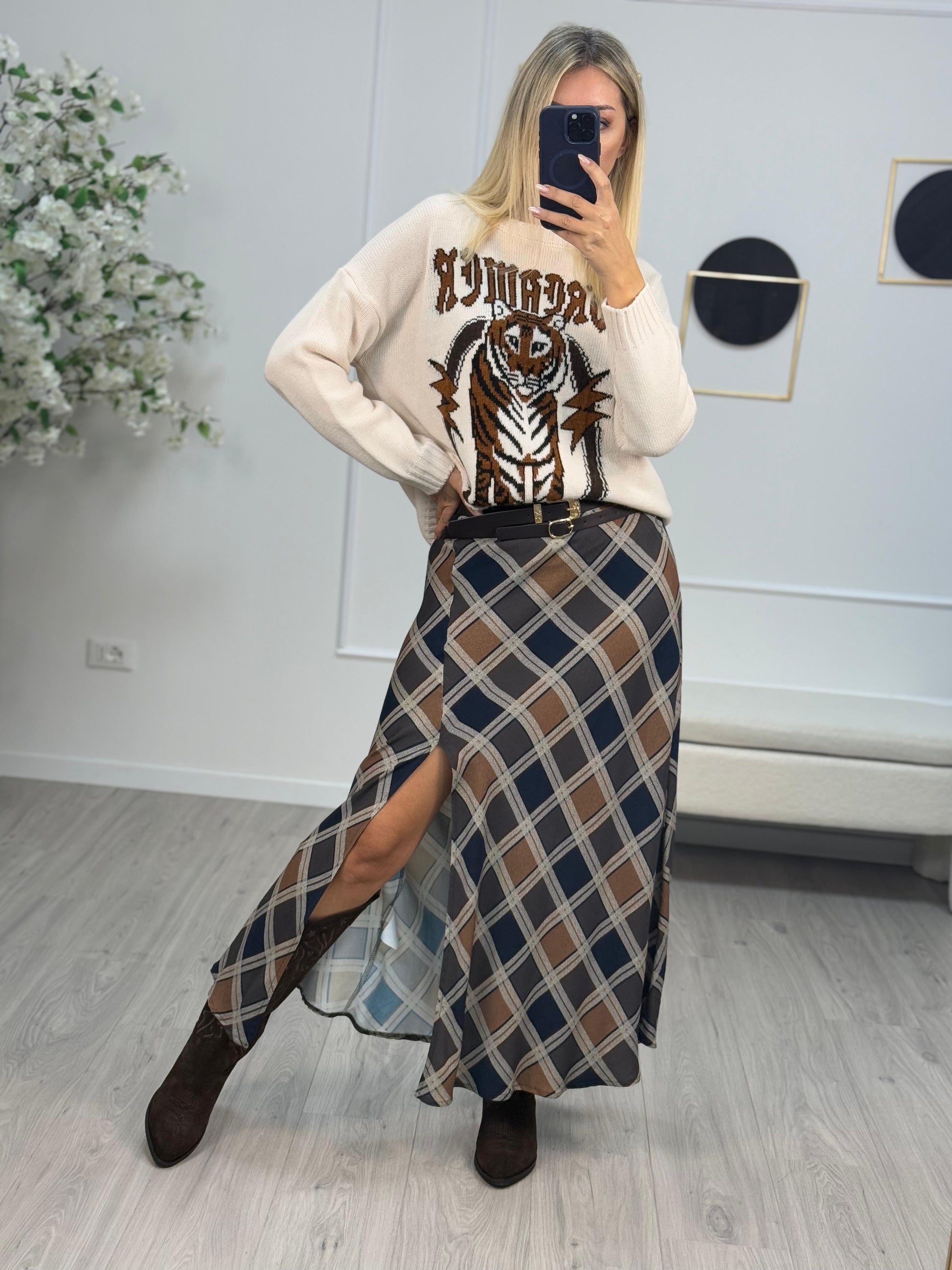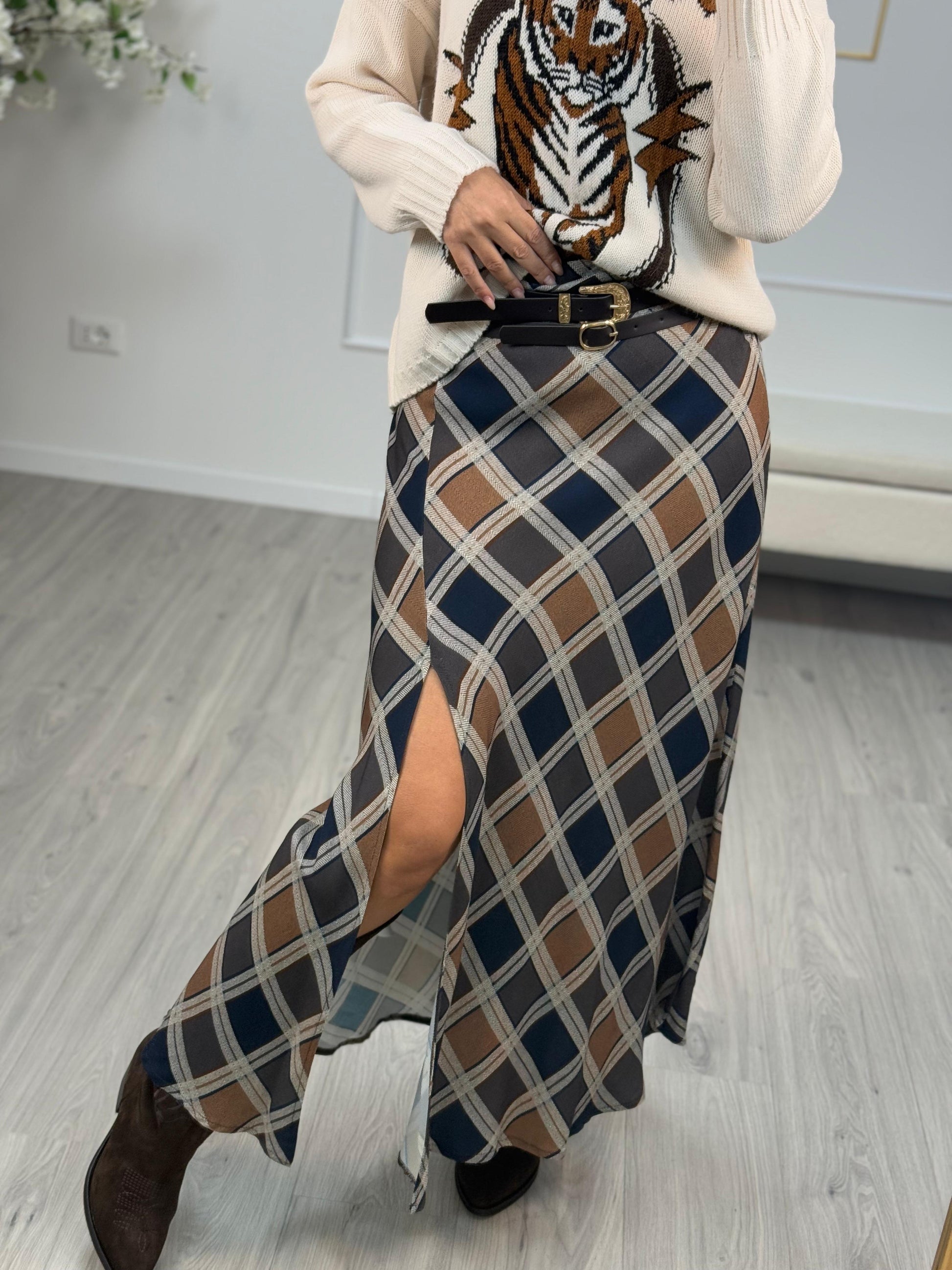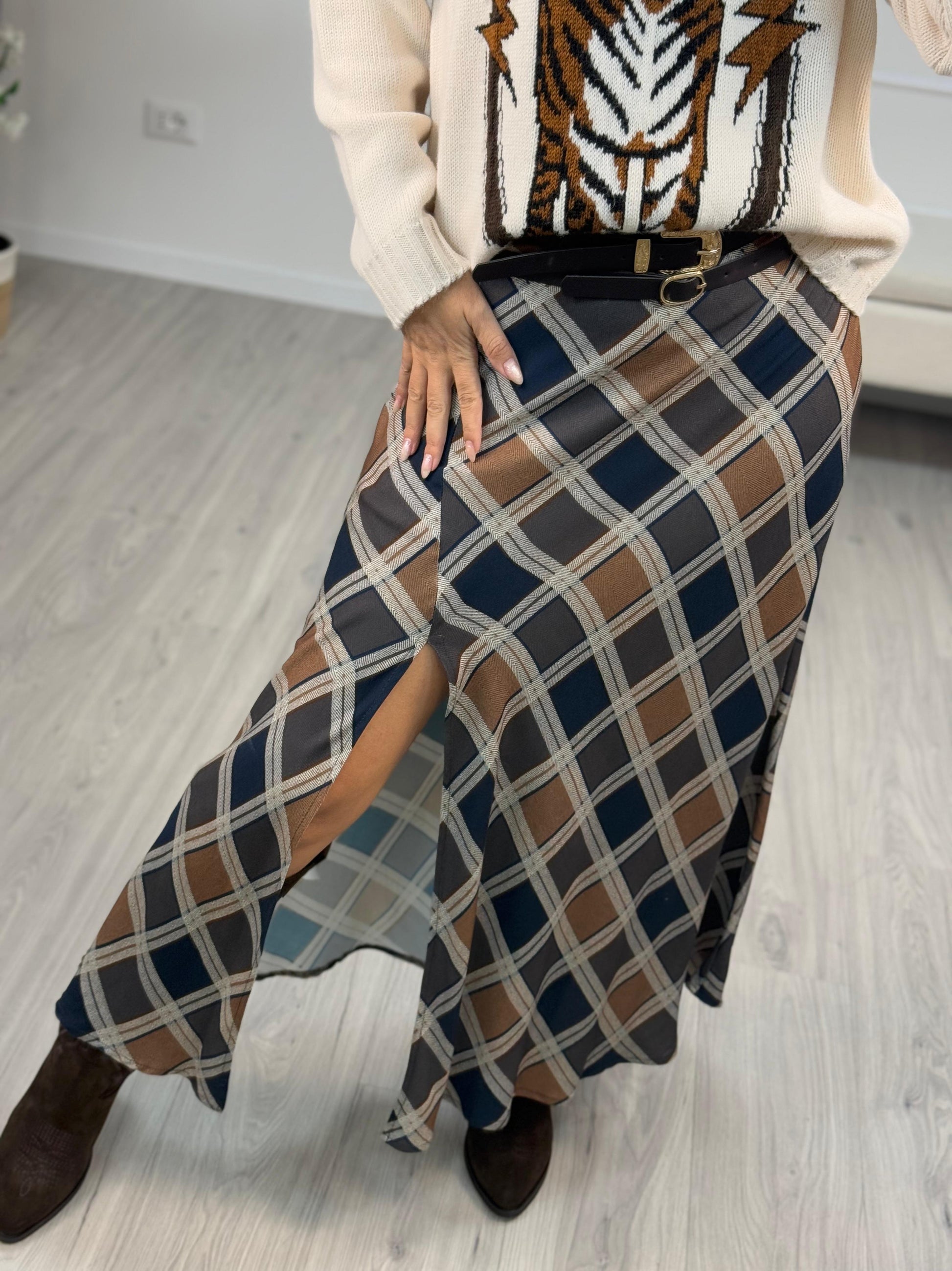 - Modello longuette svasato sul fondo con zip sul fianco. doppia cintura compresa.