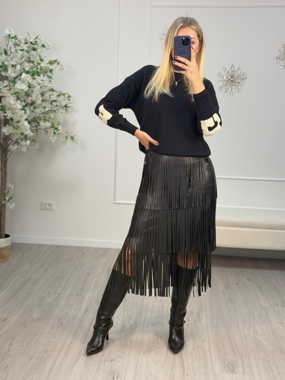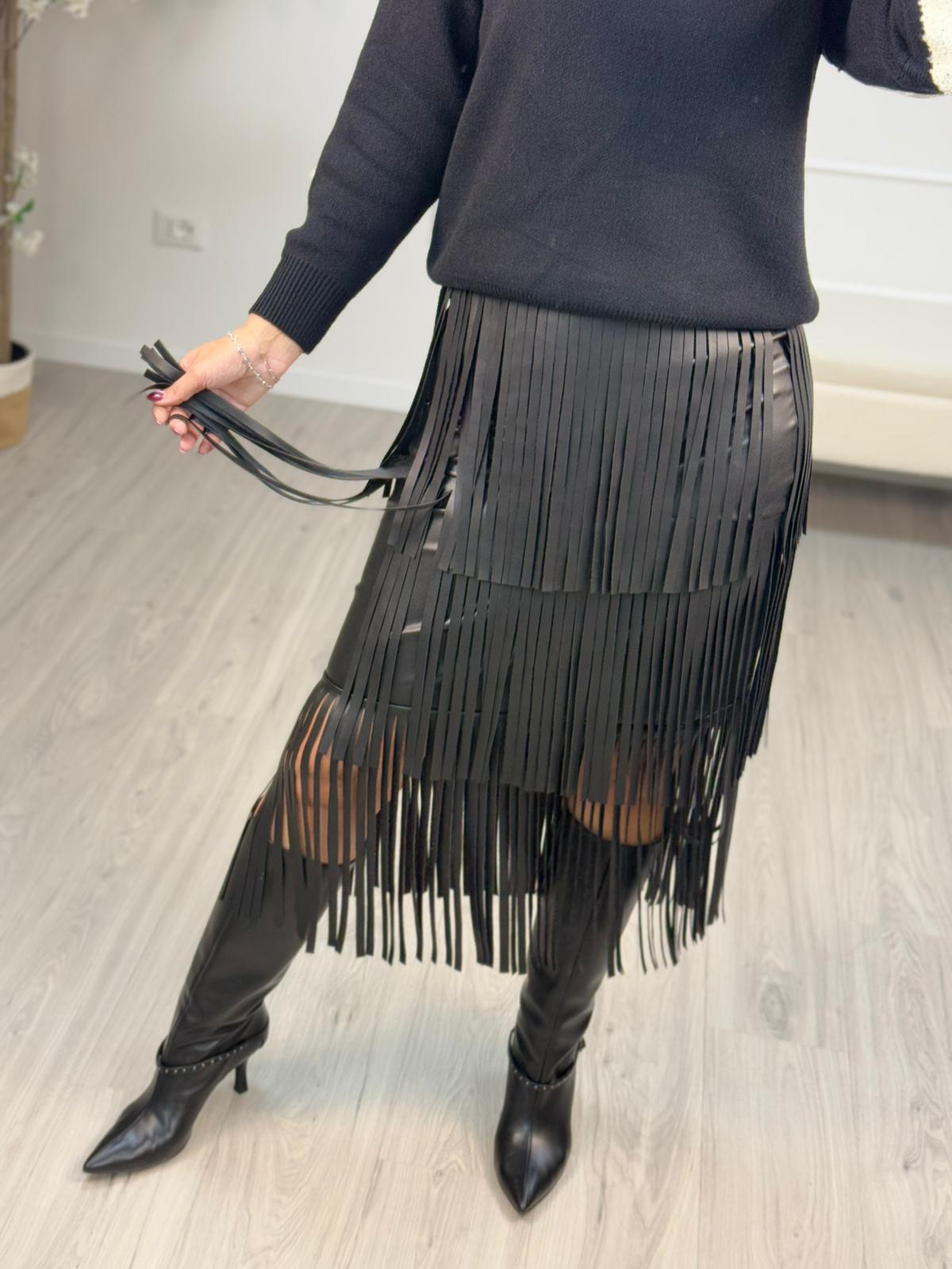 - Descrizione: Gonna Frange Susy Mix in eco pelle. Chiusura Zippo laterale.