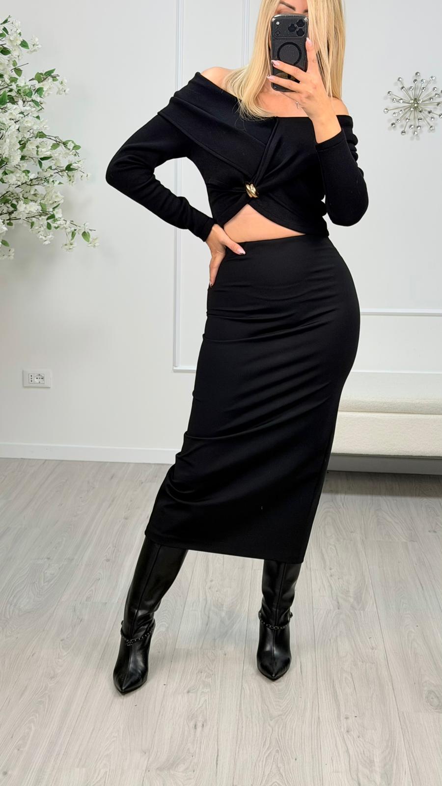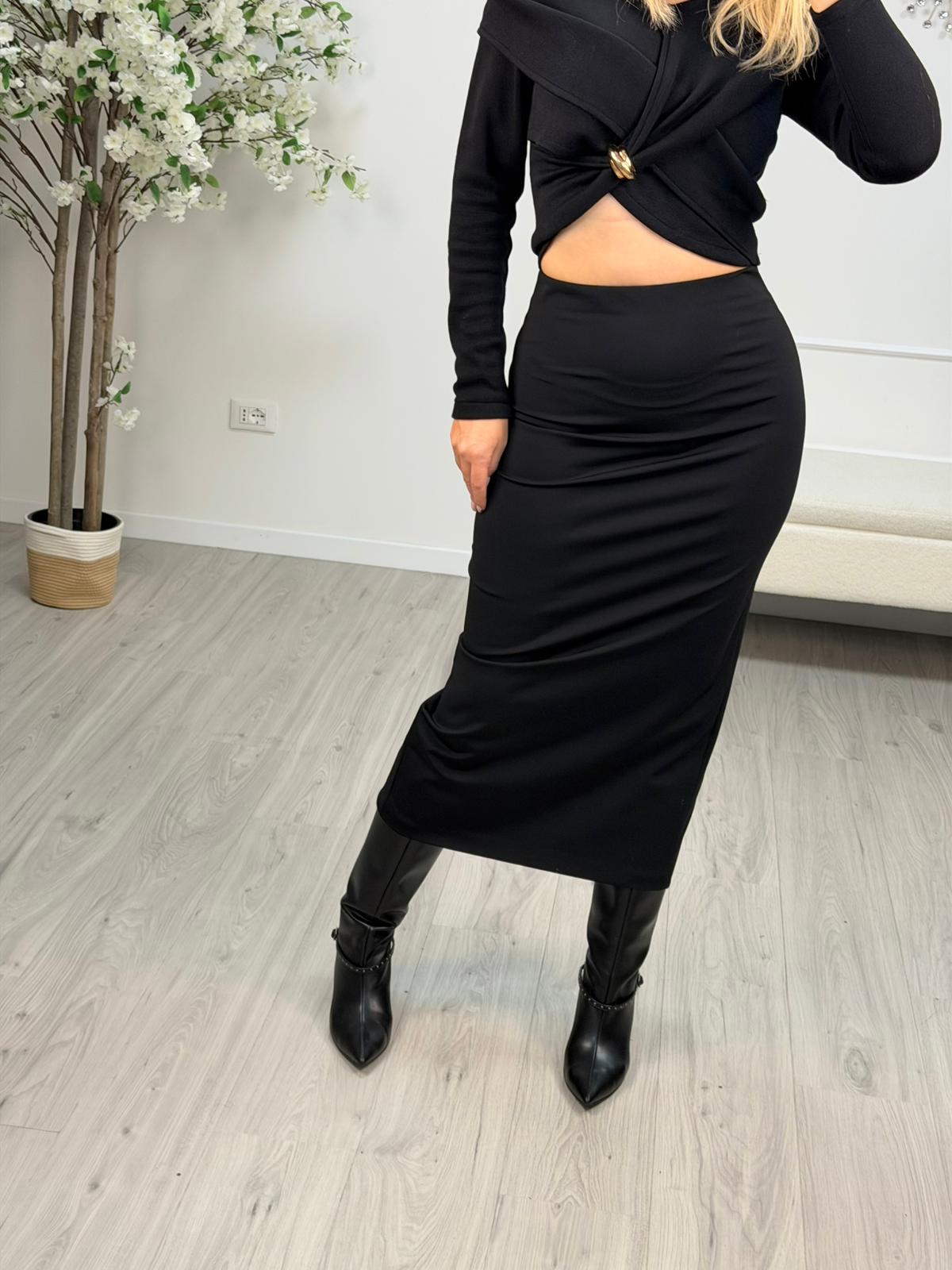 Gonna longuette punto milano, Tensione In. Spacco retro.