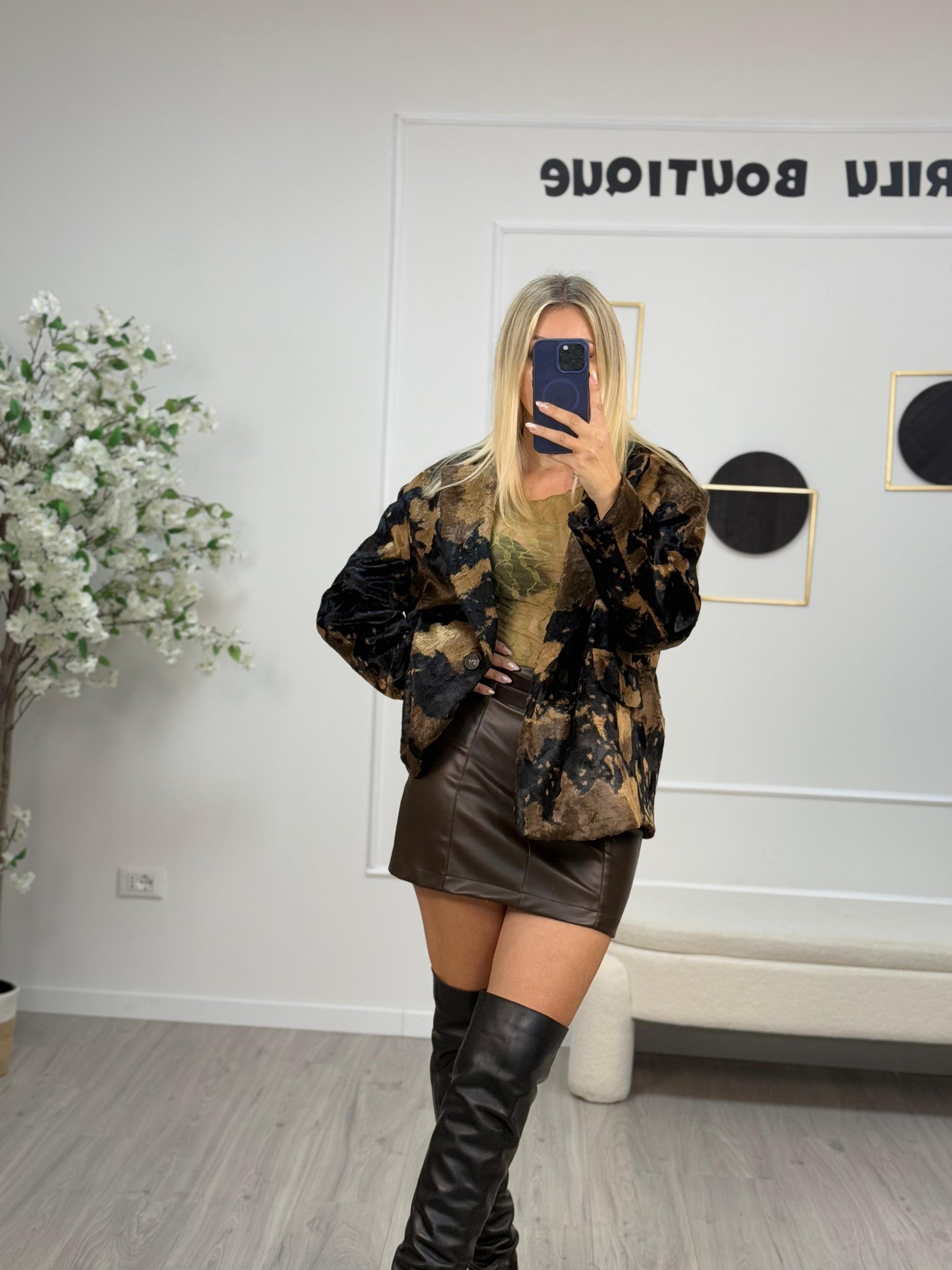 Descrizione: Gonna Mini Ecopelle Con Cintura. Disponibile in Colore Marrone e Whisky. Composizione: 100%pu 100%pl