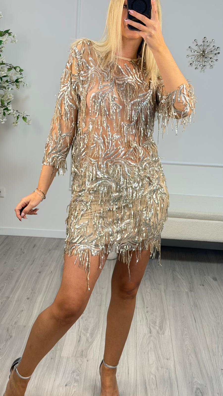 - Descrizione: Gonna Mini Pailetes Tensione In Gonna mini semi-trasparente con ricami in paillettes, elastico in vita e sottogonna interna per comfort e copertura. Linea femminile e luminosa, ideale per look eleganti e di tendenza.