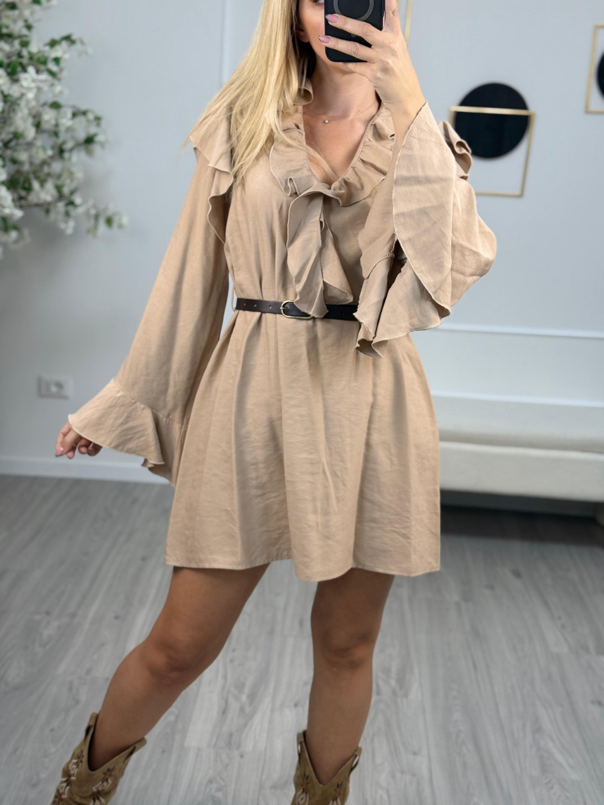 - Descrizione: HaveOne Abito Volant Sabbia con cintura.