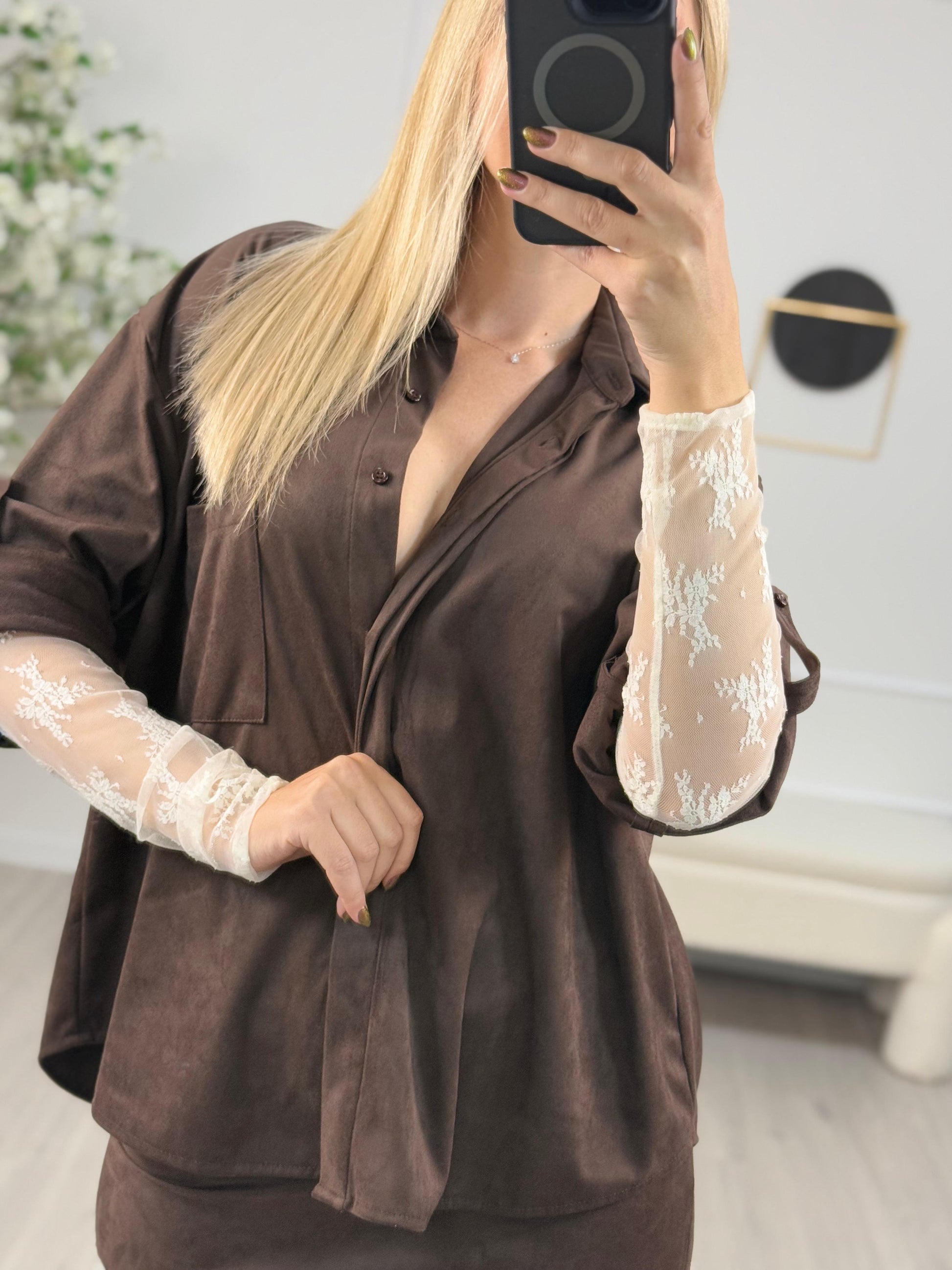 - Descrizione: HaveOne Camicia Manica Pizzo in colore Moro,camoscio .Taglia Unica , un tessuto morbidissimo .