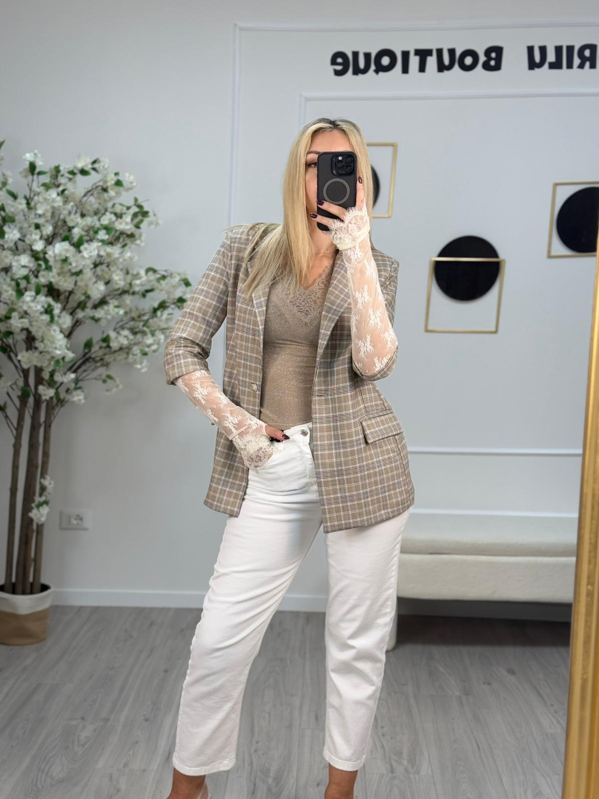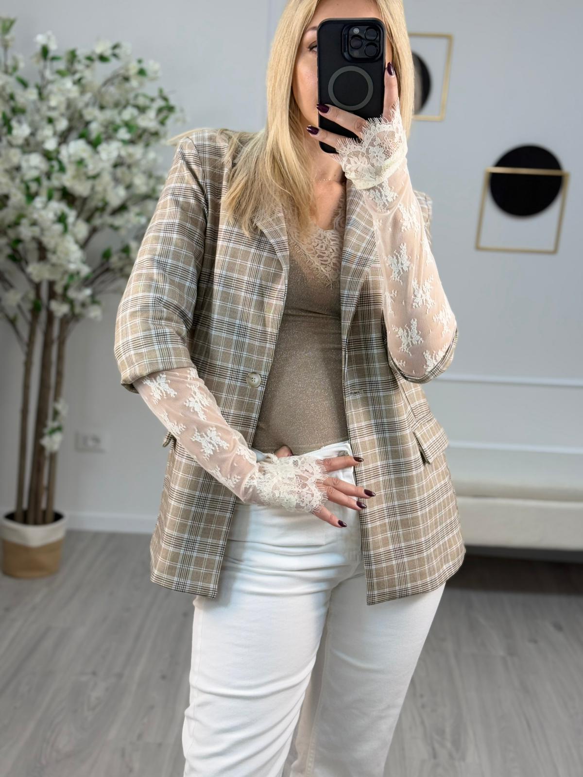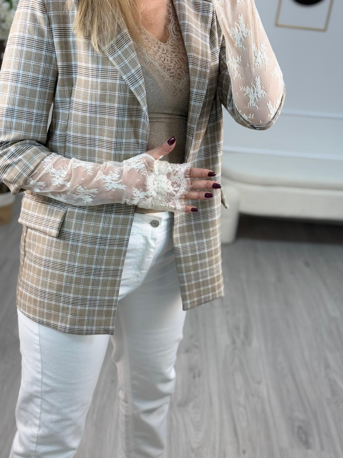 - Descrizione: HaveOne Giacca Manica Pizzo in Colore Tabacco, con maniche in pizzo bianco.