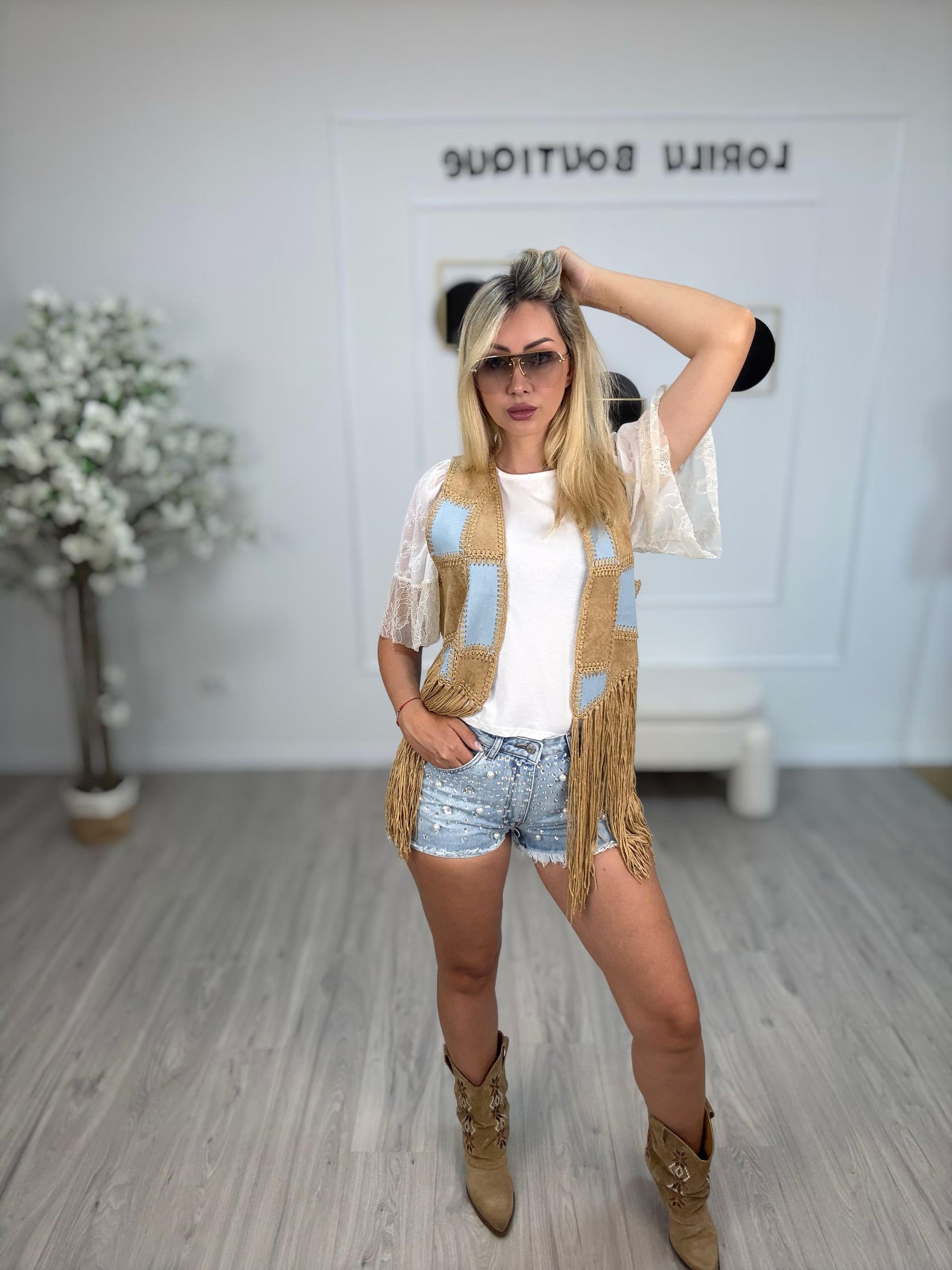 Descrizione: HaveOne Gile Frange Bicolor Cammello Composizione: 100%poliestere