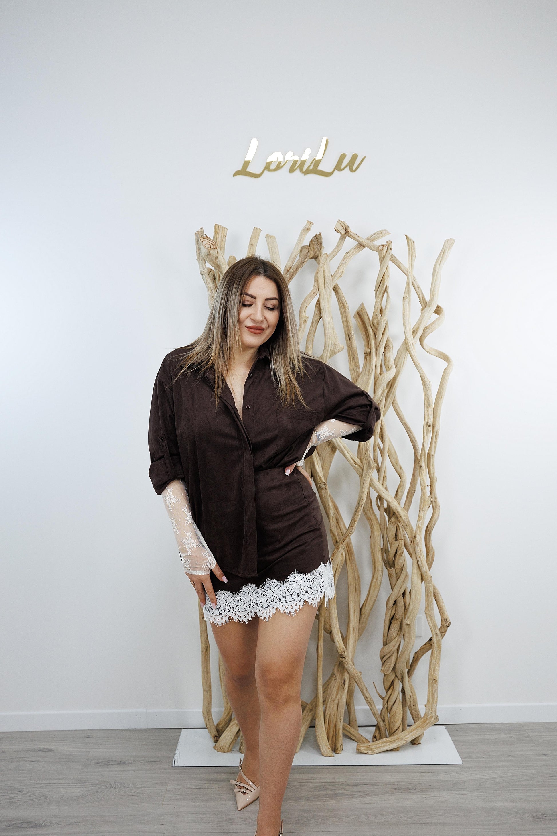 - Descrizione: HaveOne Mini Gonna Dainetto con pizzo bianco , tessuto molto morbido. In colore Moro.