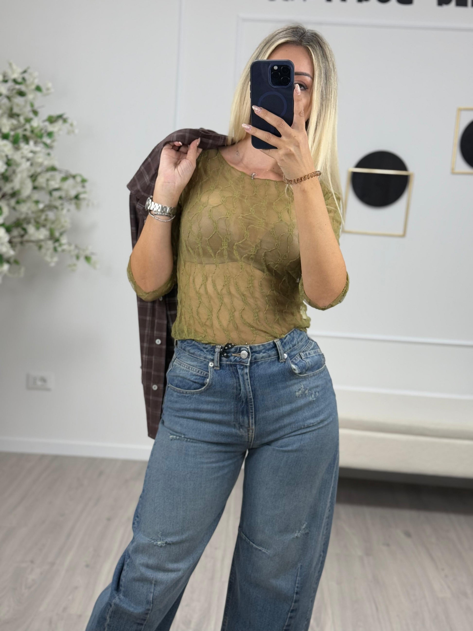 - Descrizione: Maglia Tulle Con scollo a barca. Composizione: 90%nylon 10%elastico