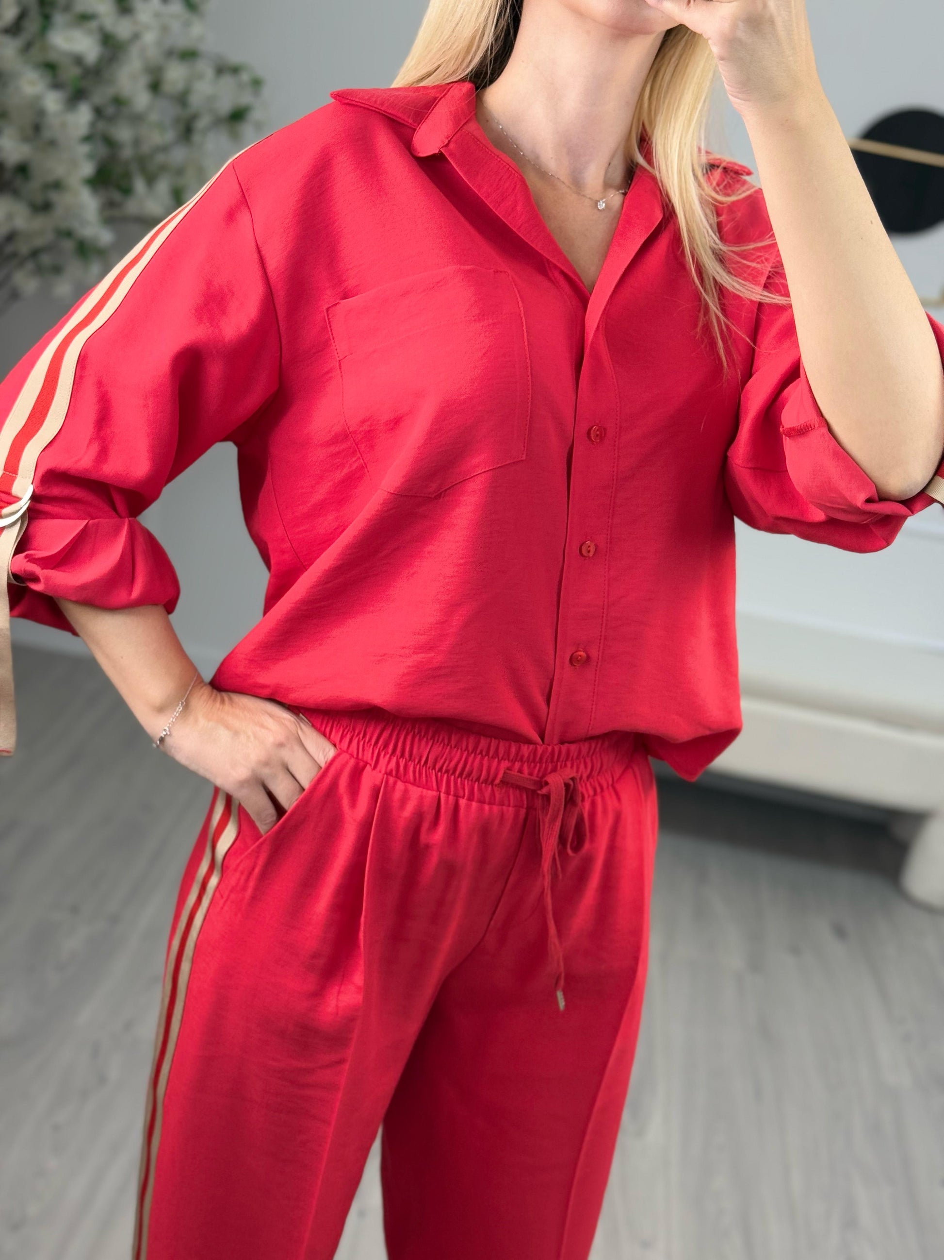 - CAMICIA IN VISCOSA CON MANICA ARRICCIATA E BANDA LA LATERALE