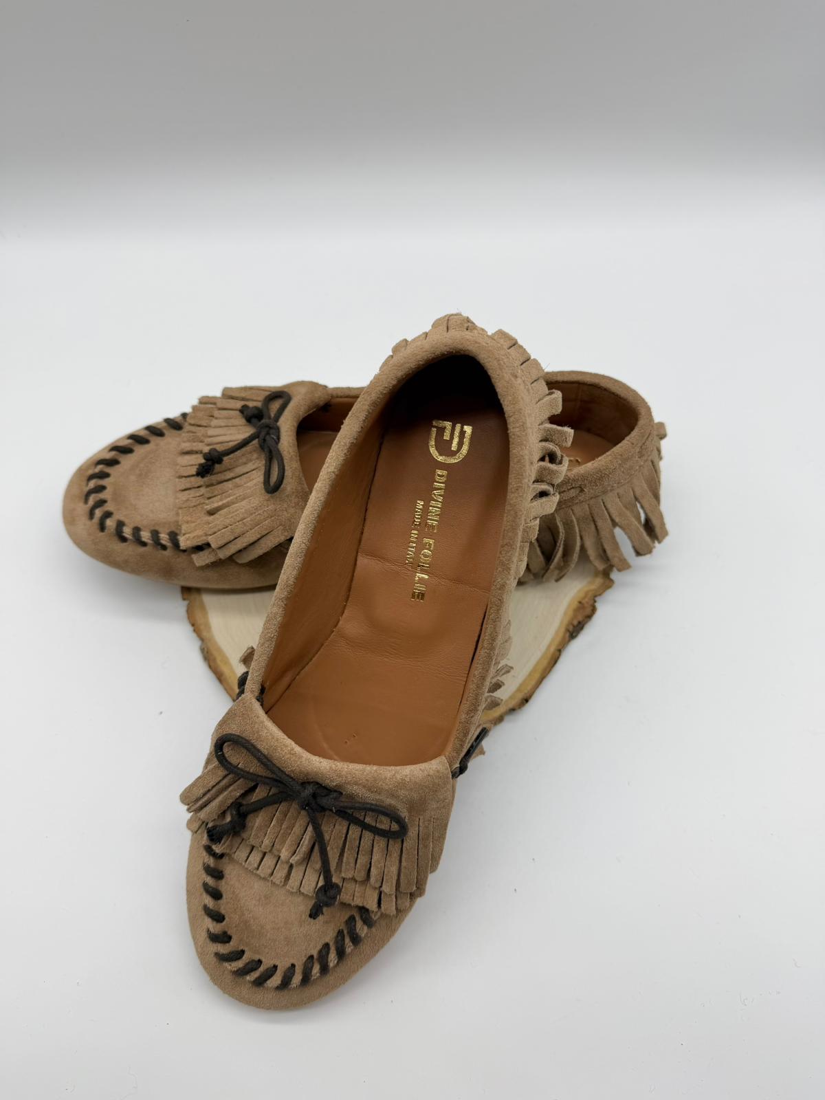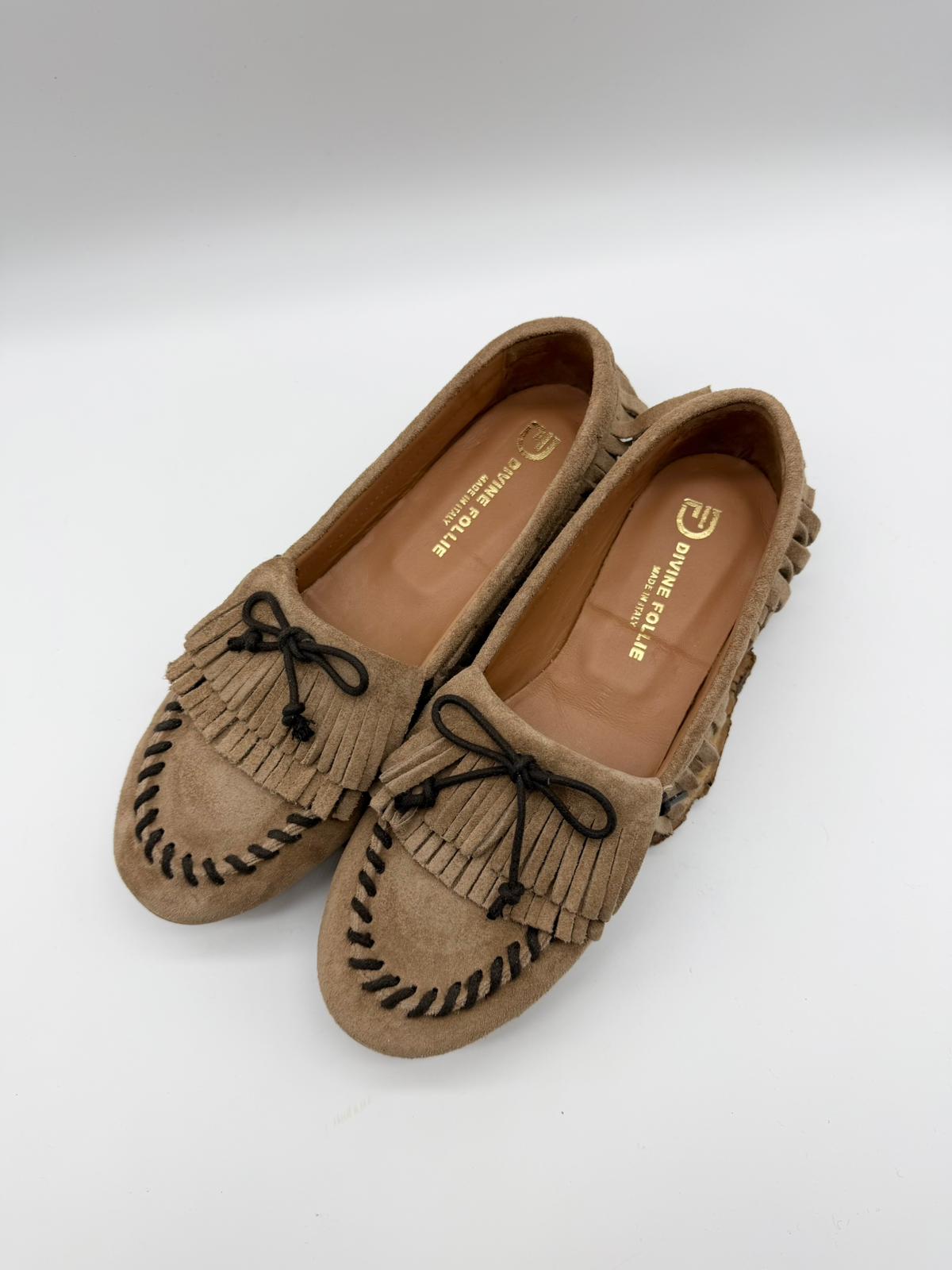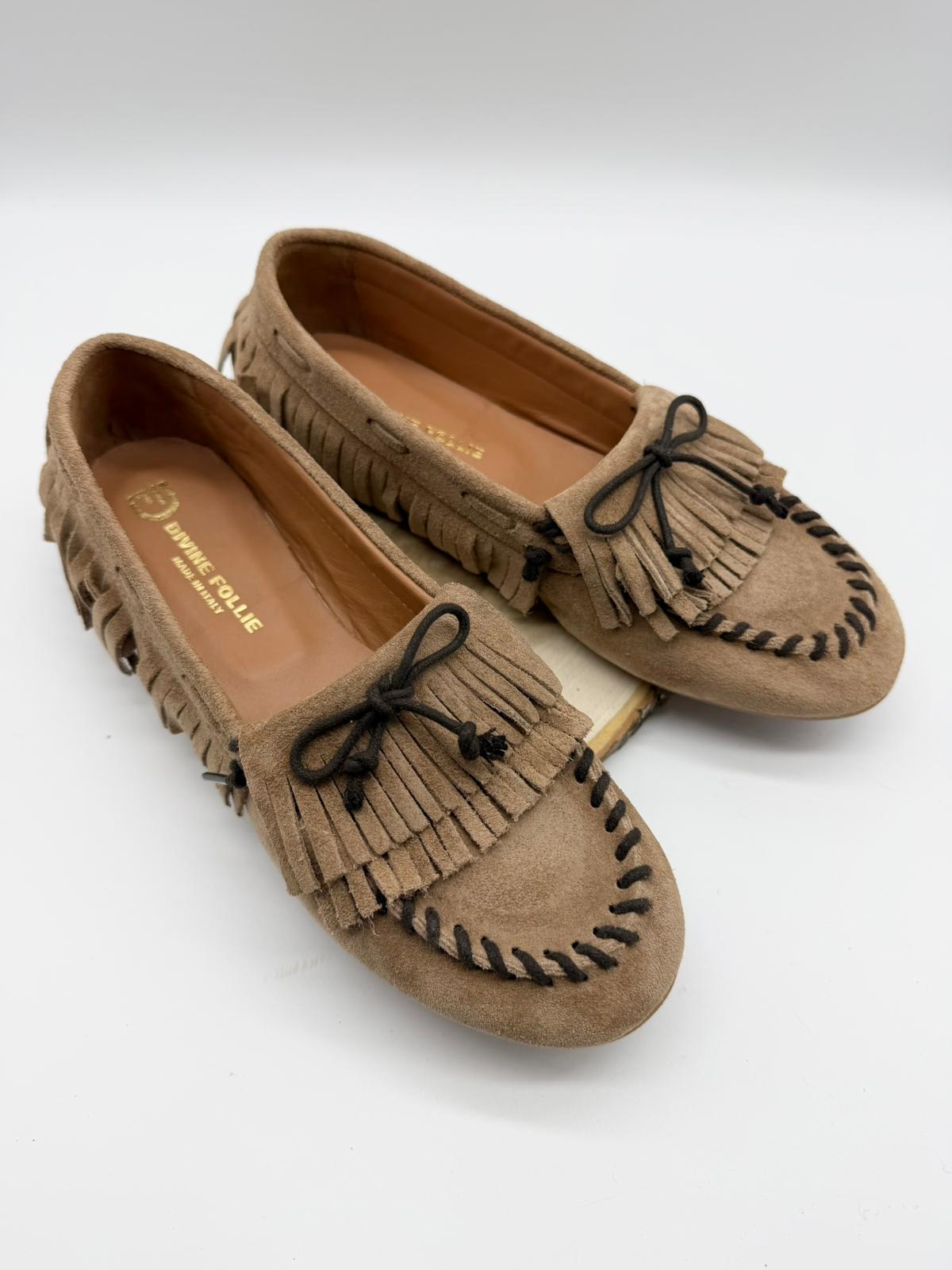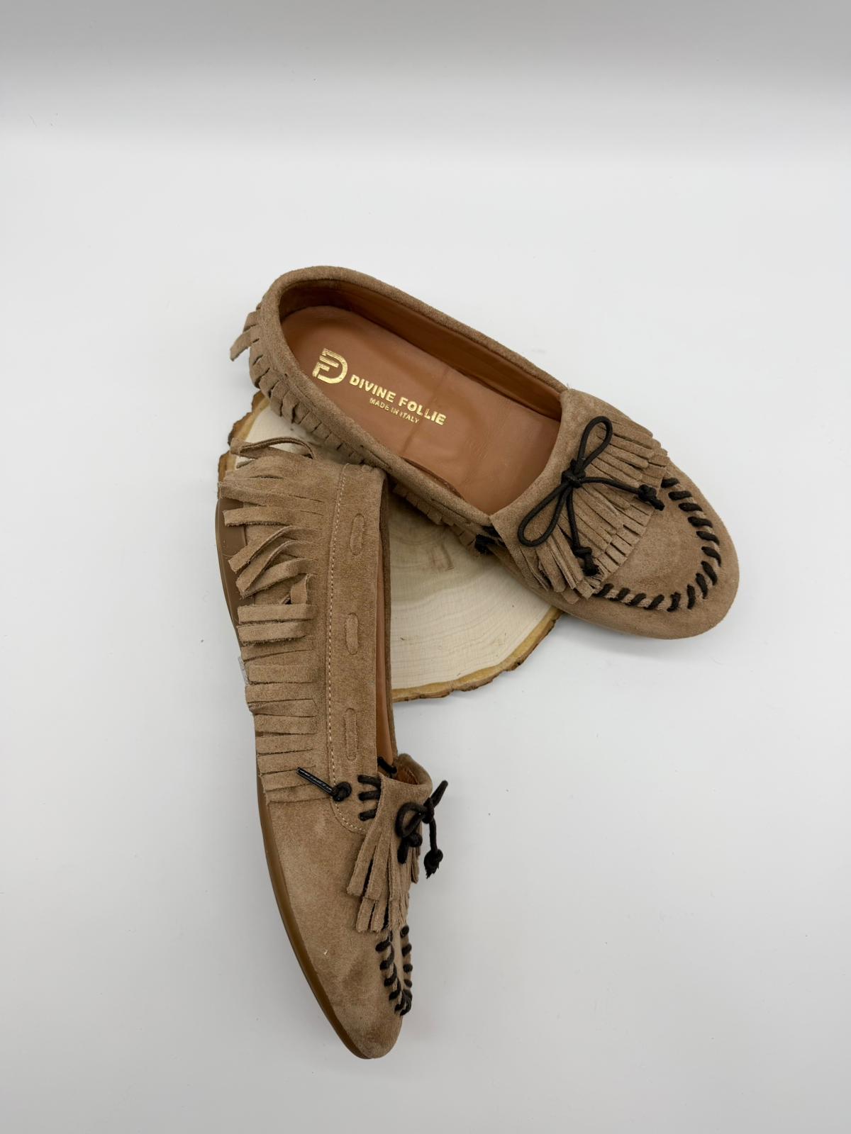Mocassini in camoscio caramello Divine Follie collezione 2026