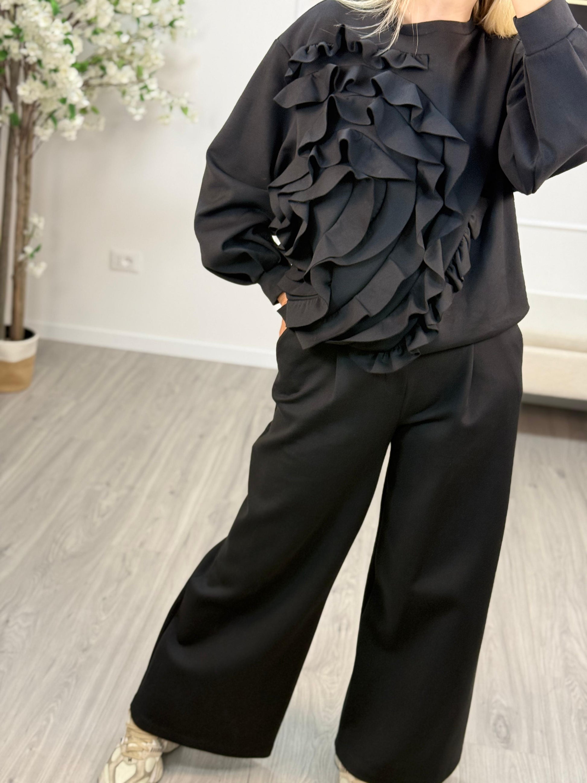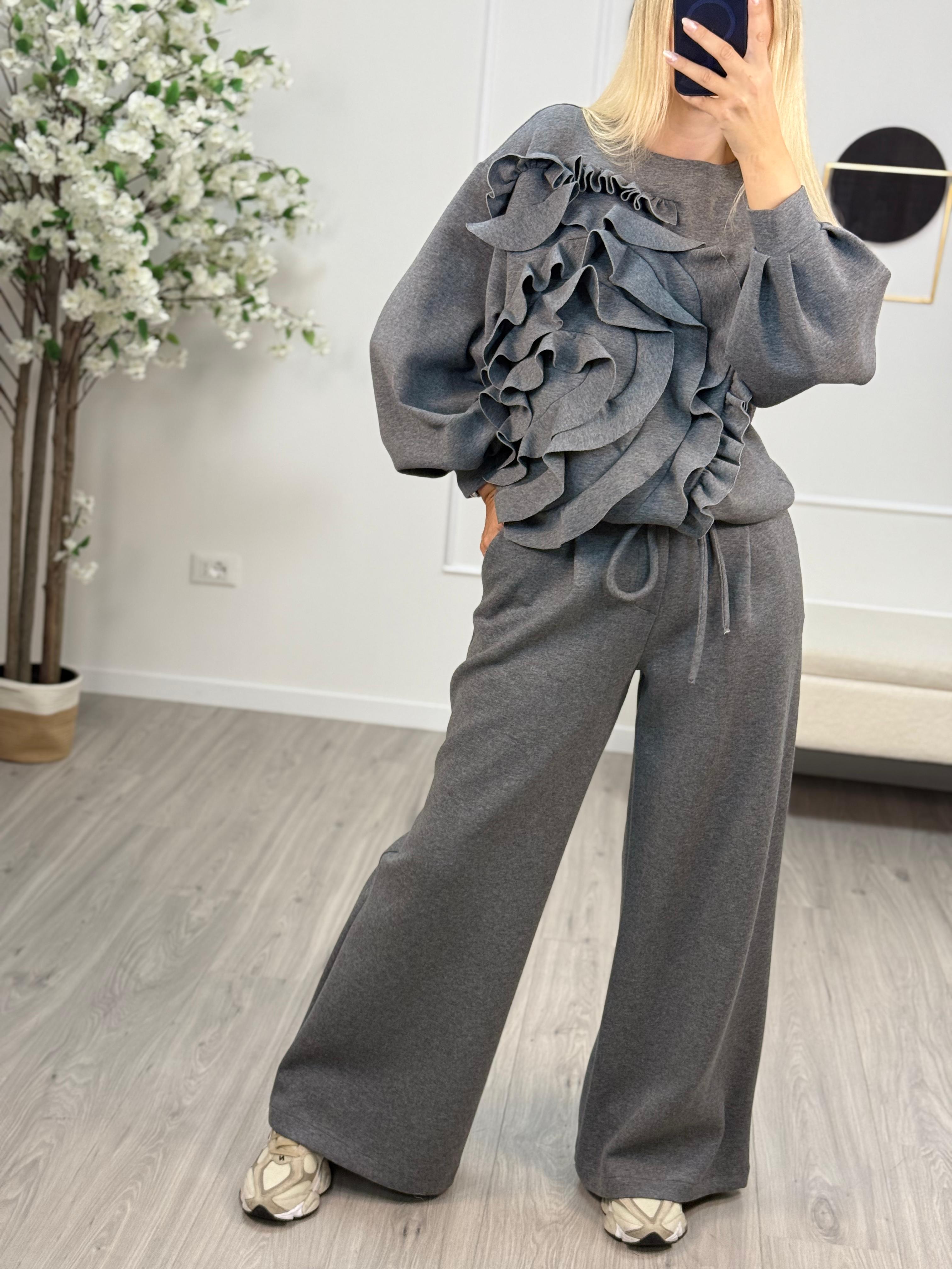 Descrizione: Pantalone Souvenir In cotone effetto neoprene. Modello ampio, con tasche, con pinces, elastico in vita.