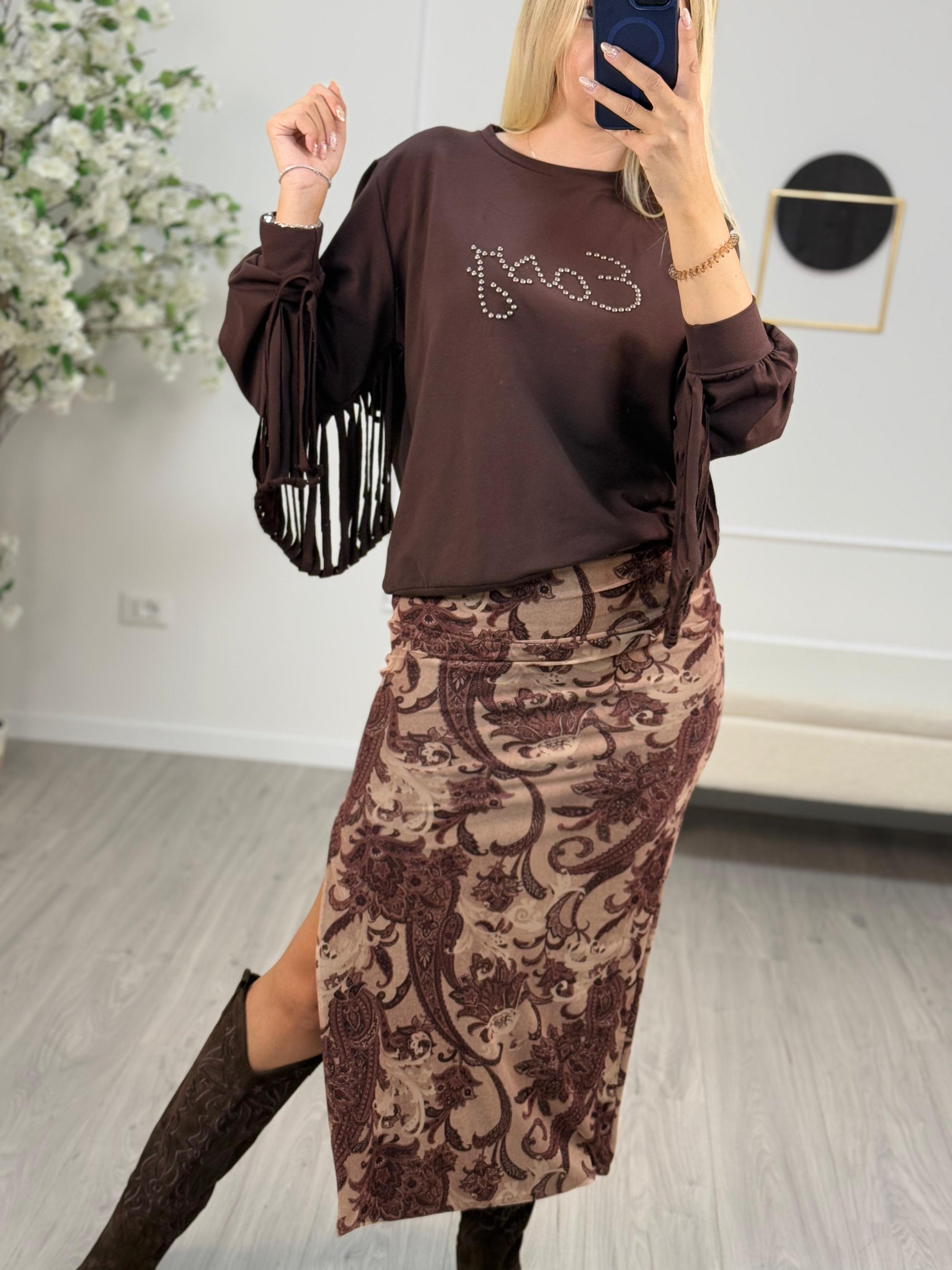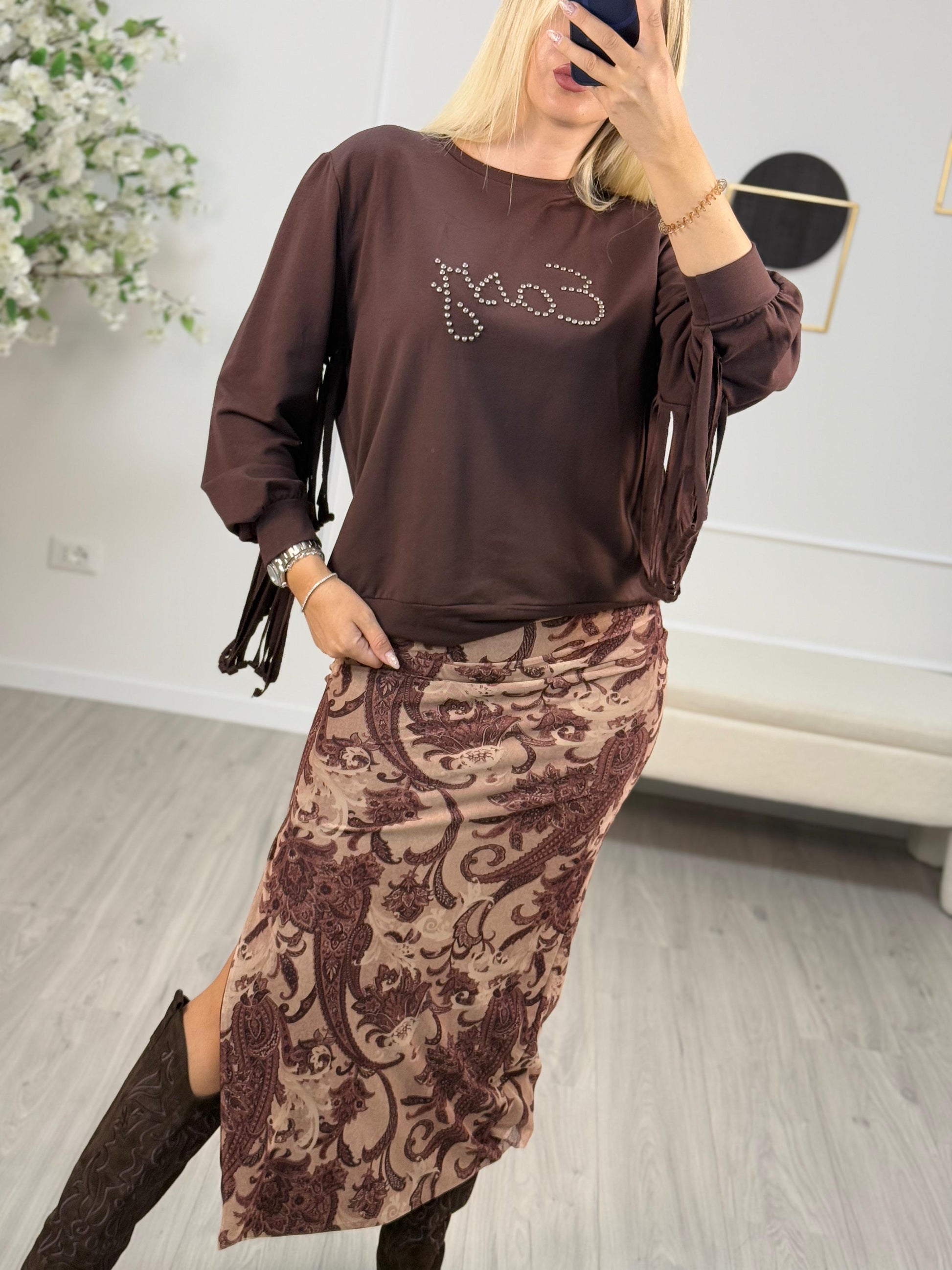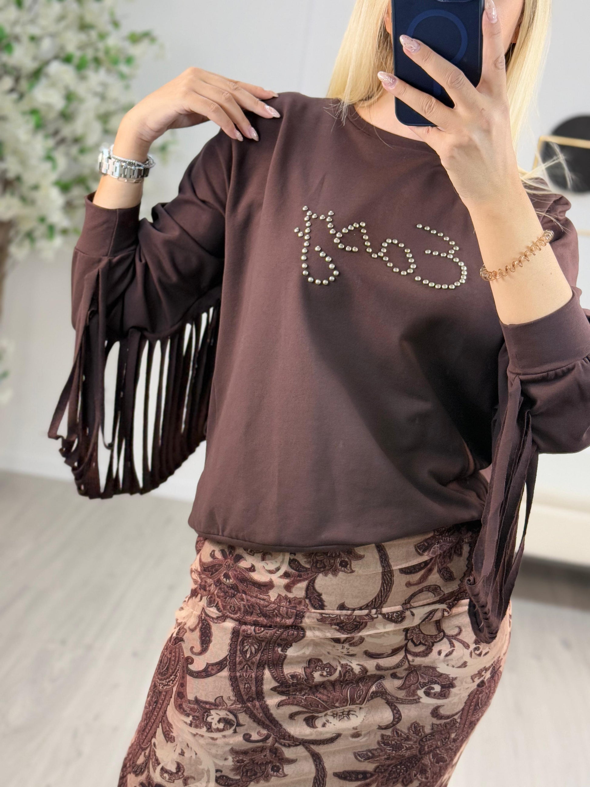 Descrizione: Philia Loft Felpa Frange in Colore Morrone.