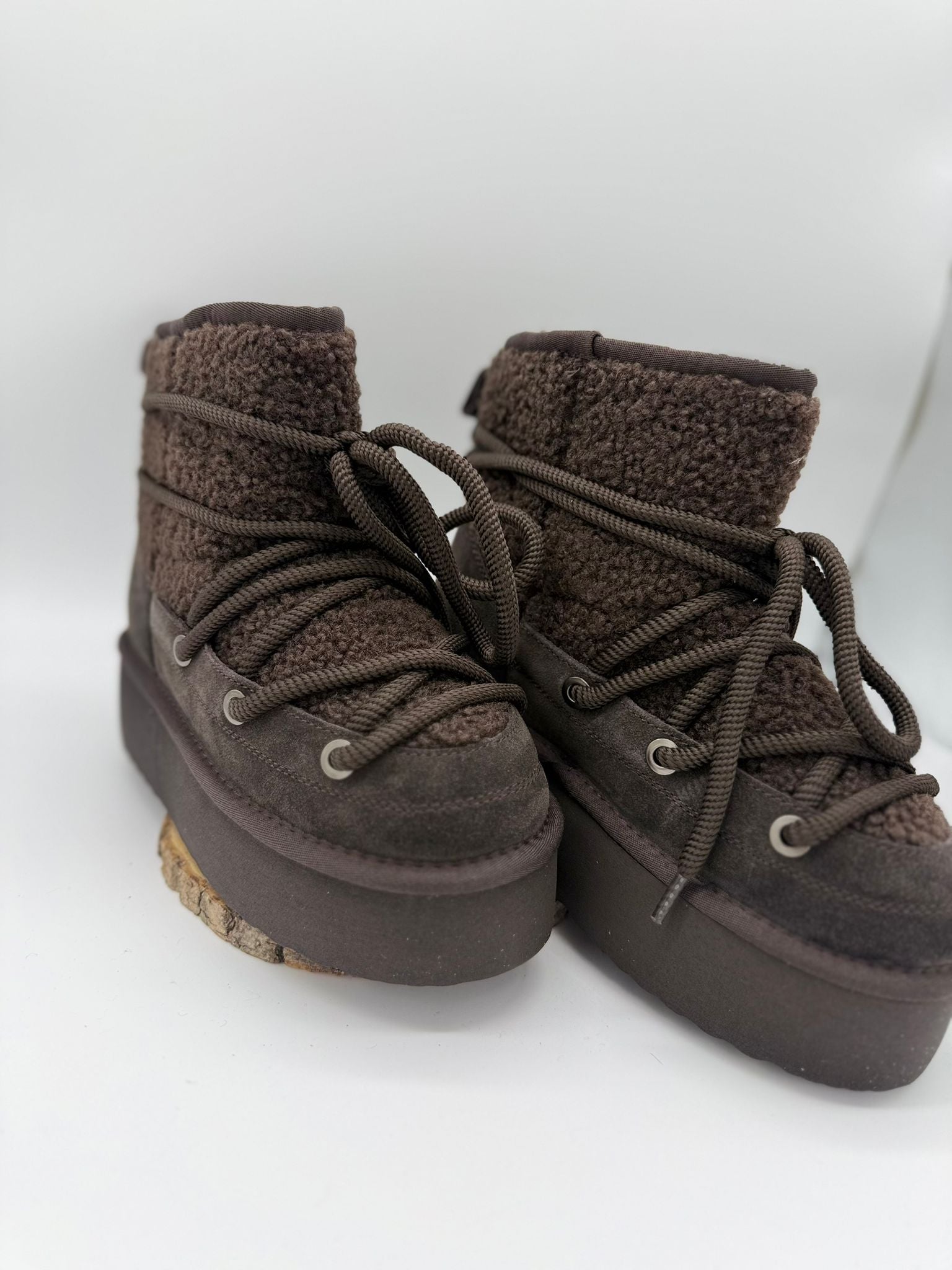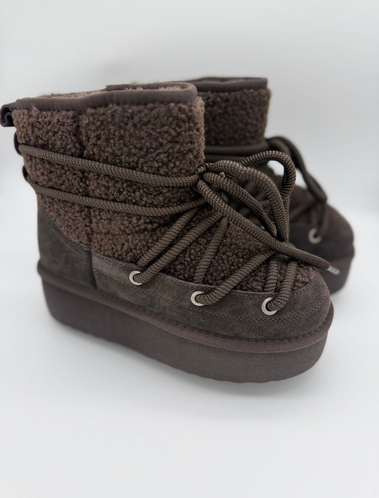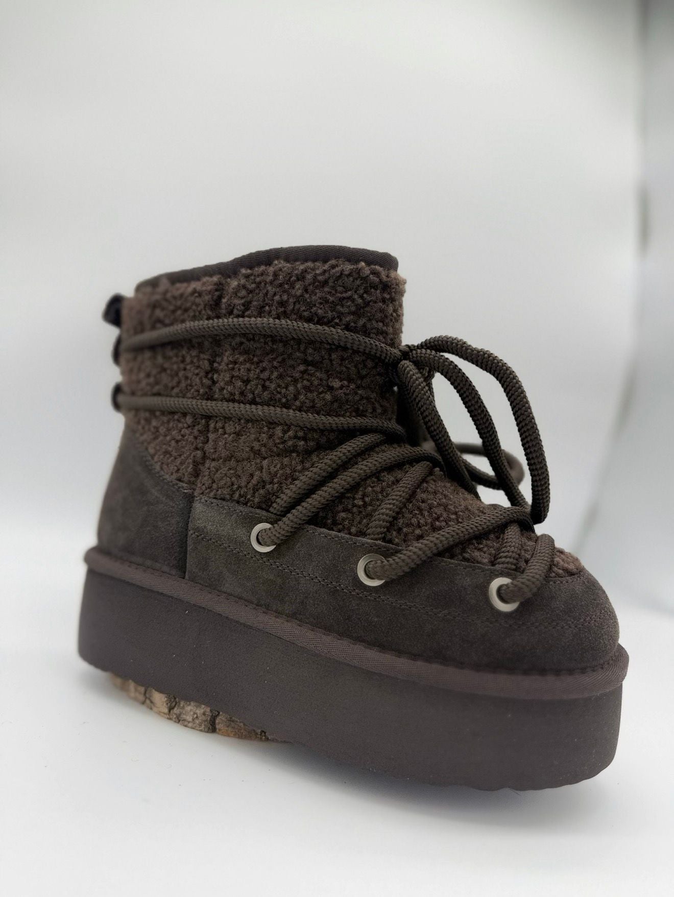 Descrizione: Stivaletto doposcì teddy Moro - Ovyè Stivaletto in ecopelle, fodera interna in pelliccia sintetica, lacci robusti e suola platform. Calzano regolare.