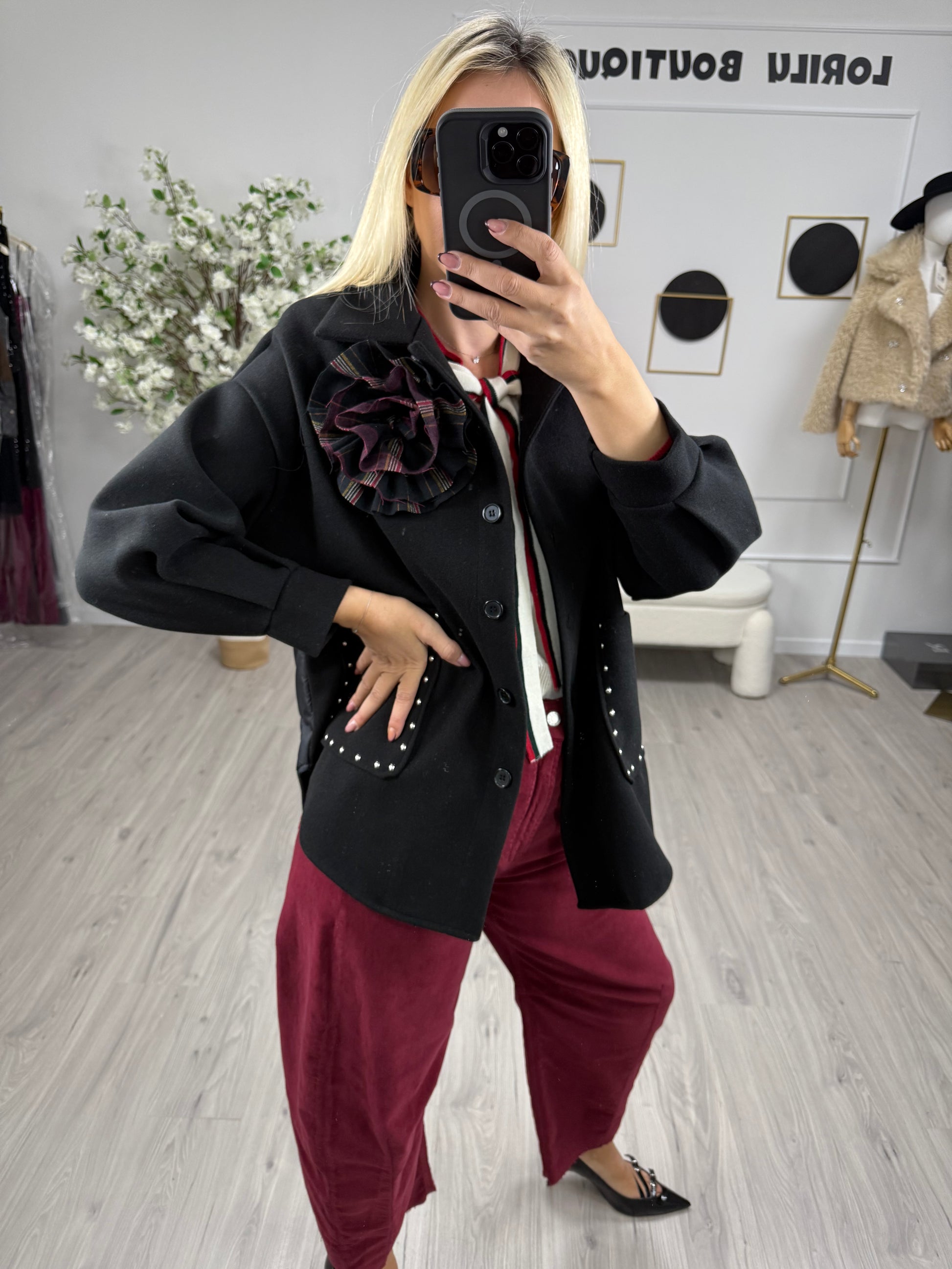 - SUSY MIX cappotto misto è un capo di abbigliamento che fonde le caratteristiche di un cappotto classico con quelle di una giacca più leggera, creando una sorta di ibrido versatile. Questo tipo di cappotto è pensato per offrire il calore e la protezione tipica di un cappotto, ma con la leggerezza e lo stile più casual o sartoriale di una giacca.La S veste anche una M