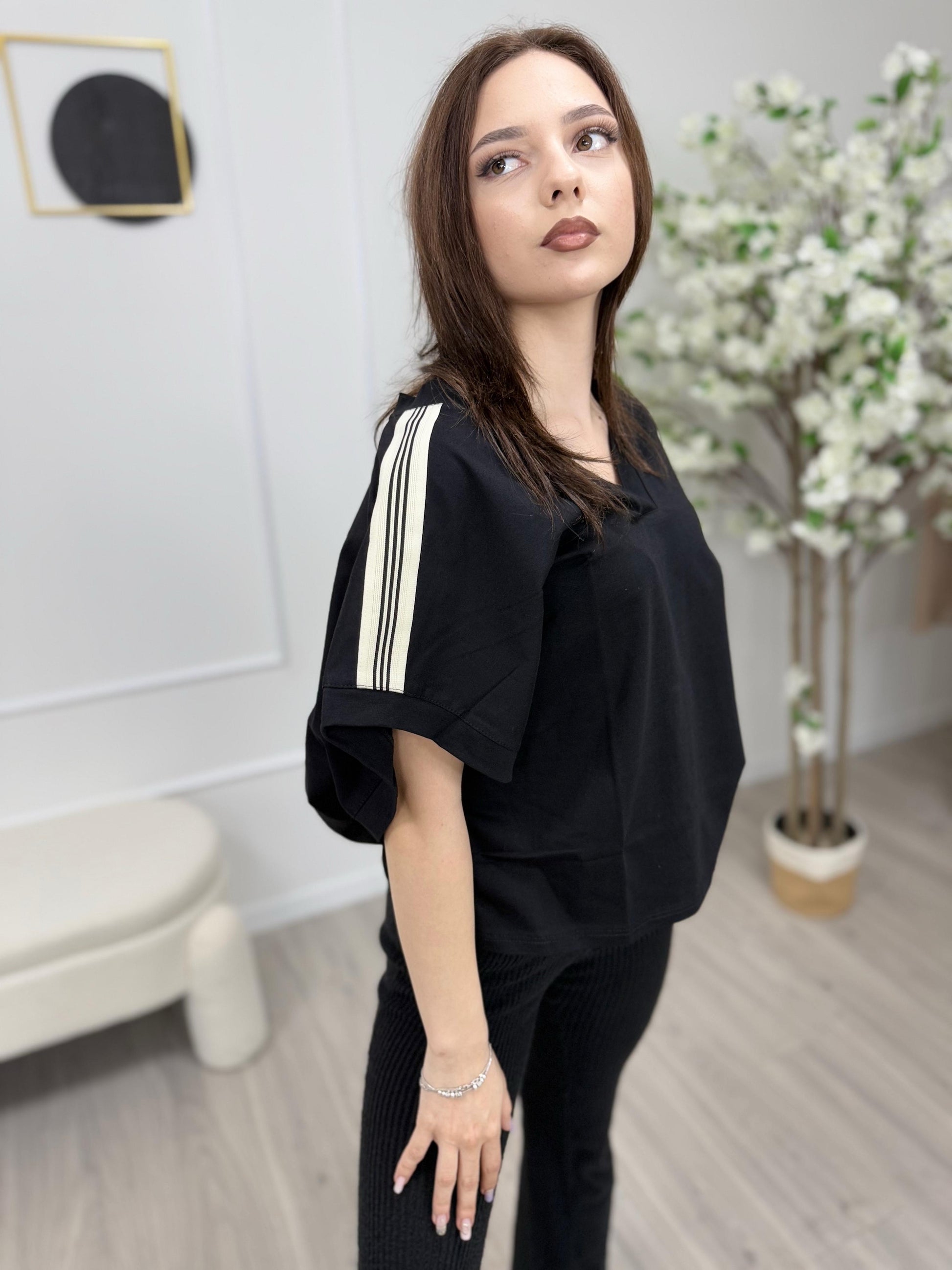 Descrizione: Susy Mix Maglia con righe. Disponibile in colore Nero e Moro Composizione: 100% cotone