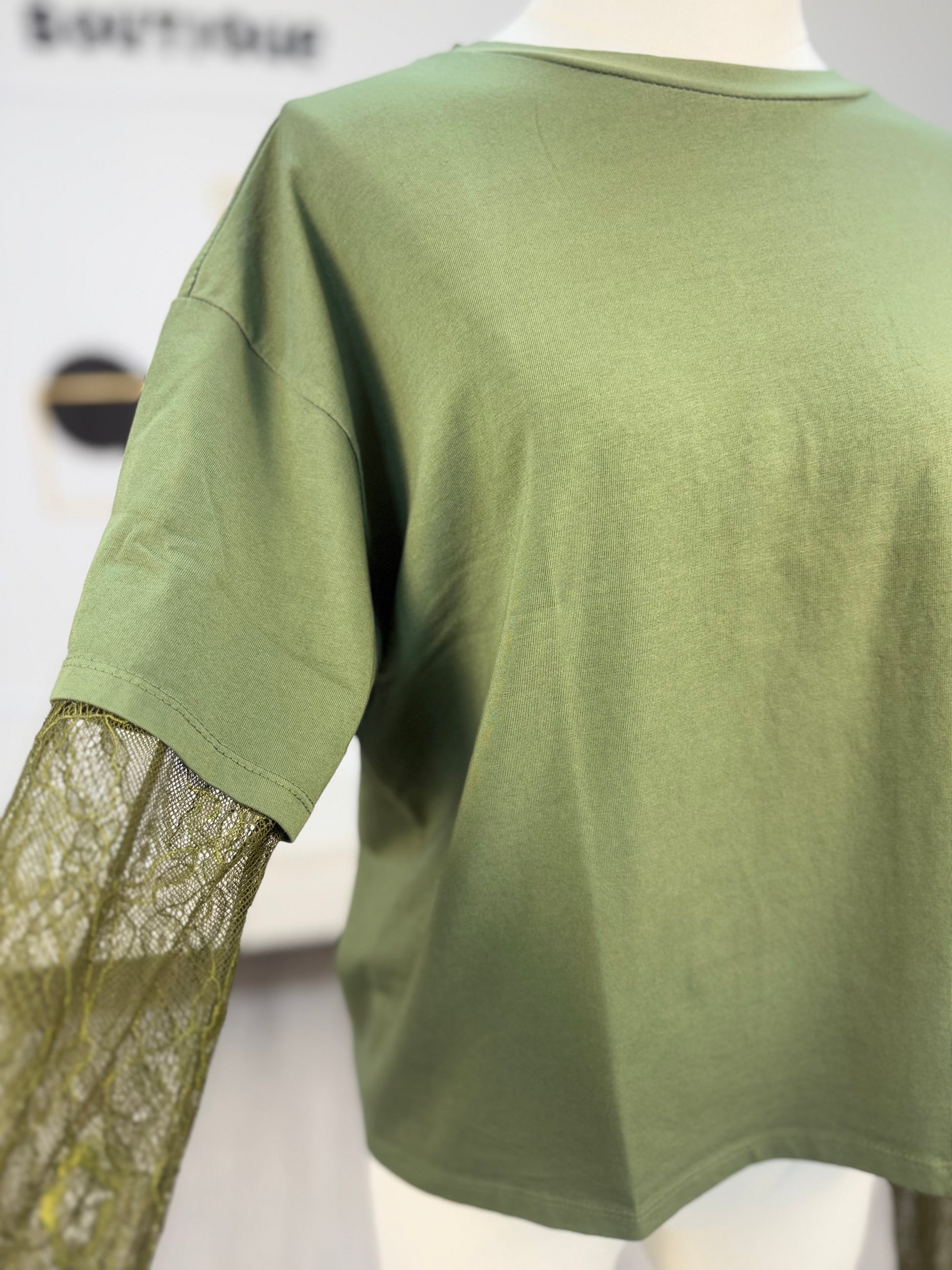 - Descrizione: Susy Mix Maglia Pizzo. Maglia girocollo con manica in pizzo modello a scatolina .