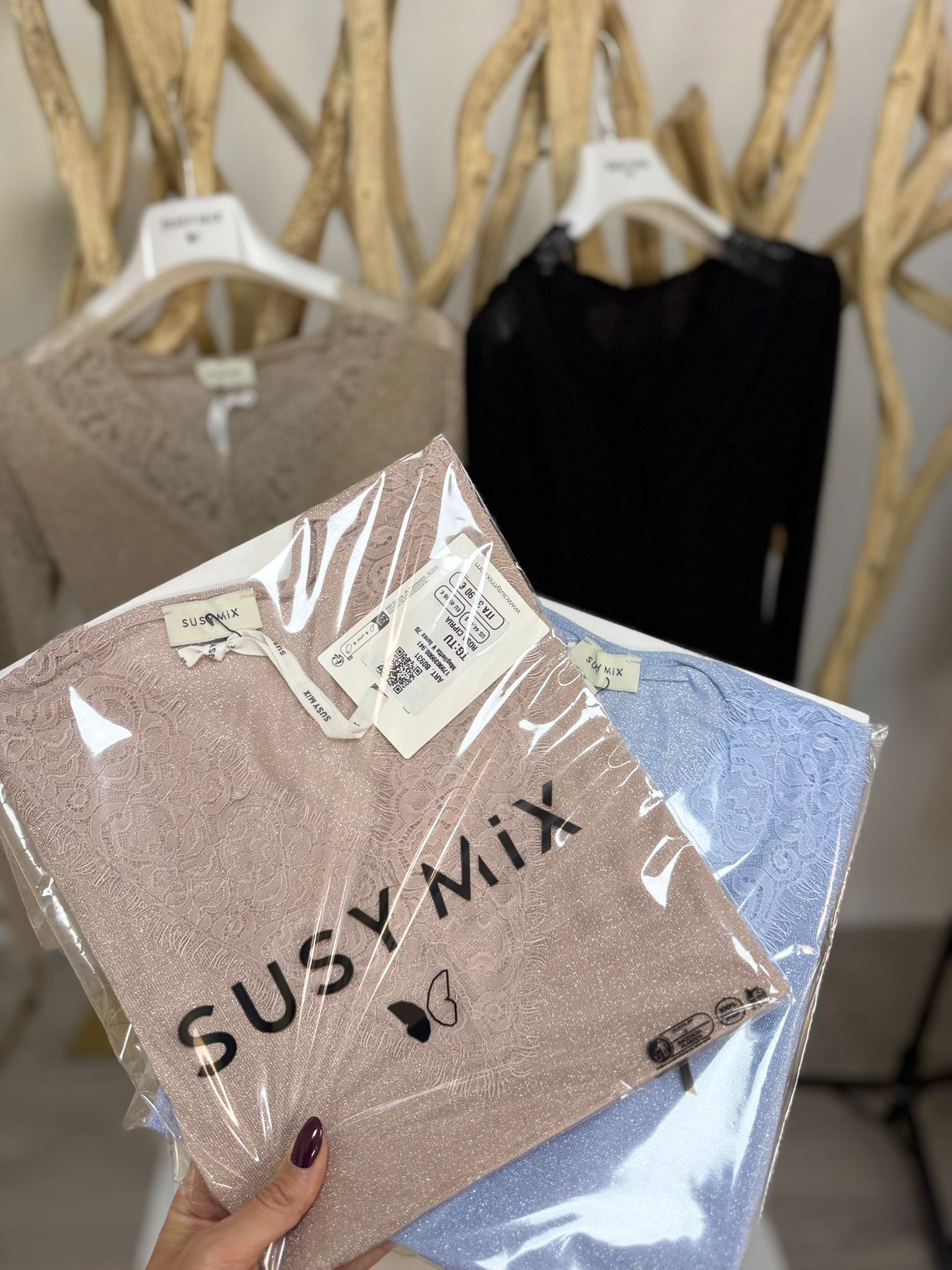Descrizione: Susy Mix Maglietta in lurex. Taglia Unica. Colore Oro, Nero, Rosa, Cielo .