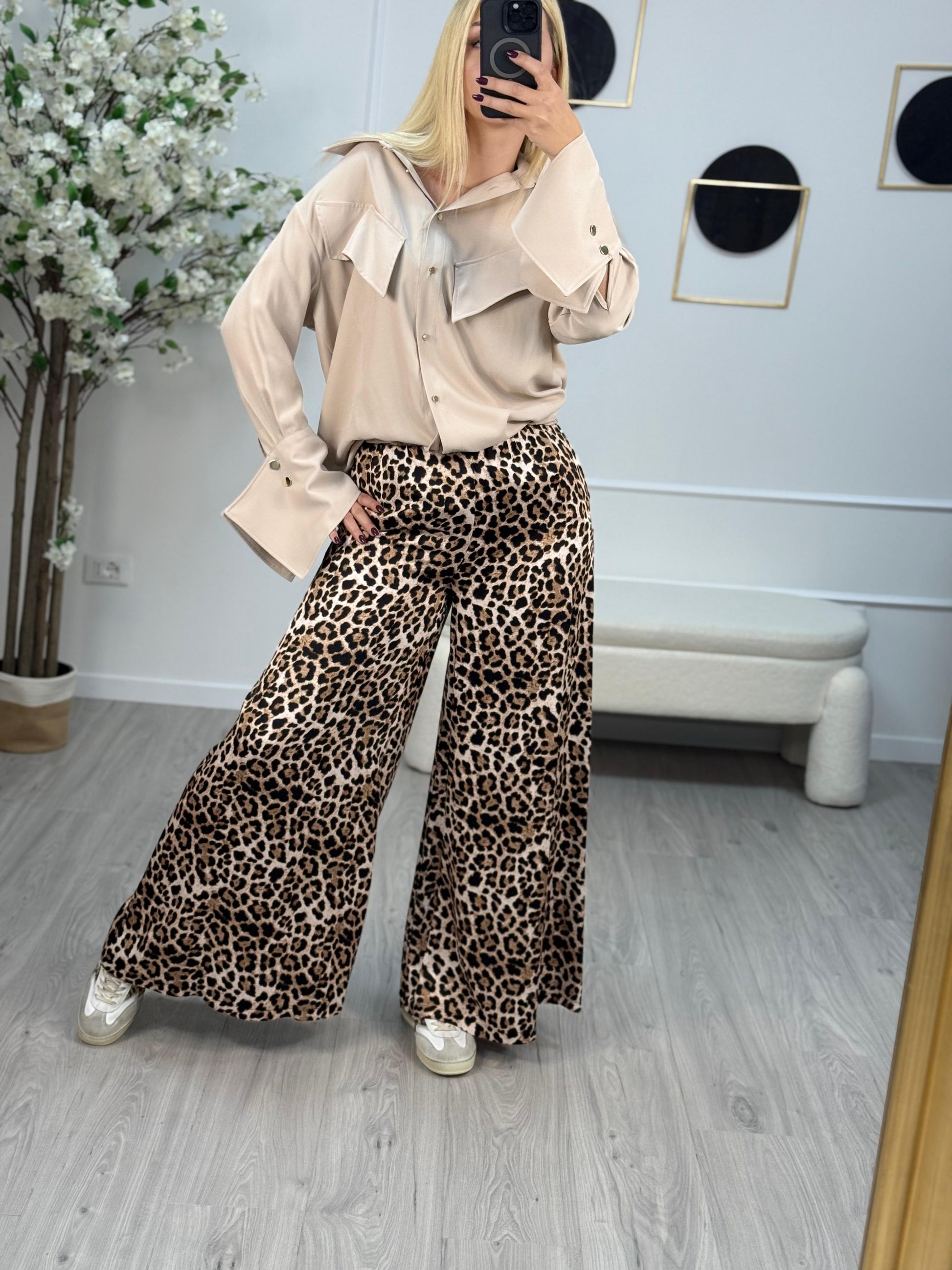 - Descrizione: Susy Mix Pantalone Raso Maculato a palazzo.