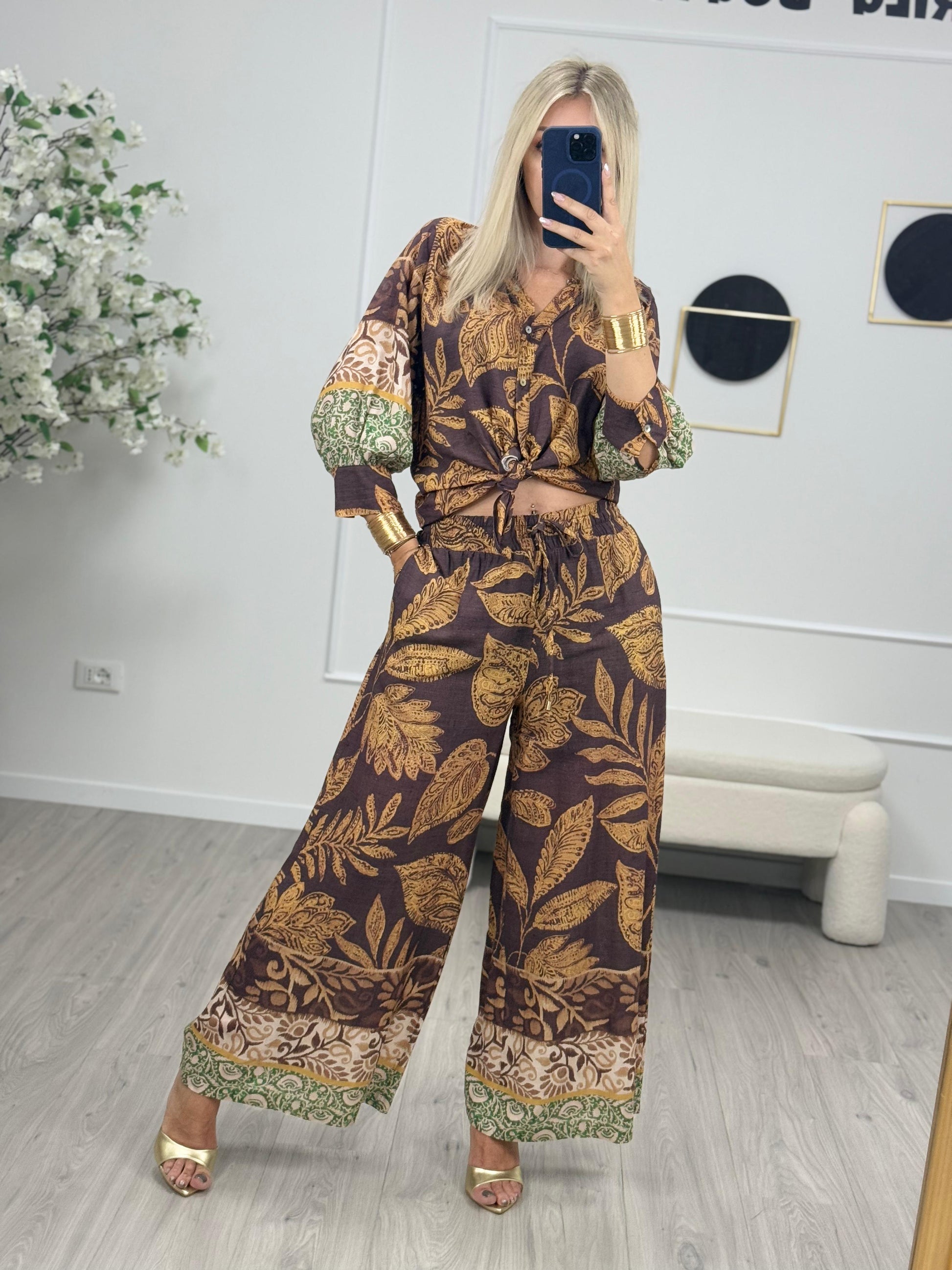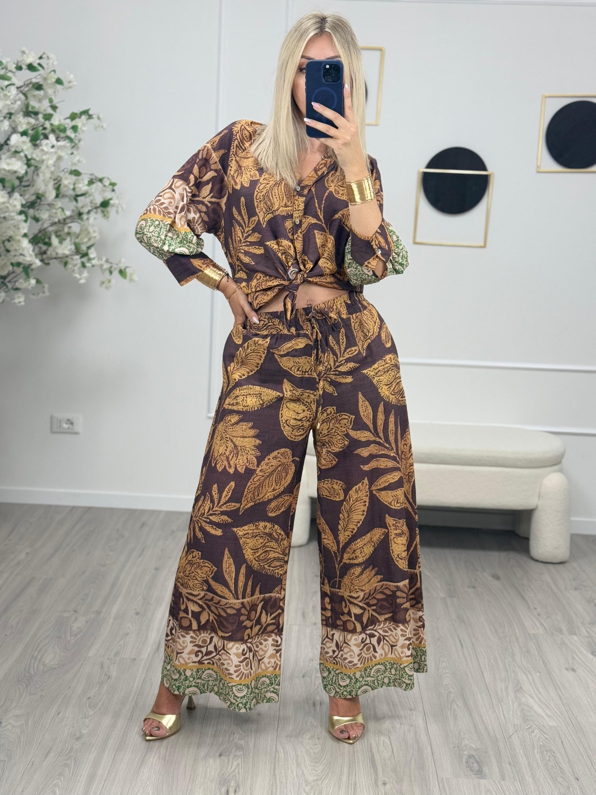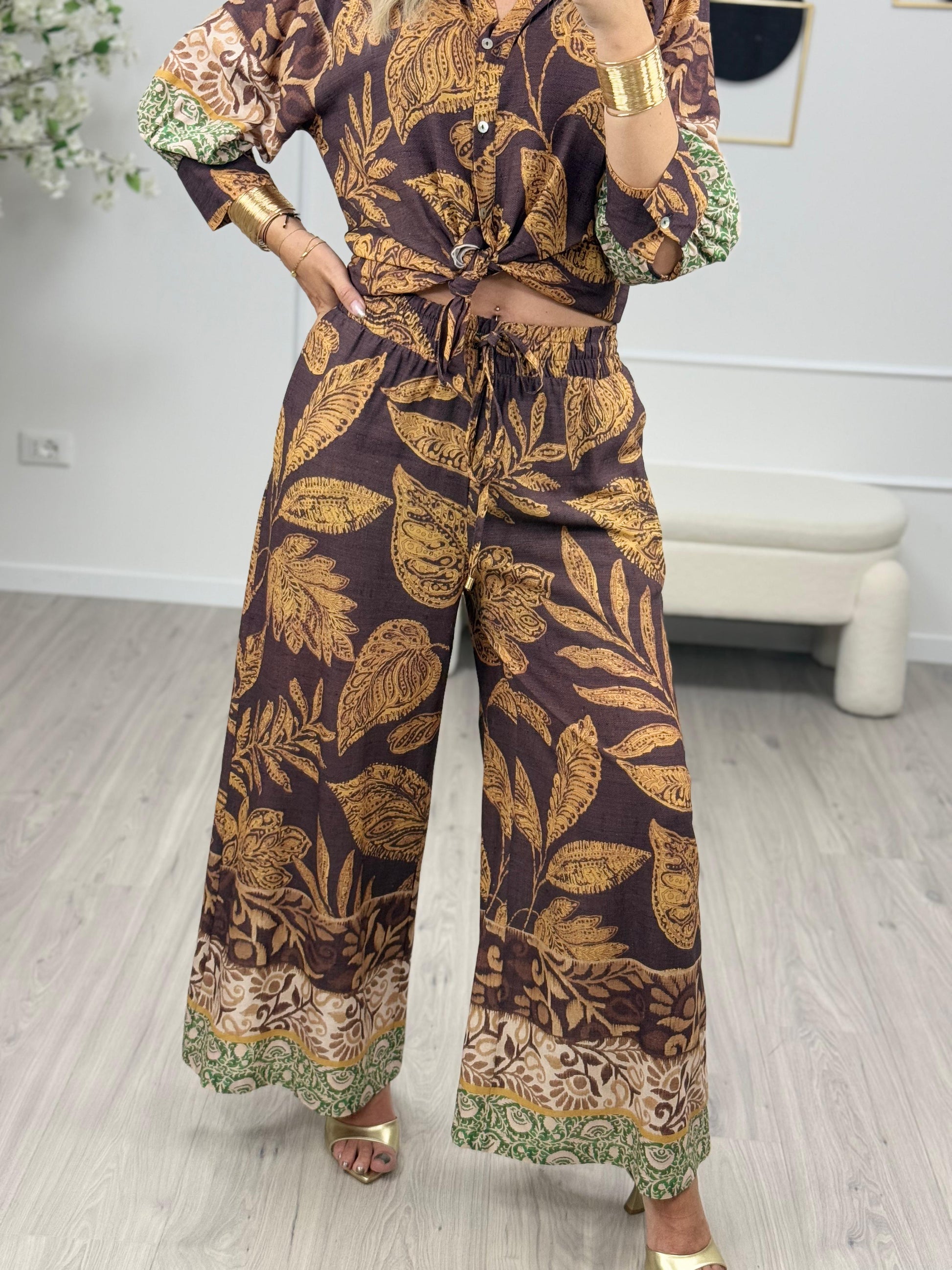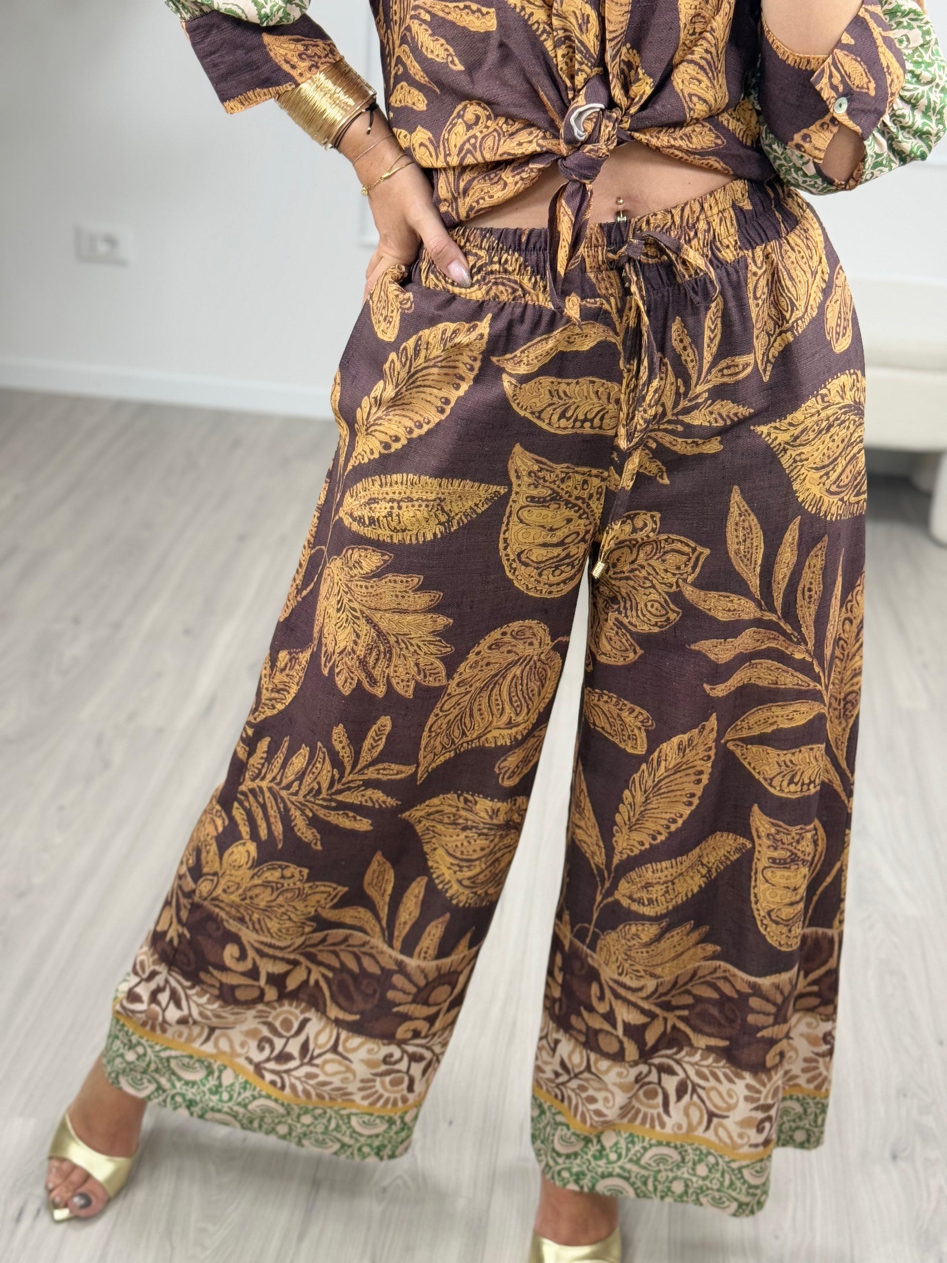 - Descrizione: Tensione In Pantaloni Viscosa a Palazzo con Fantasia.