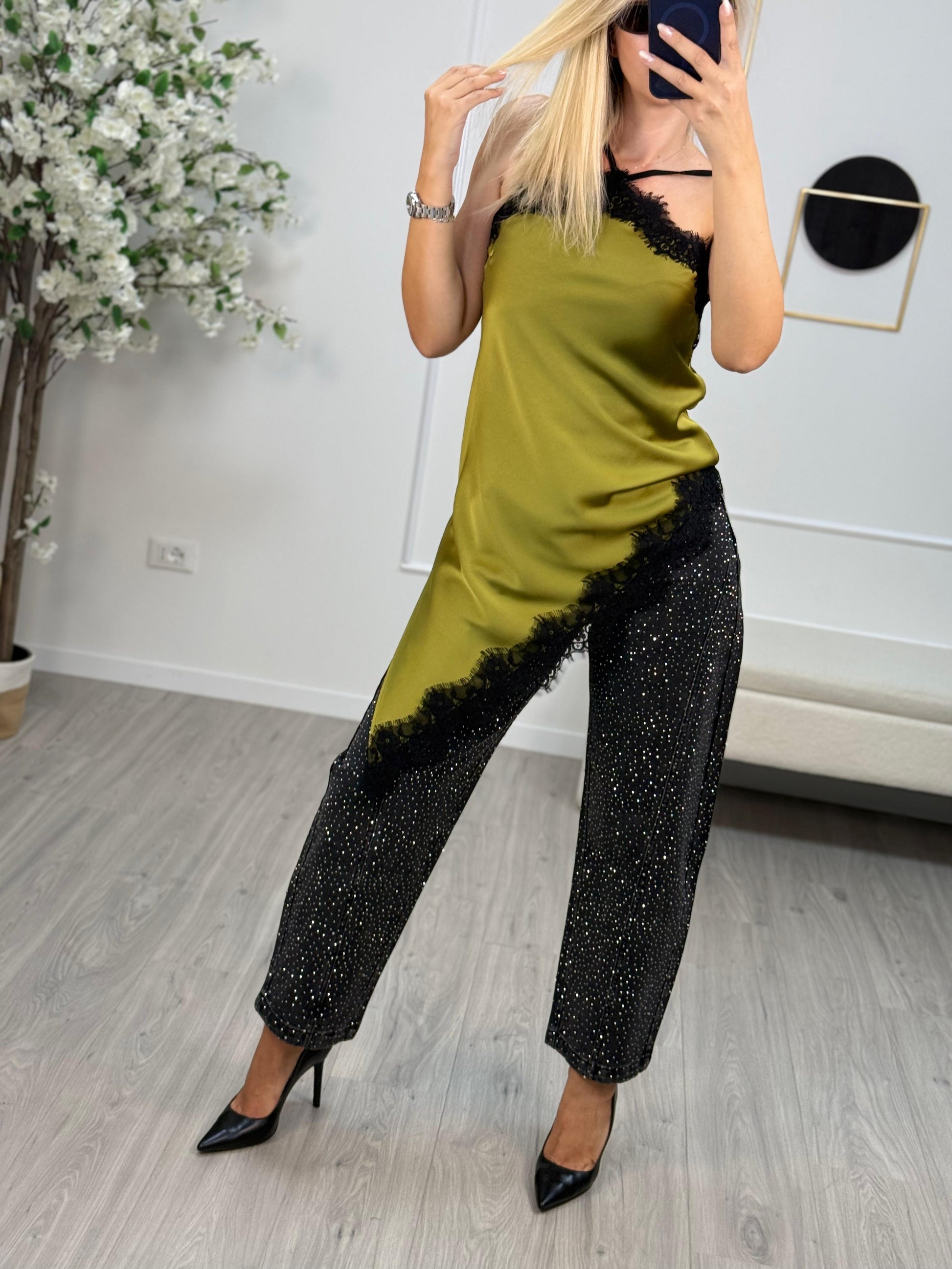 - Descrizione: Top Pizzo Haveone Asimmetrico legato al collo e spacco.